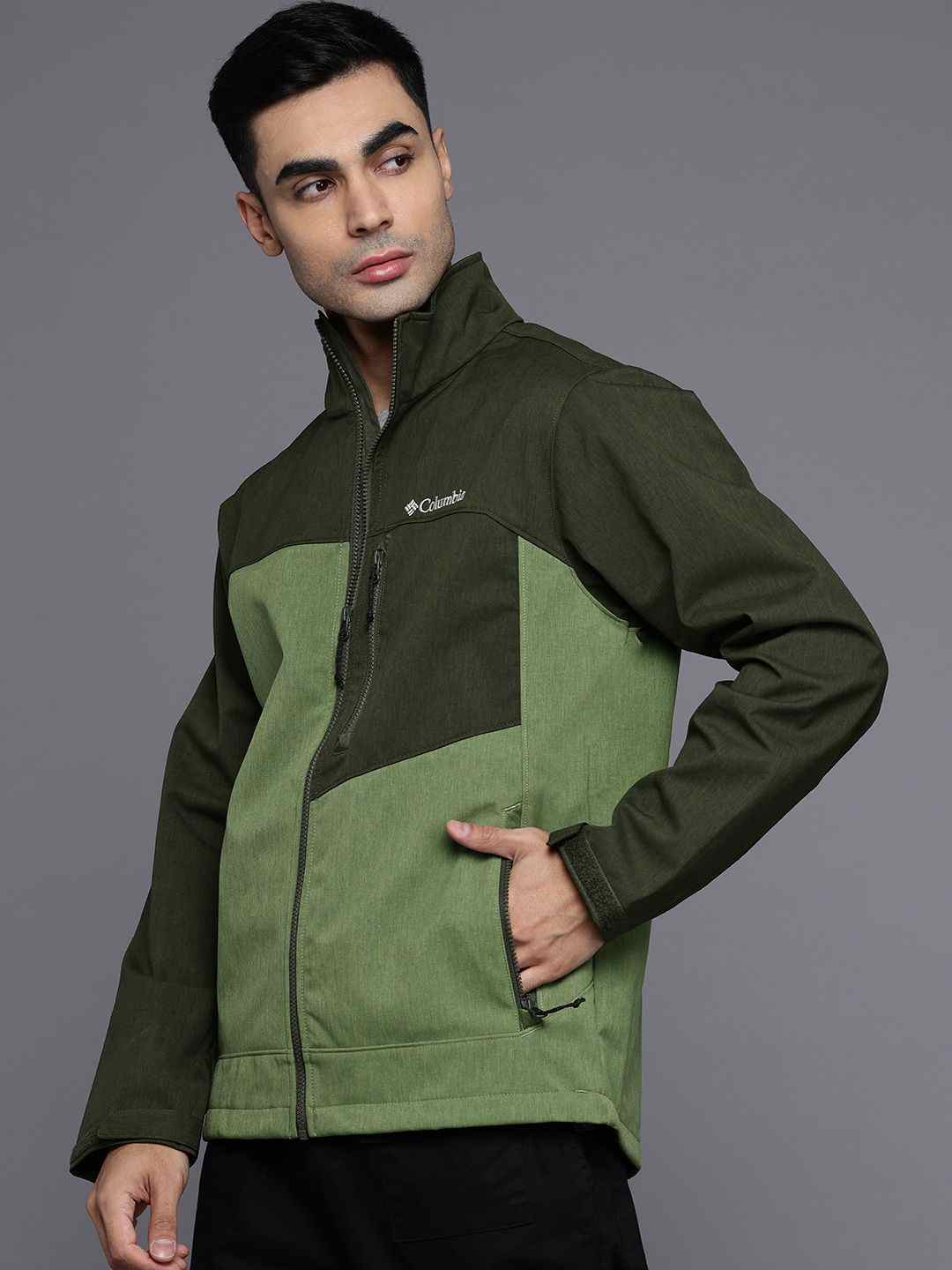 Home/Western Jackets/Columbia/men green cruiser valley ii softshell omni shield jacket