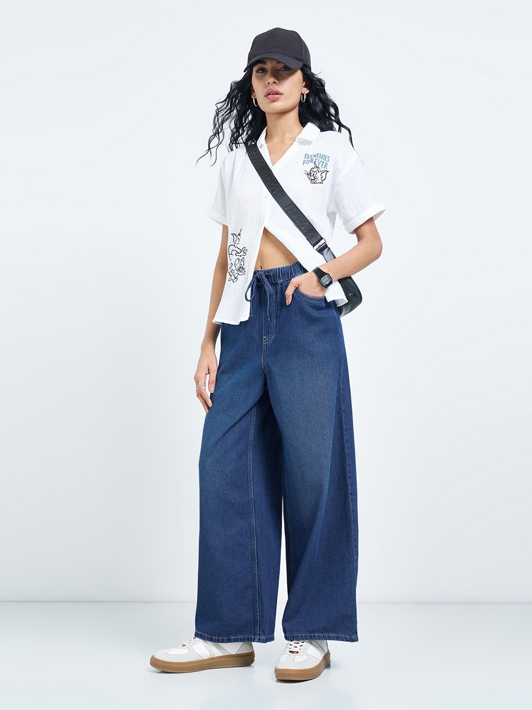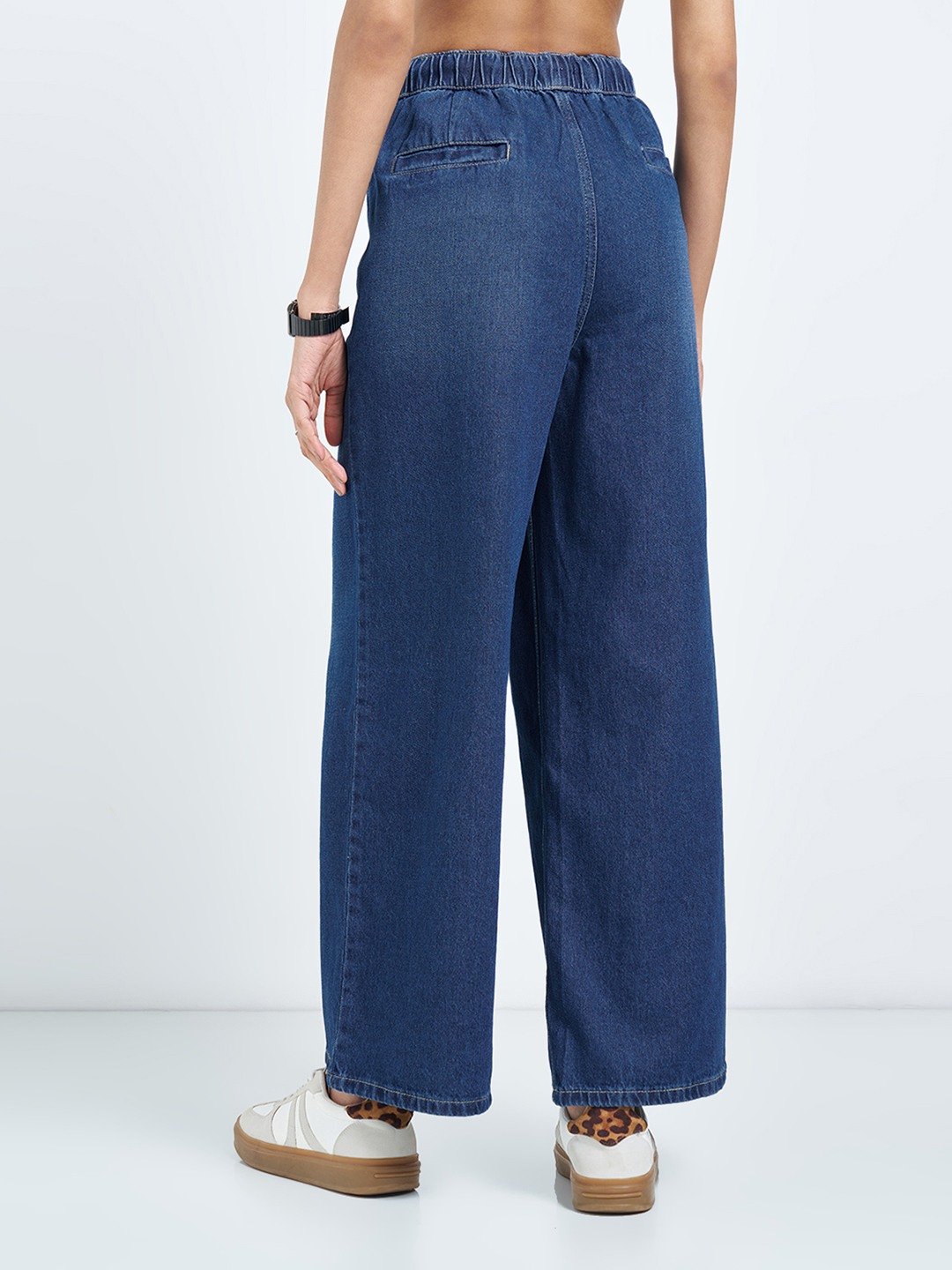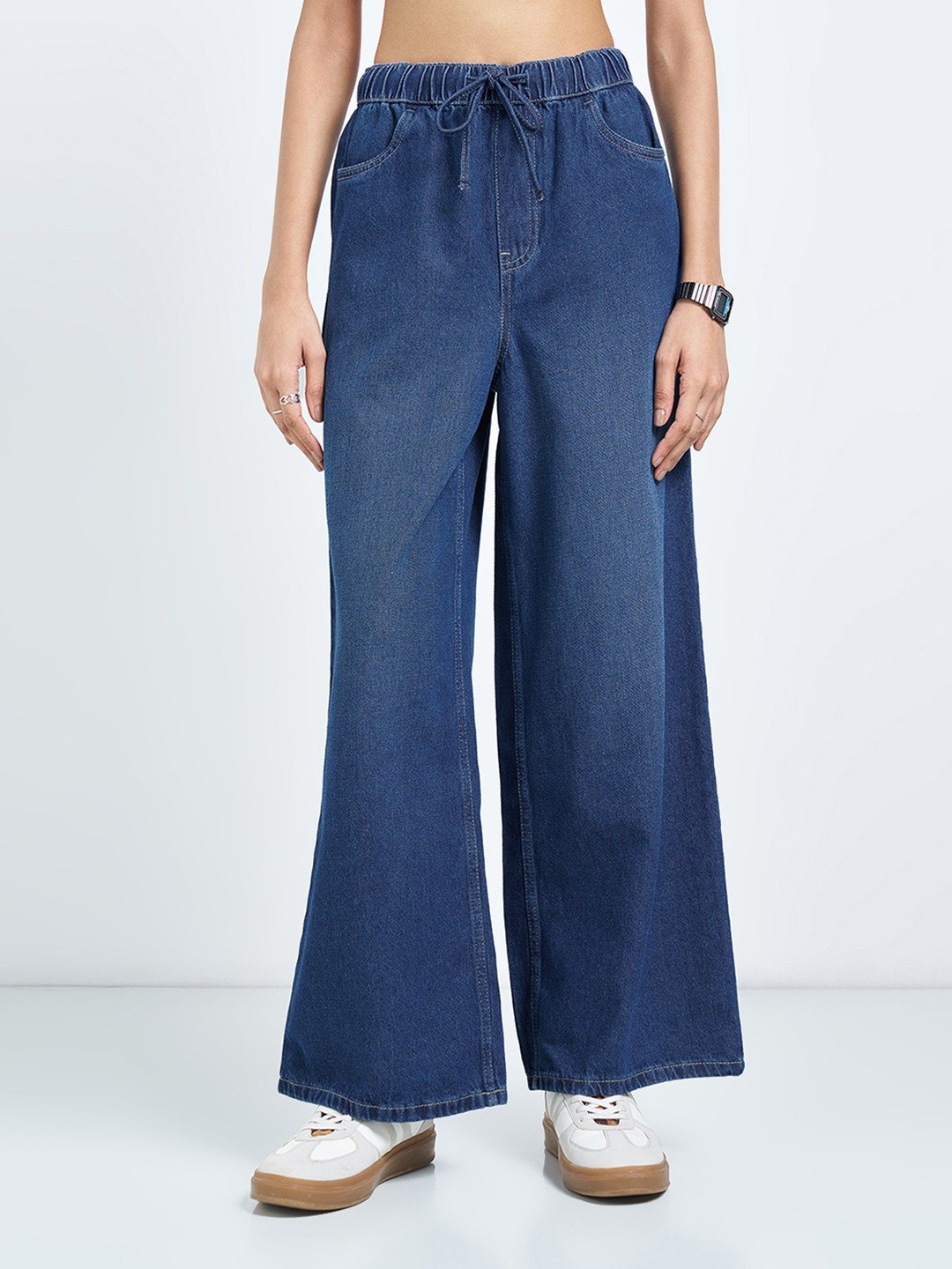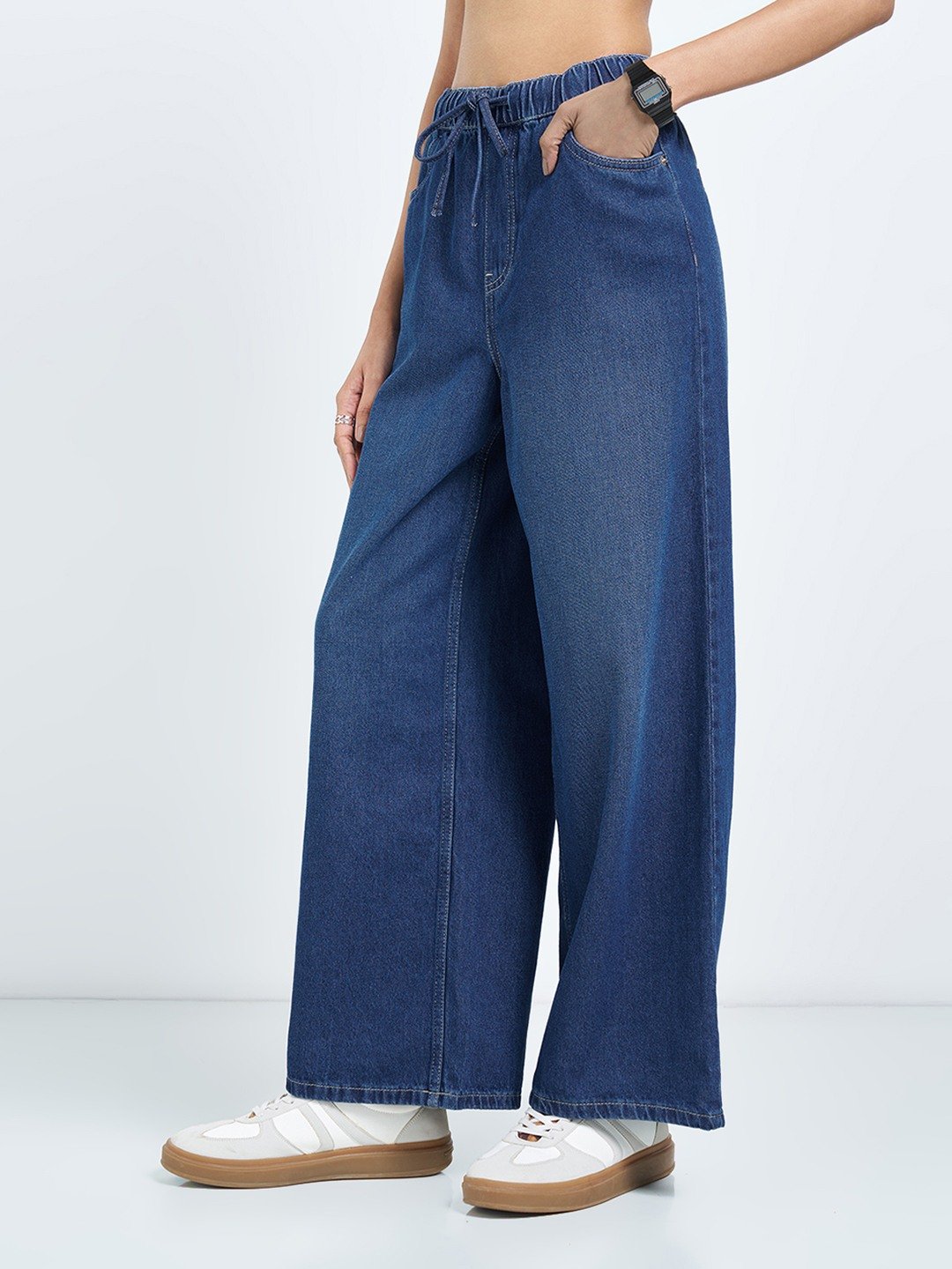 Relaxed proportions meet a softly worn-in denim finish. Designed with an elasticated waist and adjustable drawstring, these wide-leg jeans feature a front fade, multiple pockets and a fluid fall through the leg. Easy yet statement-making, they deliver everyday comfort with a laid-back, modern edge.
