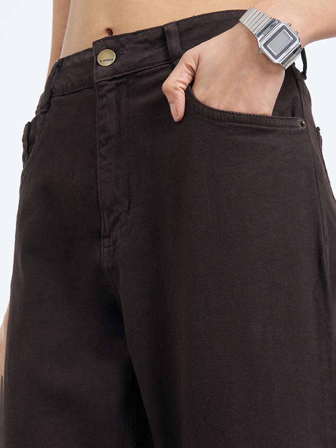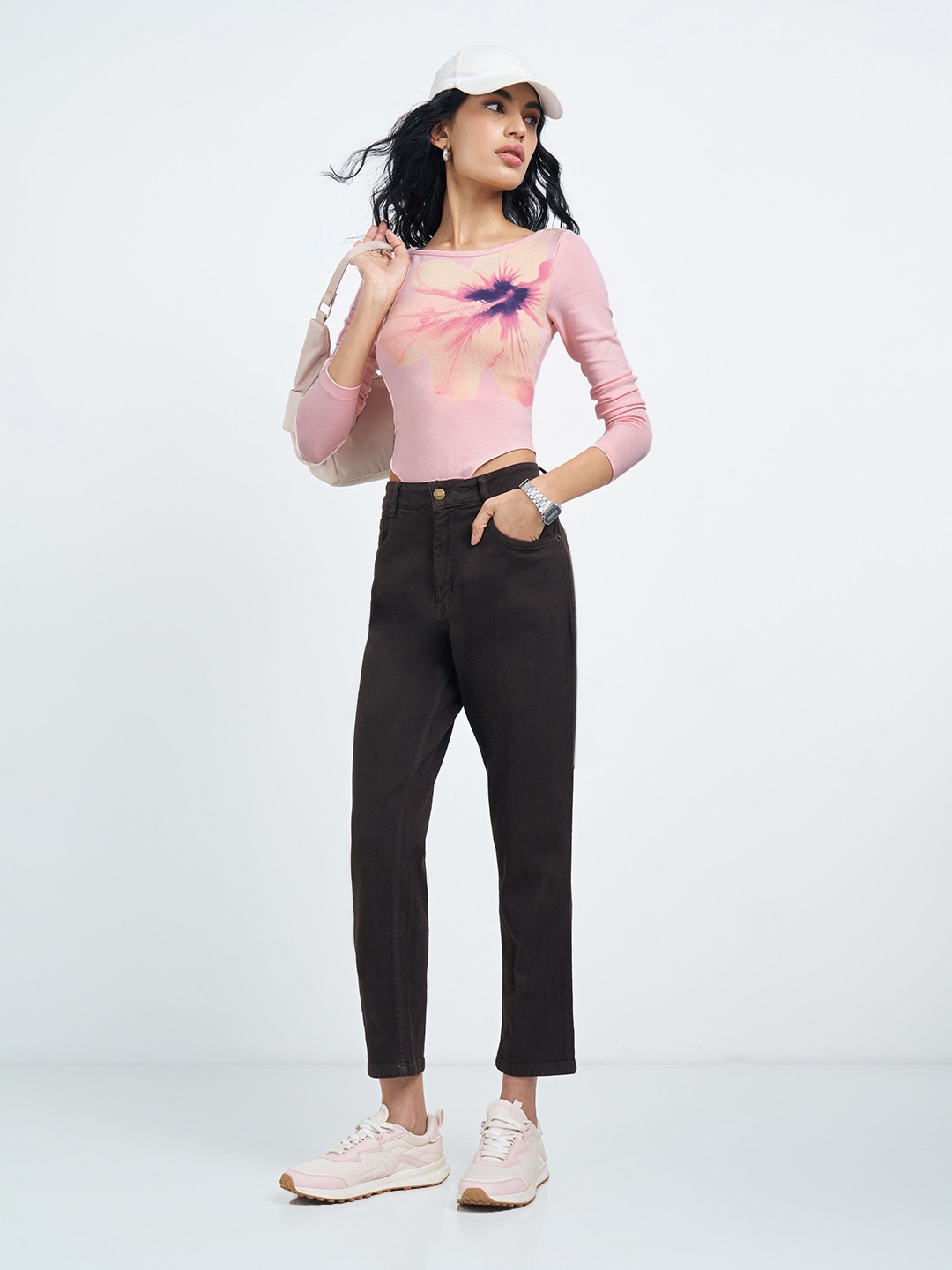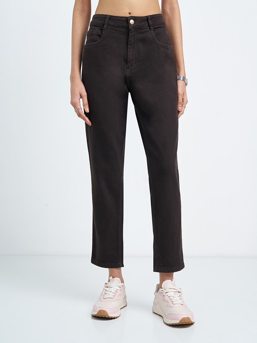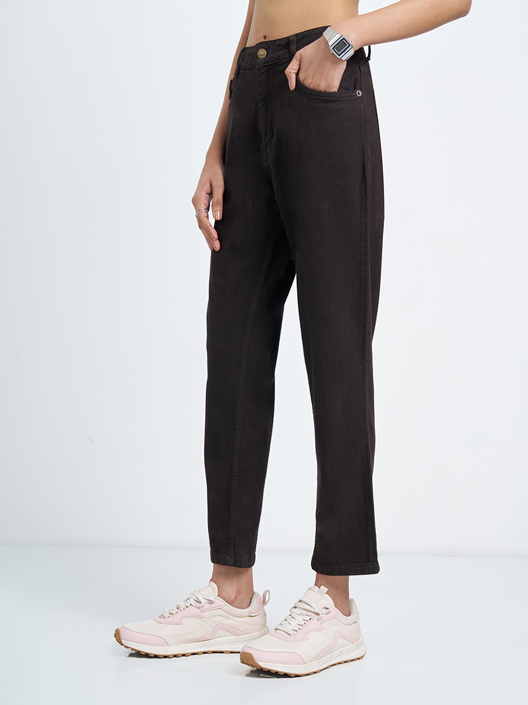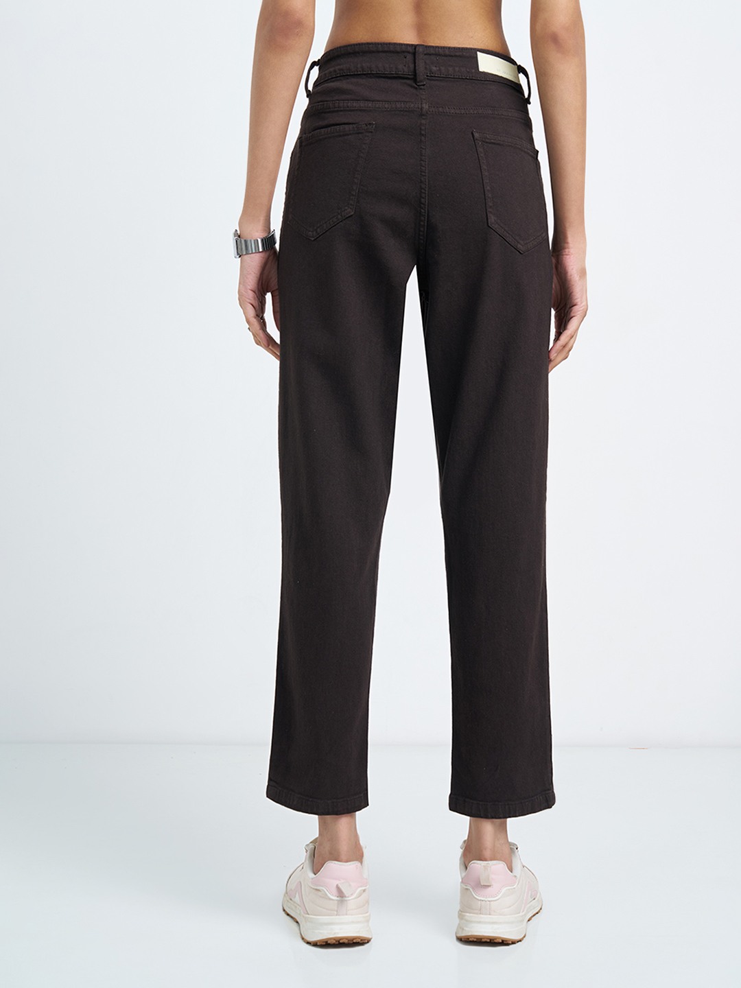 A sharp, minimal silhouette with a modern edge. These slim fit jeans feature a mid-rise waist, button-zip fastening, classic five-pocket styling and a cropped length that keeps the profile clean and current. Finished in a solid dyed wash, they offer a versatile alternative to everyday denim blues.