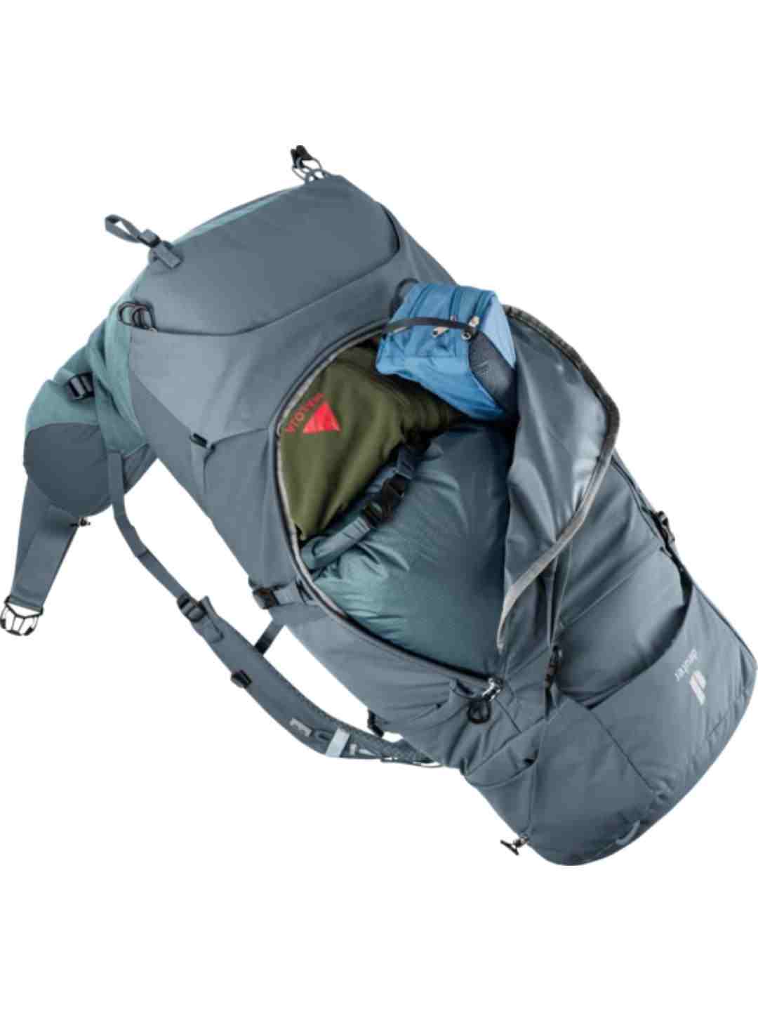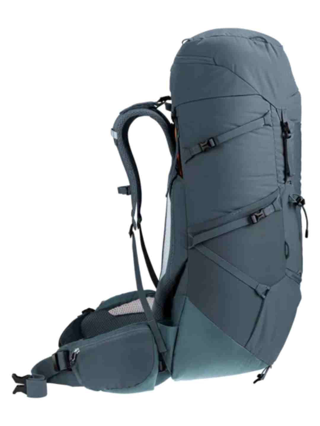This comfortable pack is very versatile thanks to modular gear straps that can be positioned to attach a range of items depending on the undertaking or the gear you need. Its superior carry comfort is down to the deuter Aircontact back system with Air Spacer mesh and a wide ventilation channel, plus ergonomic shoulder straps and an adjustable sternum strap. The Y-shaped frame in combination with mobile hip fins that wrap around the hips and deuter’s ergonomic trapezoid-shaped lumbar pad work together to distribute and stabilize the load.