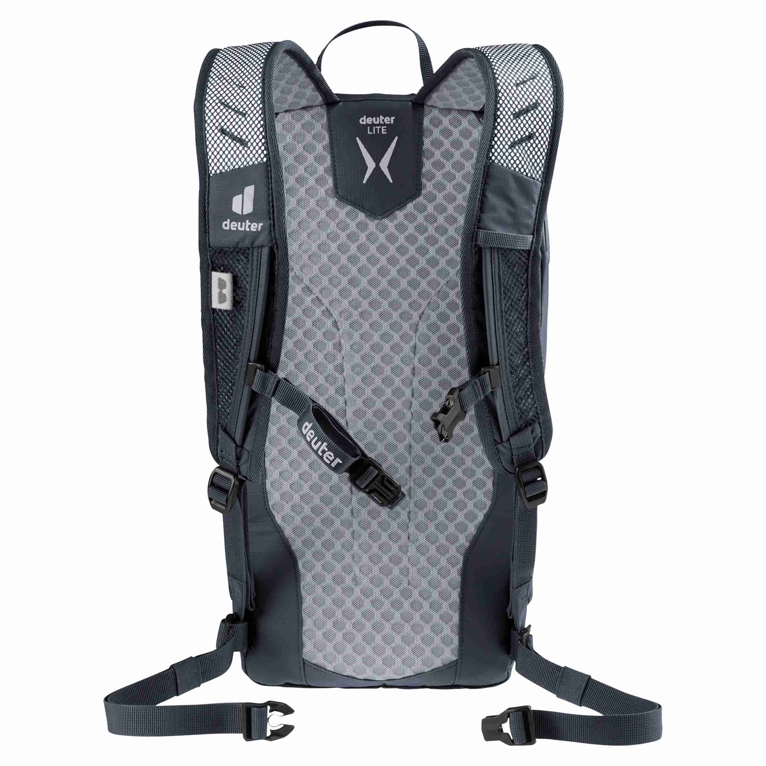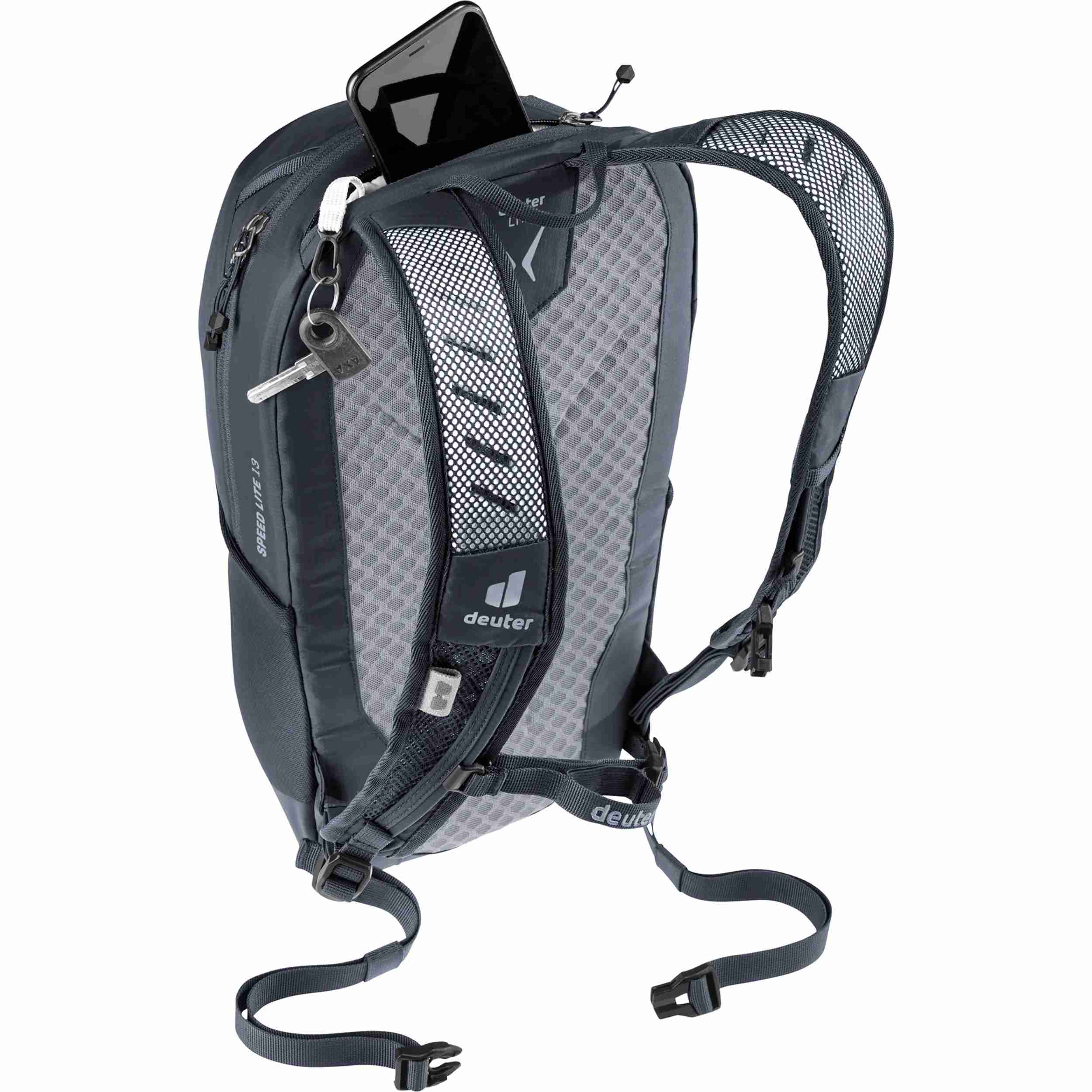 Speedy, light and sustainable thanks to deuter's Lite back system, vest-style, perforated shoulder straps, supple hip fins, precision-adjustable sternum strap and 100% recycled, bluesign® certified body fabric. Designed for fast-paced hiking and trail running, side compression straps effectively reduce load wobble and enable full range of movement. While a pocket on the shoulder straps keeps everything that you need on the trail handy.