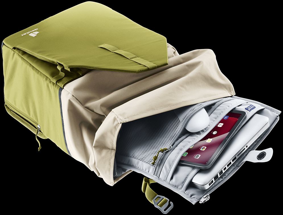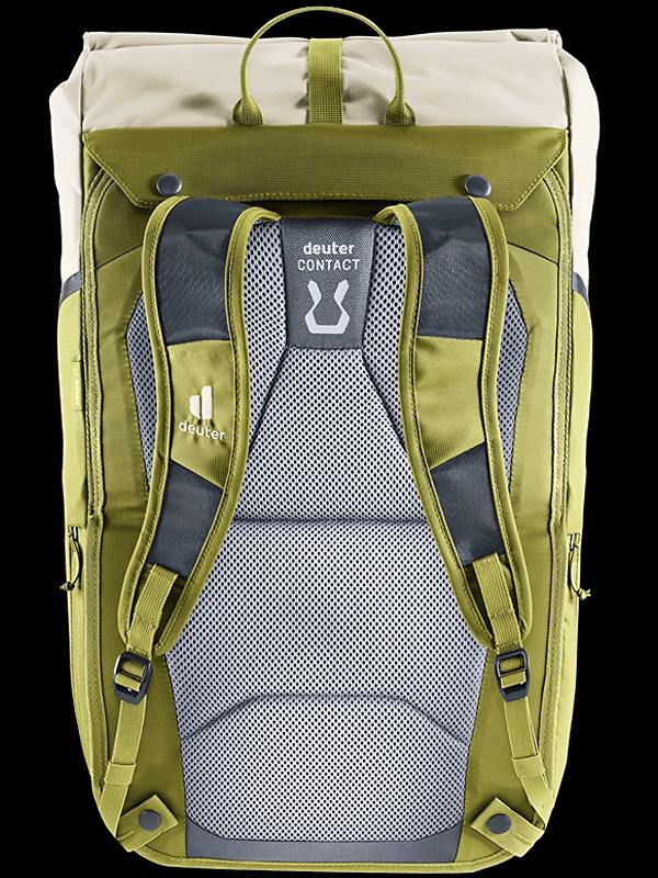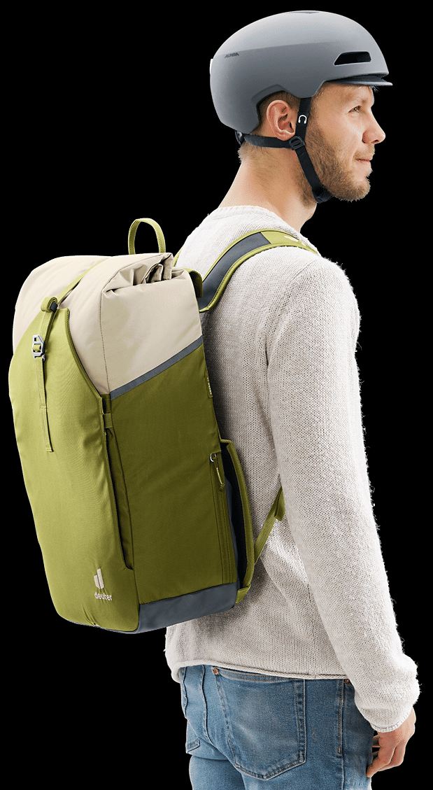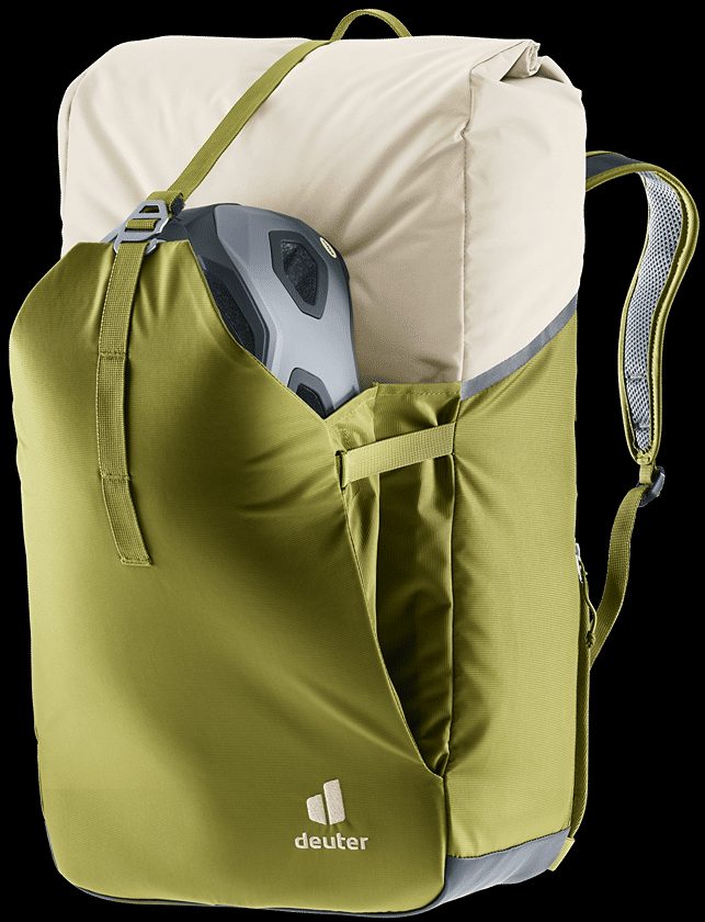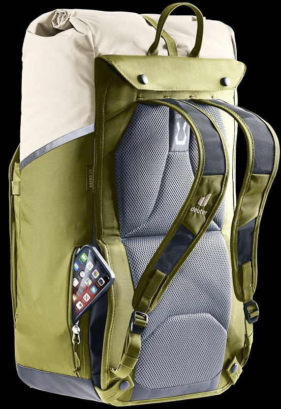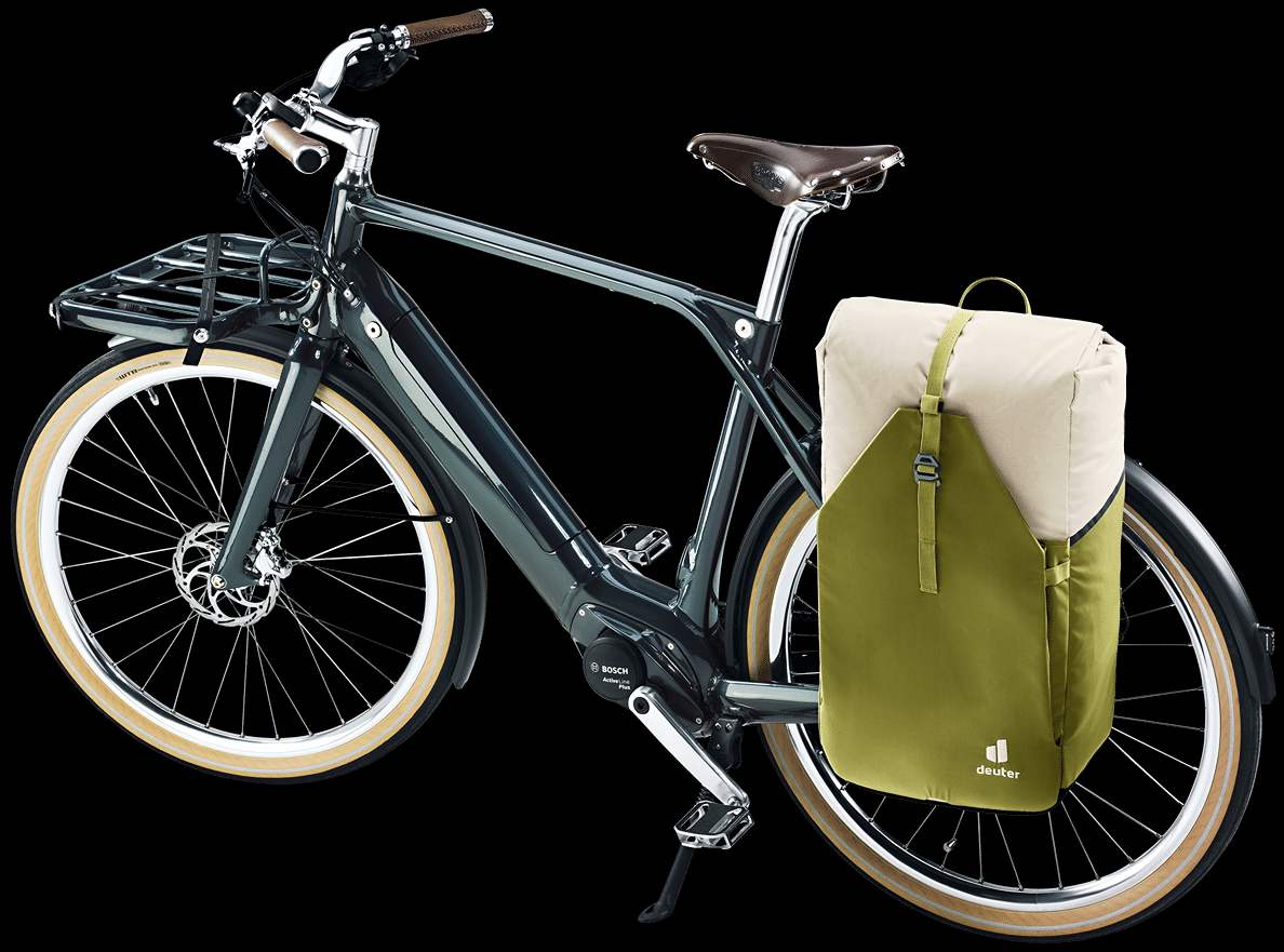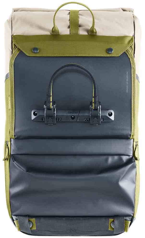 The Xberg converts from a bicycle pannier into a backpack thanks to the clever fold-up lower half of the back panel. Press studs fix the panel in an up or down position, revealing either the BagFix quick-release system (for attaching to a bike rack) or the deuter Contact back system with ergonomic shoulder straps. A roll-top opening with buckle closure, universal attachment options on the lid, plus further internal compartments make it practical and quick to organize and access contents.