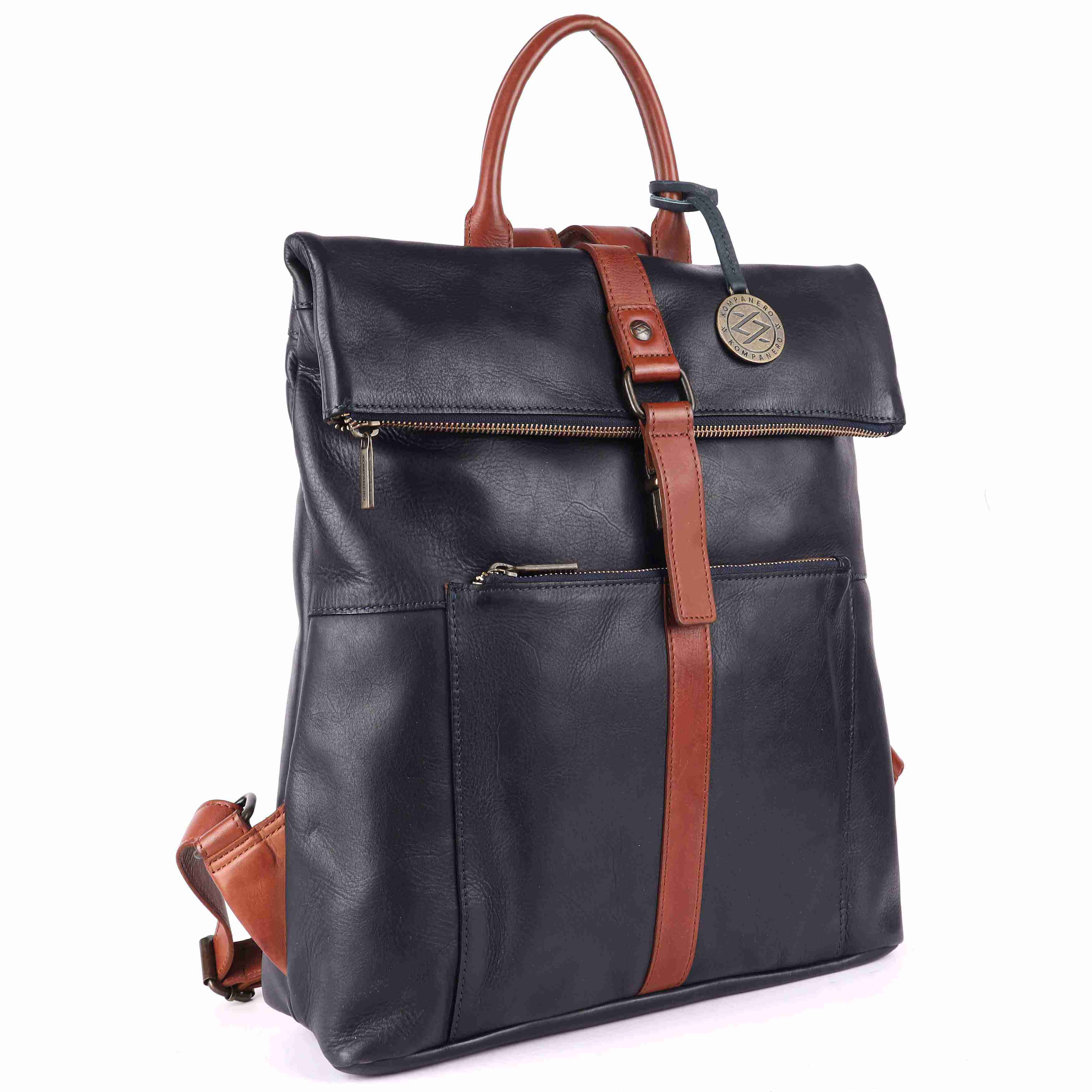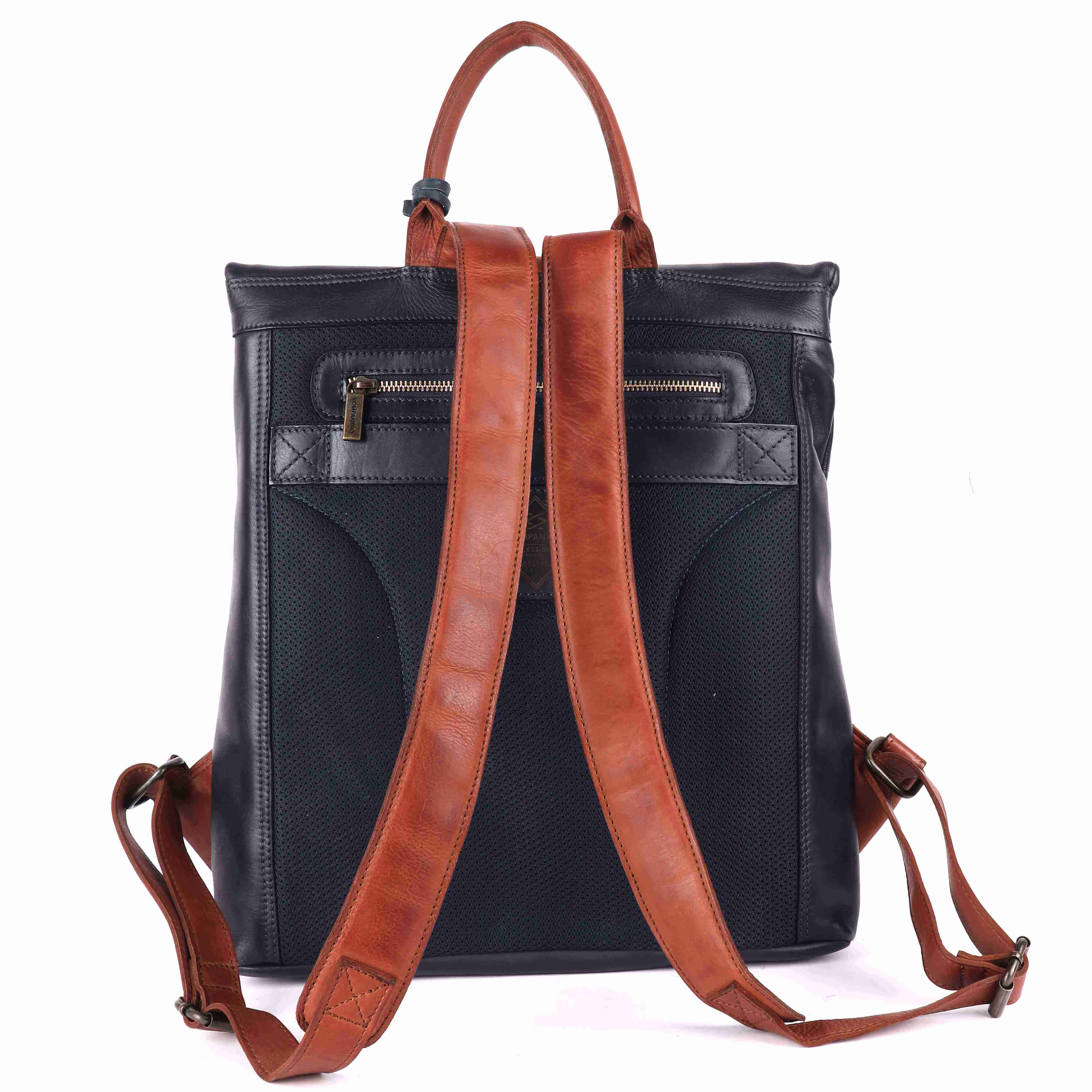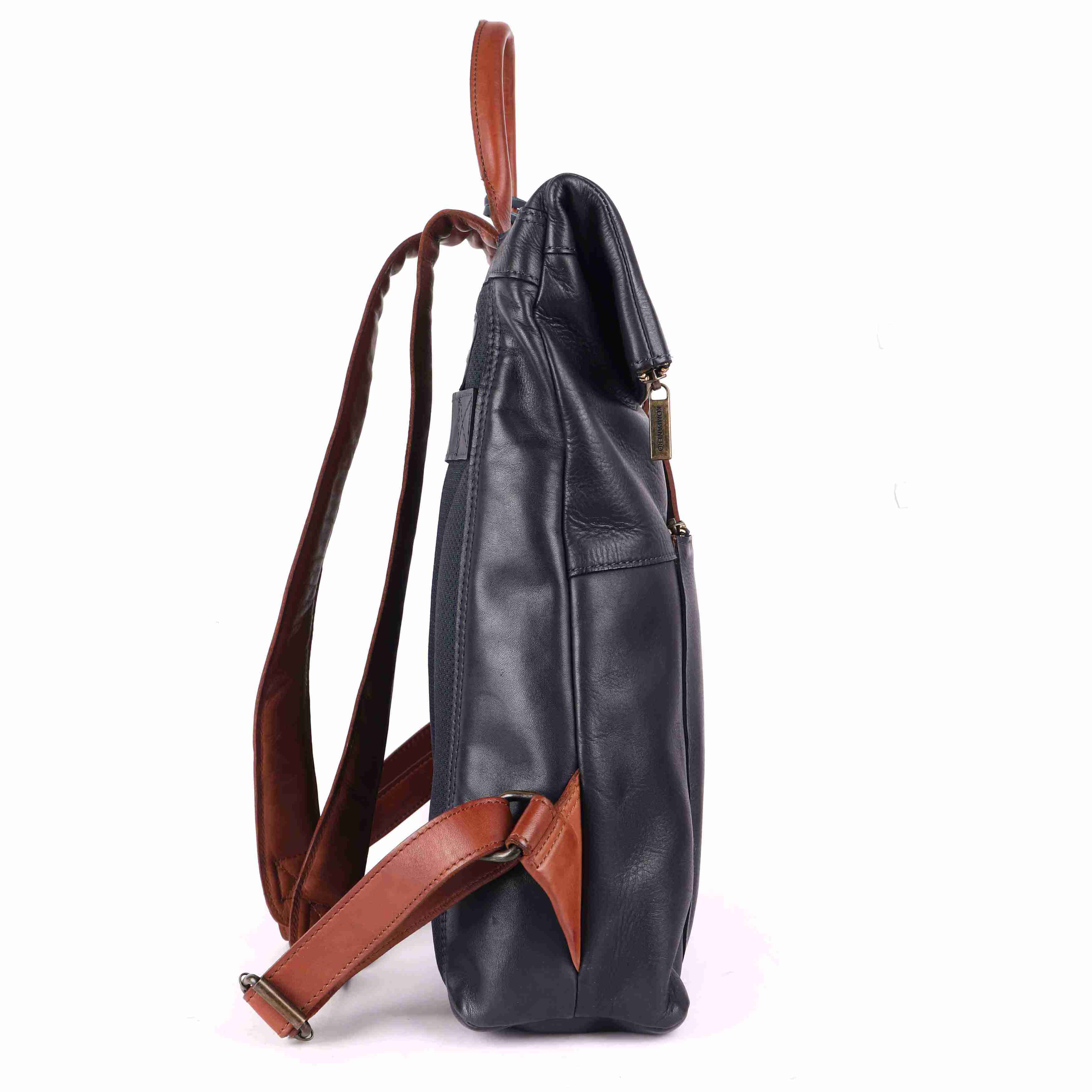 This backpack is crafted from high-quality, vegetable-tanned leather in a striking combination of warm navy blue and cognac, creating a unique and stylish contrast. The spacious interior, lined with soft cotton. Designed for those who value both functionality and refined craftsmanship, this backpack is a versatile companion for daily use or travel.