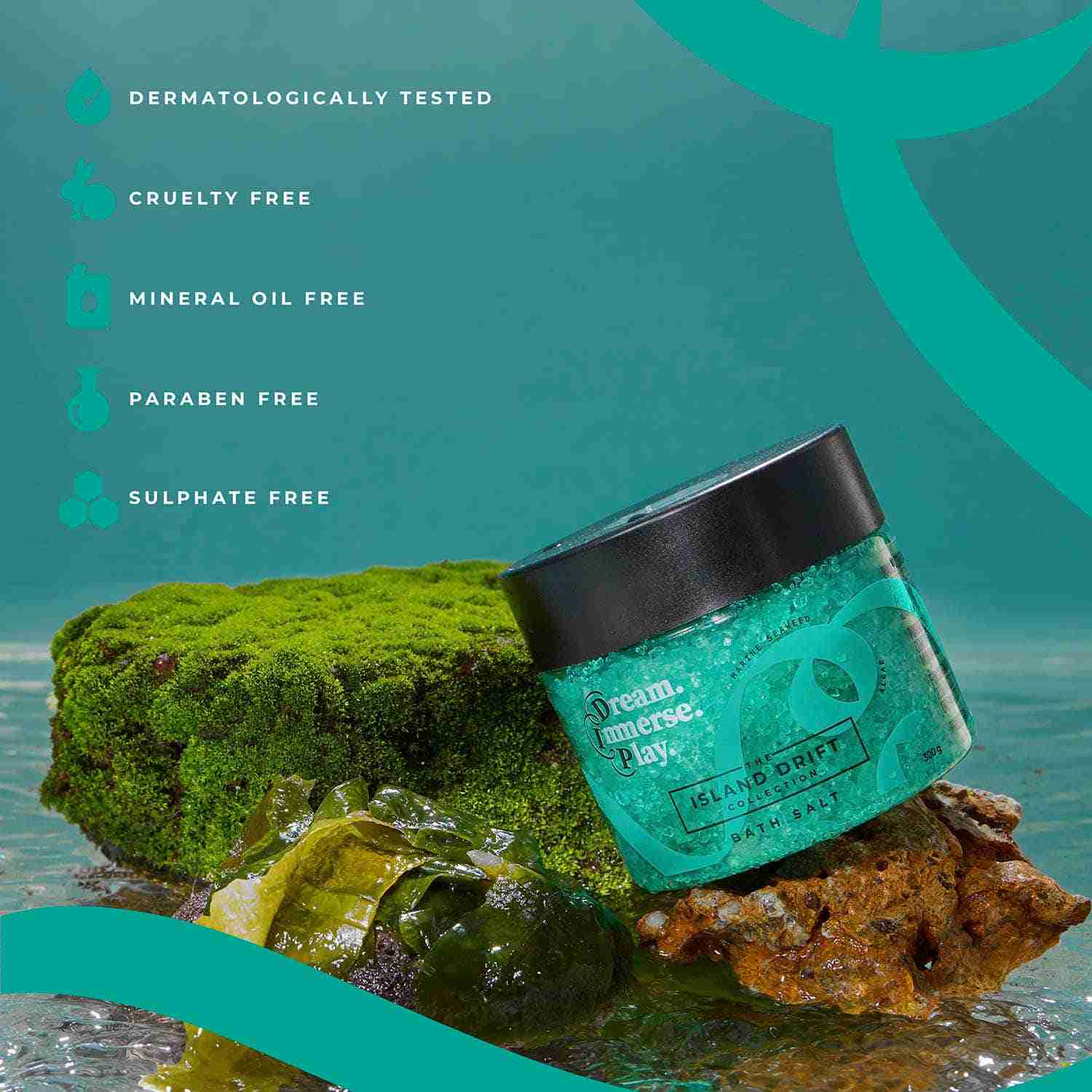DIP into a luxurious bathing experience with the soothing blend of mineral-rich salts and the restorative power of marine seaweed and algae, making for a spa-inspired soak that gently evokes the tranquility of the ocean, while cleansing, softening, and revitalising skin.