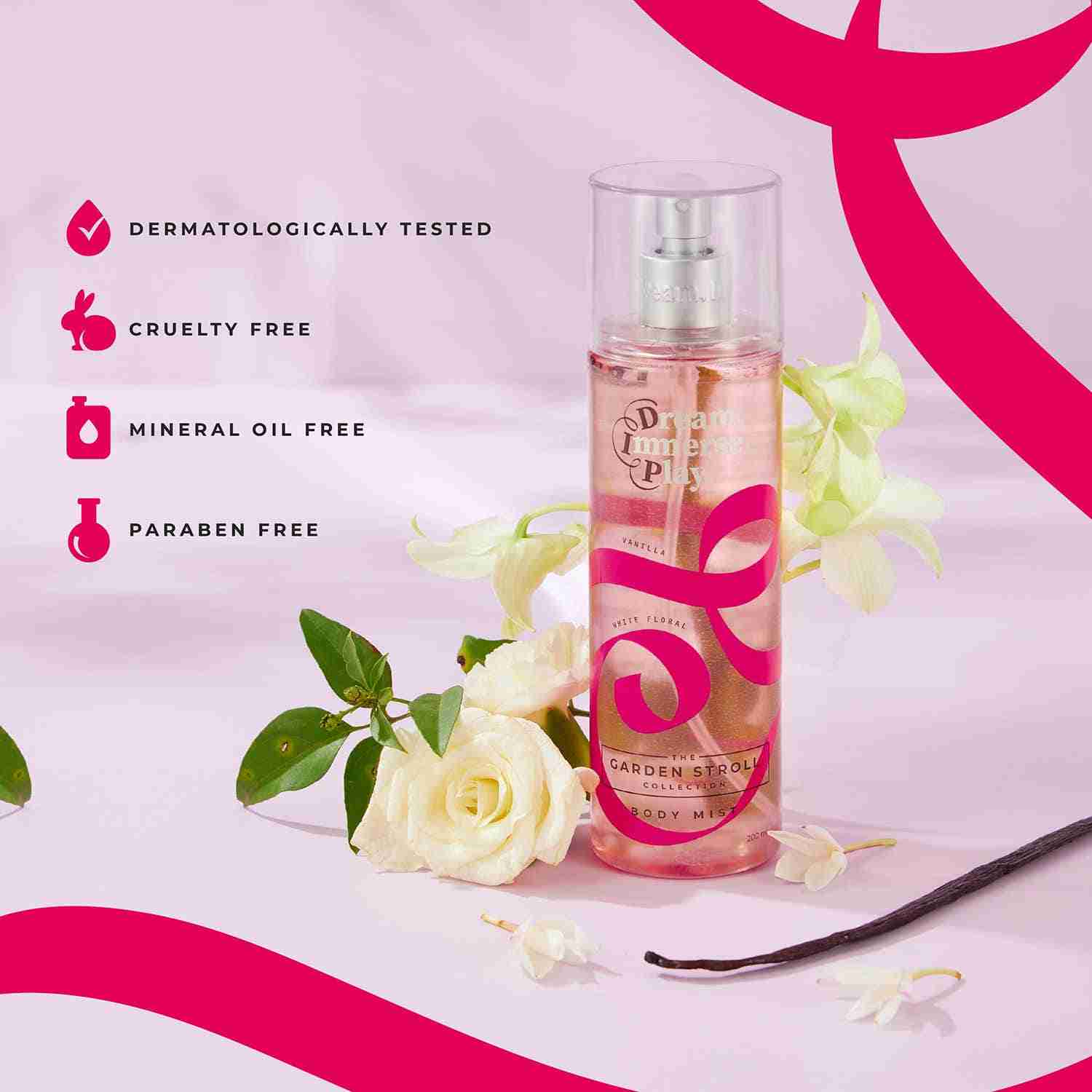 DIP into this refreshing body mist that envelops you in a subtle fragrance combining sun-kissed amber, a bouquet of delicate white florals, and a whisper of sweet vanilla, in a scent that lingers subtly through the day.