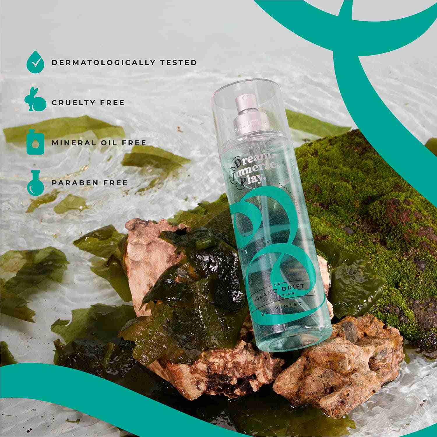 DIP into this refreshing body mist featuring marine seaweed and algae, enveloping you in subtle aquatic notes reminiscent of the refreshing sensation of the sea, the breeze, fresh mountain air, and raindrops.