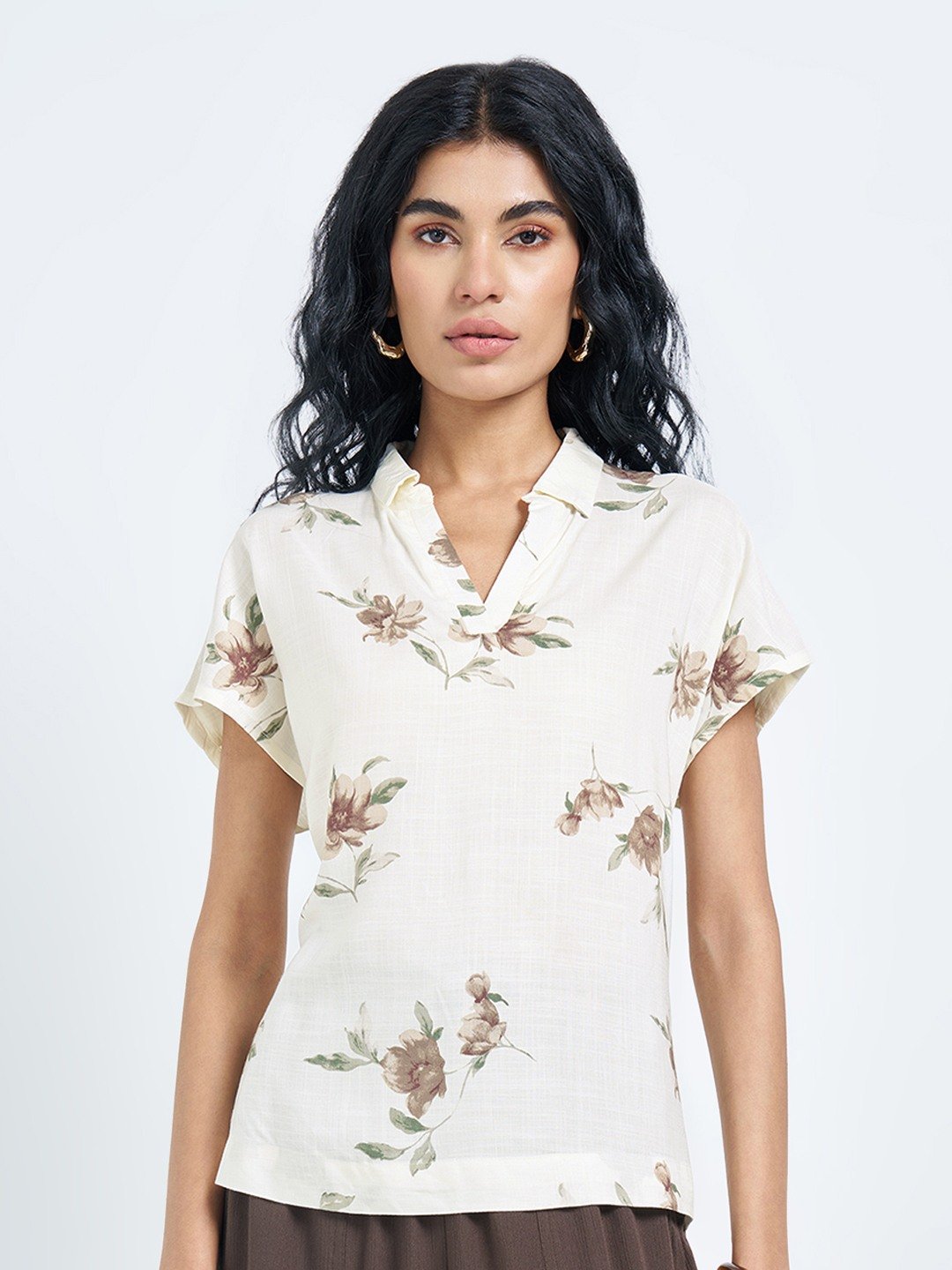 Soft florals meet an easy, everyday silhouette in this lightweight pullover style. Designed with a clean split neckline and dolman sleeves, the fluid fabric falls naturally for a relaxed finish. The all-over floral print adds quiet detail while keeping the look understated and versatile.