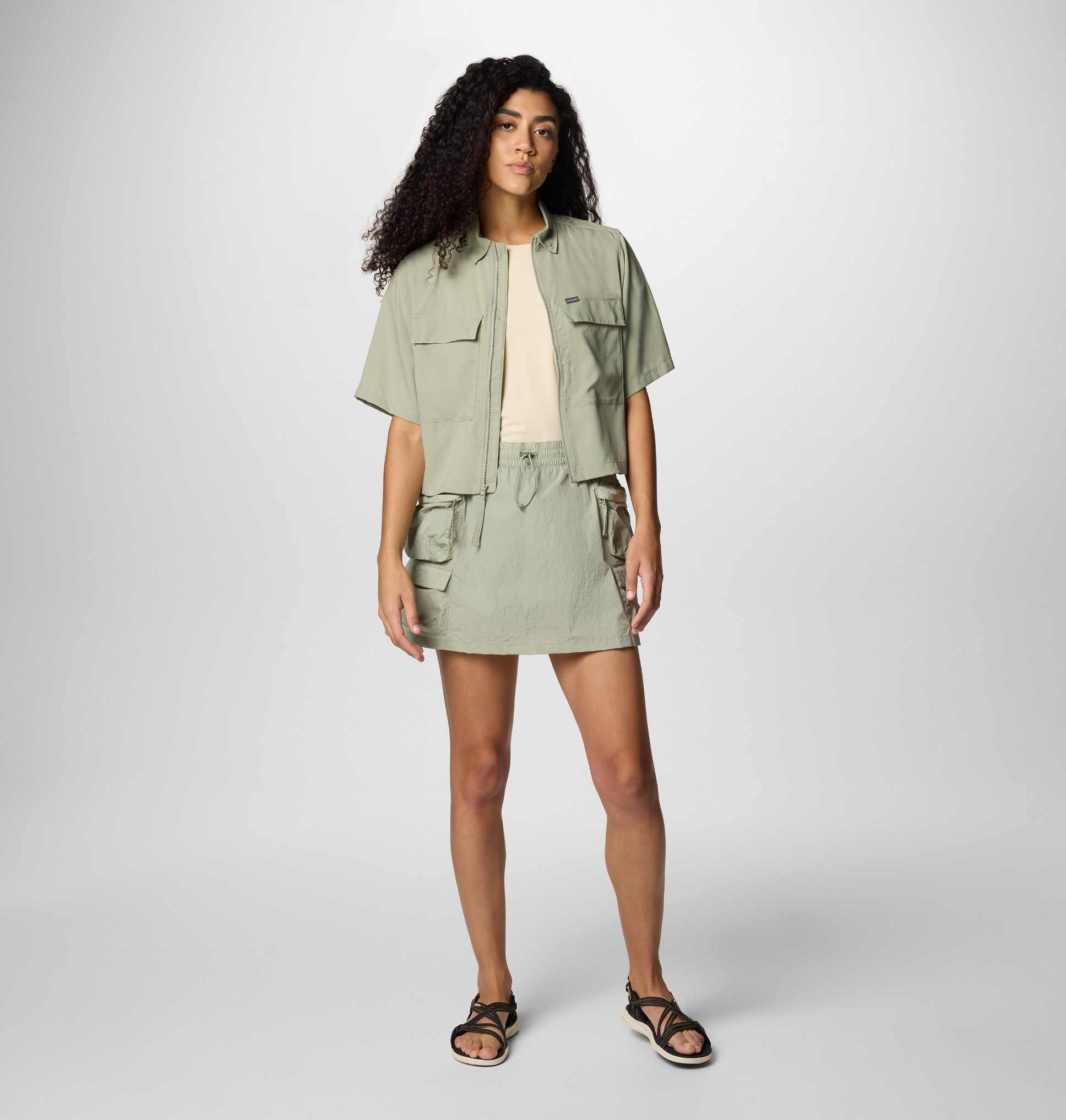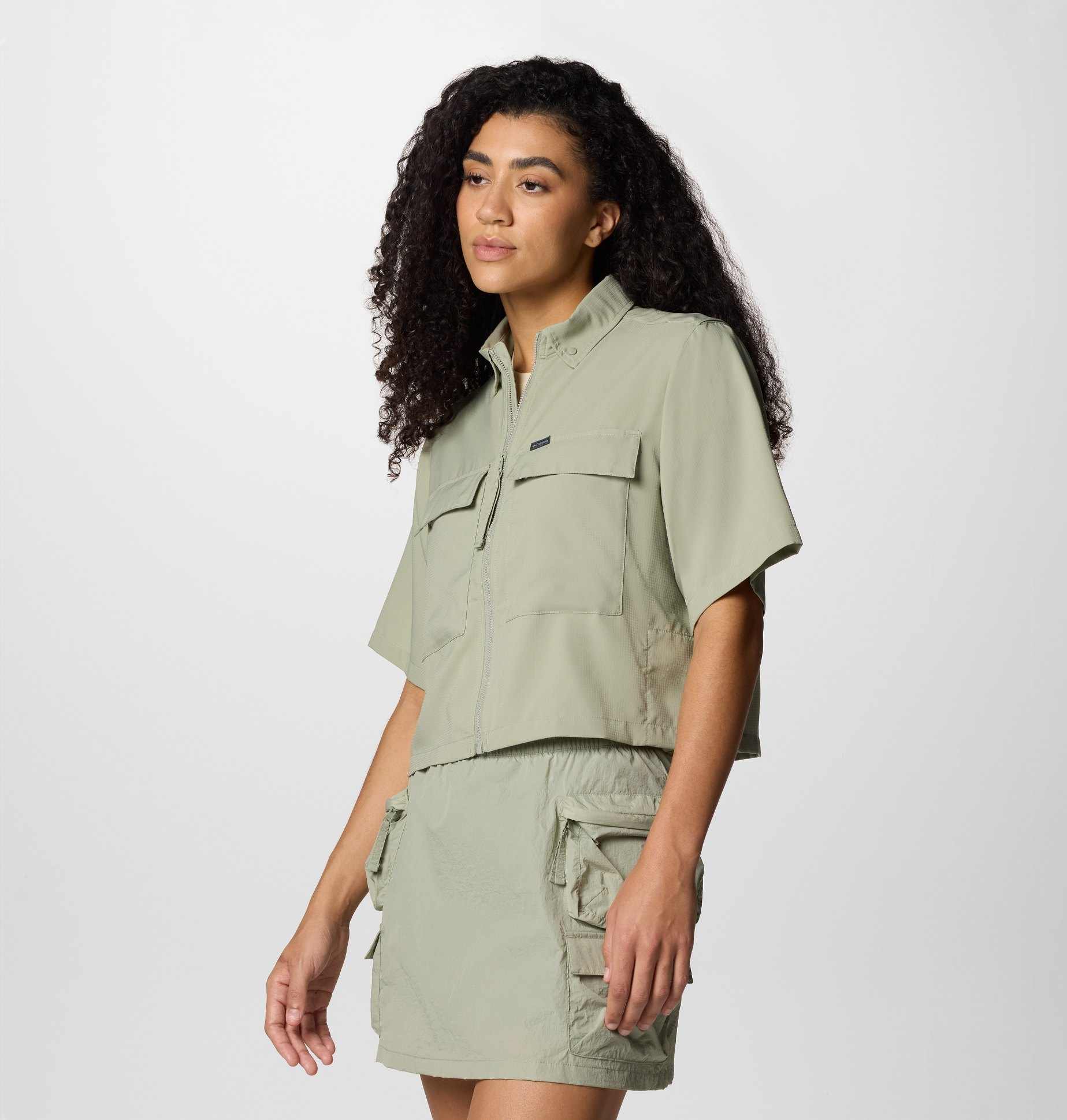 Home/Casual Shirts/Columbia/women green elevated view utility short sleeve omni freeze shirt