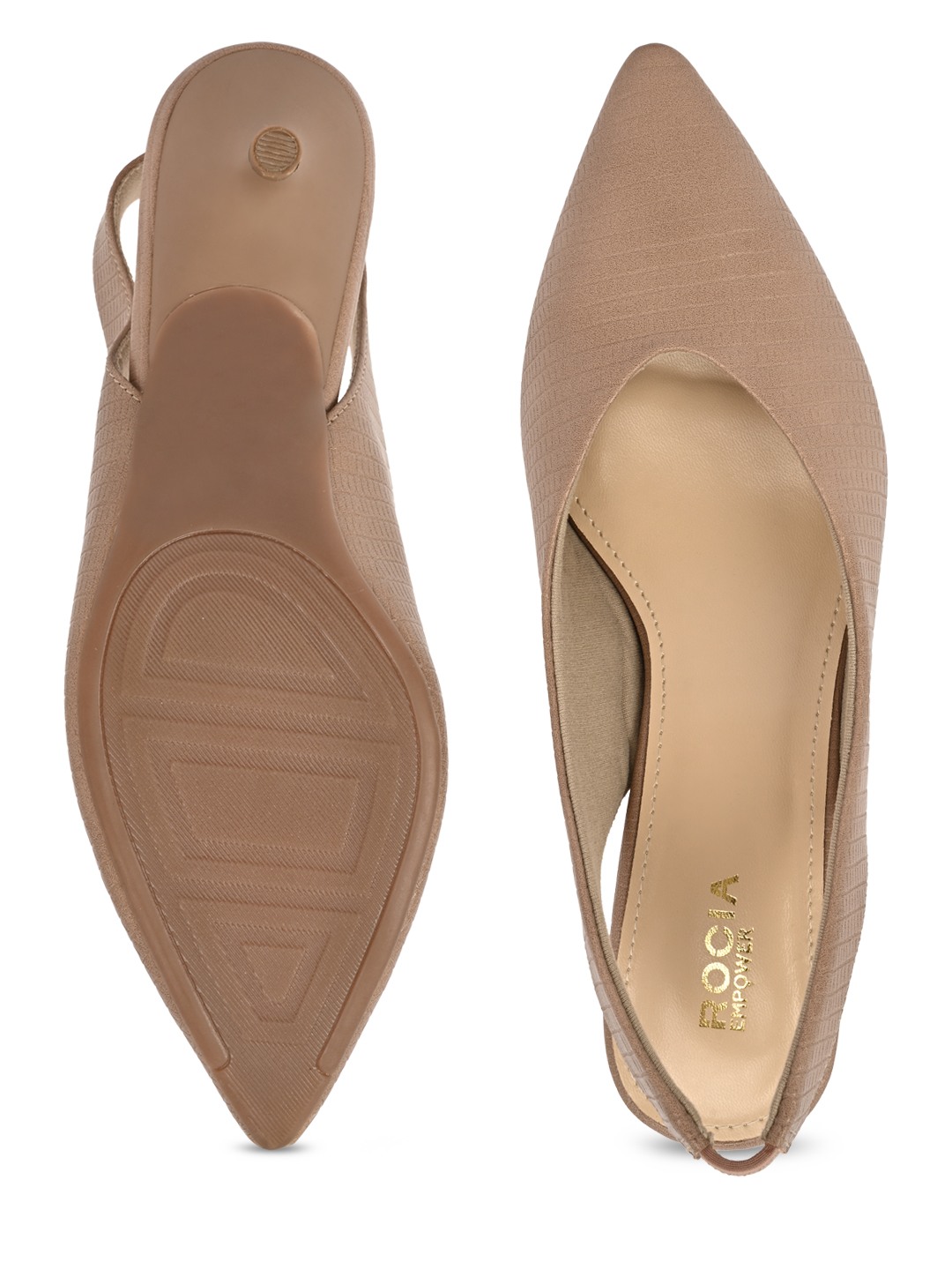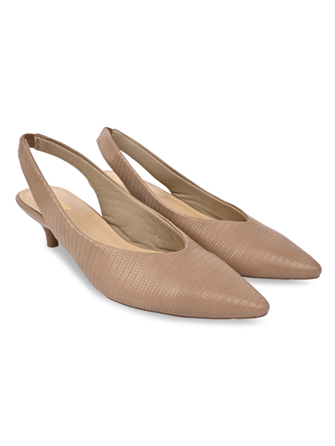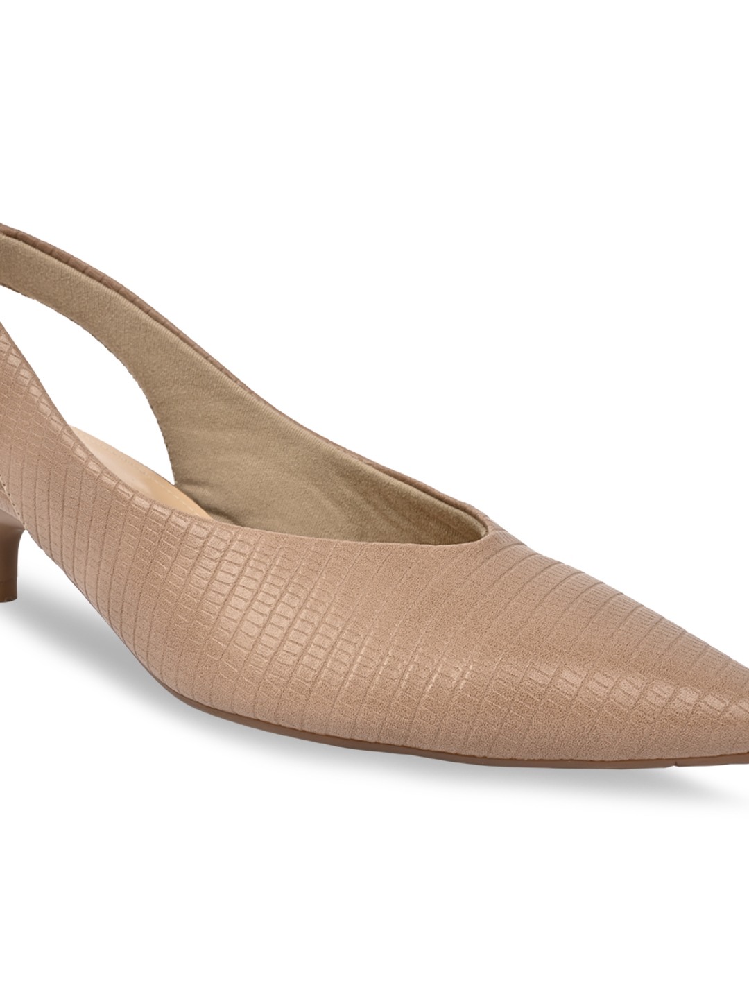 Elegant and versatile, Rocia by Regal Shoes Textured Classic Kitten Heel Sling Backs are designed for refined everyday dressing. The closed pointed-toe design adds timeless sophistication to work and casual looks. A secure sling back ensures comfortable movement throughout the day. Resting on a 1.5-inch kitten heel, they offer graceful elevation with lasting comfort.