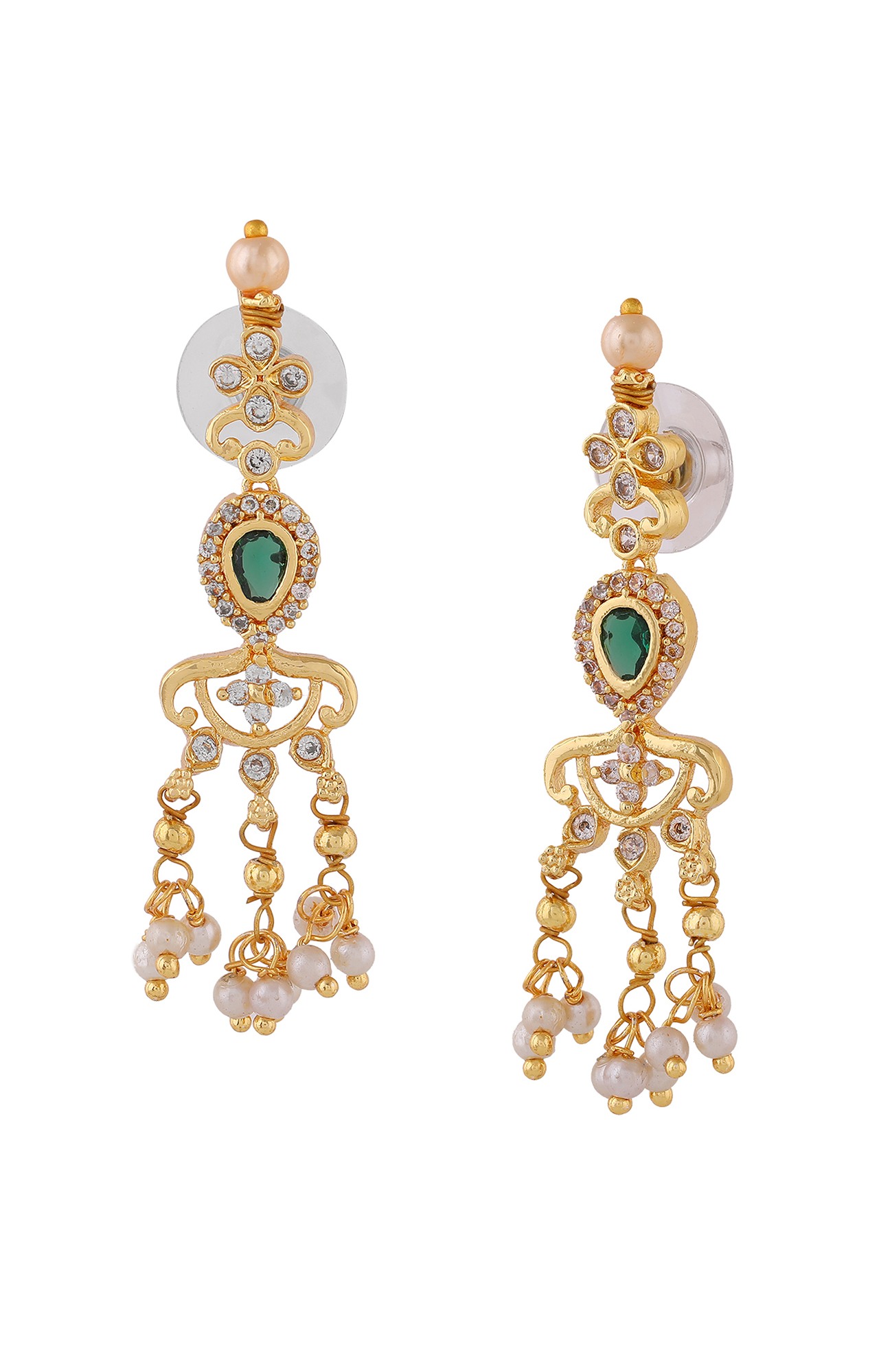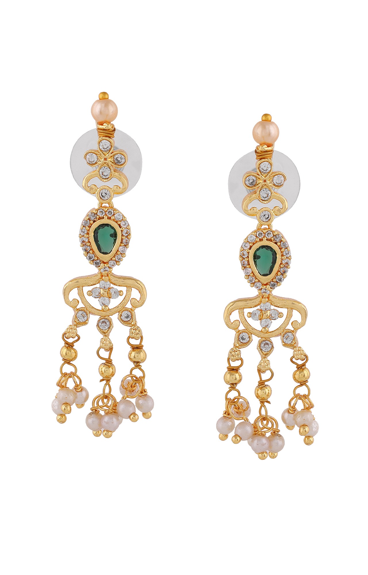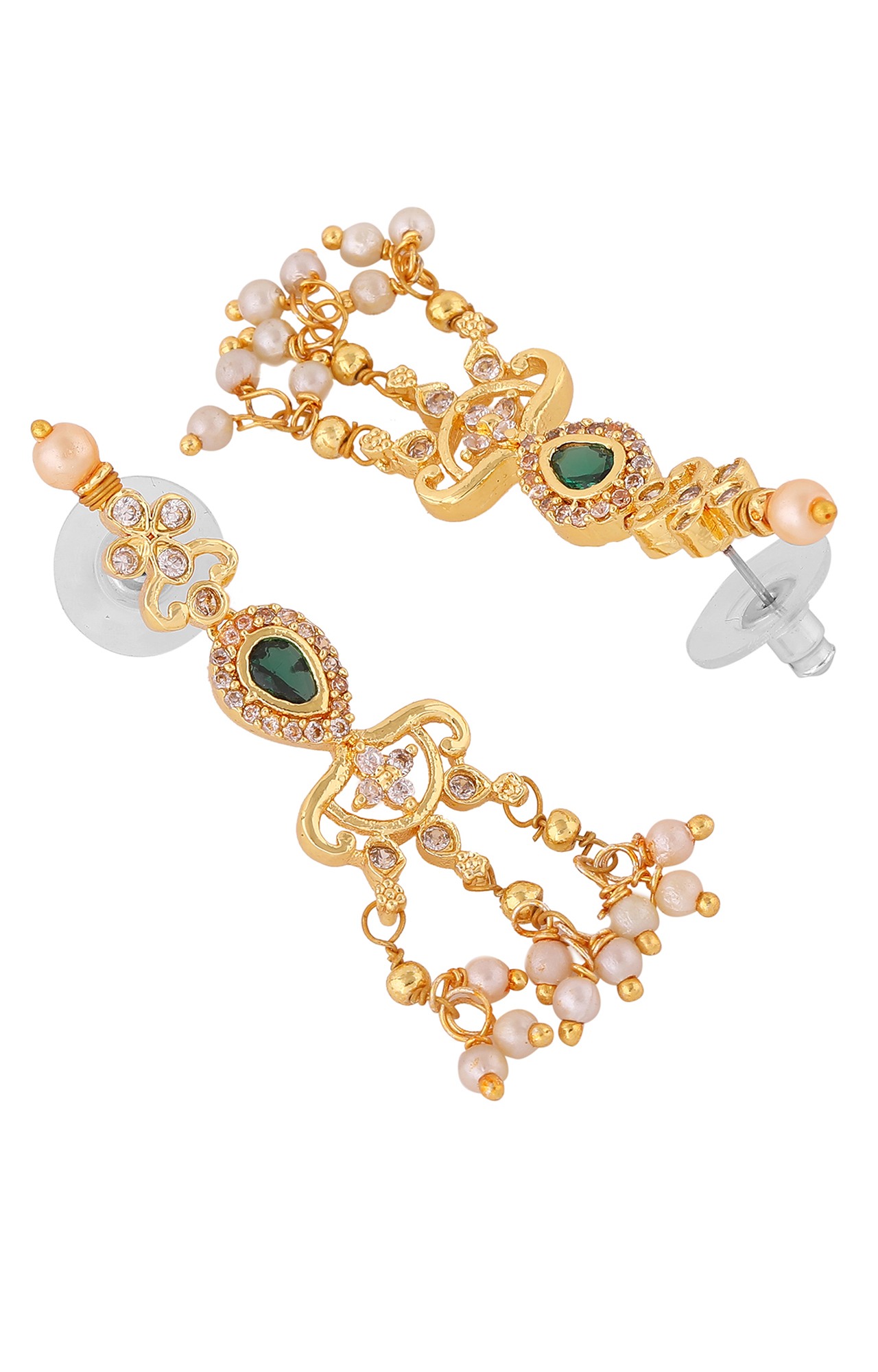 Estele Gold Plated CZ Glamorous Designer Earrings with Pearls for Women