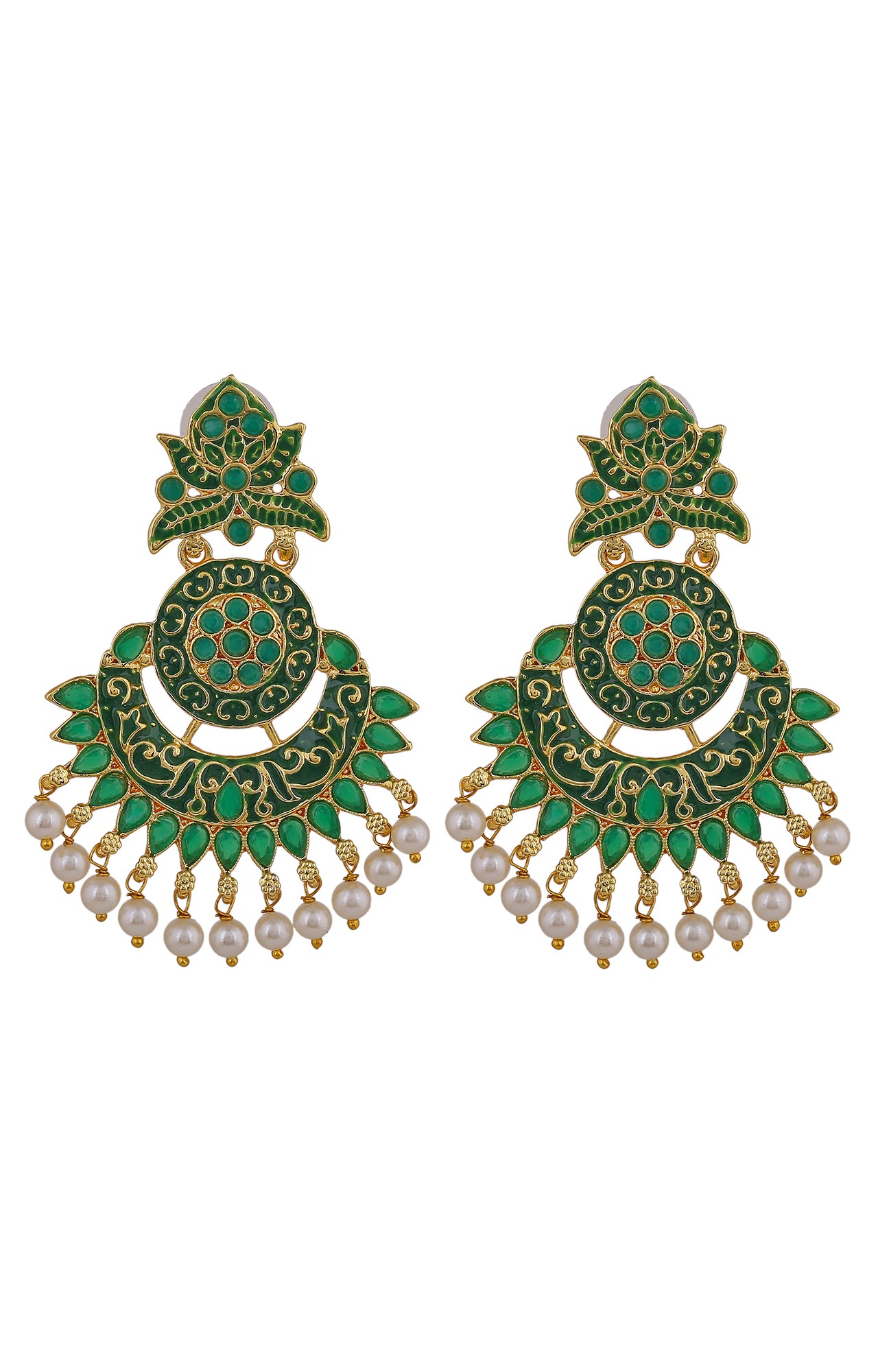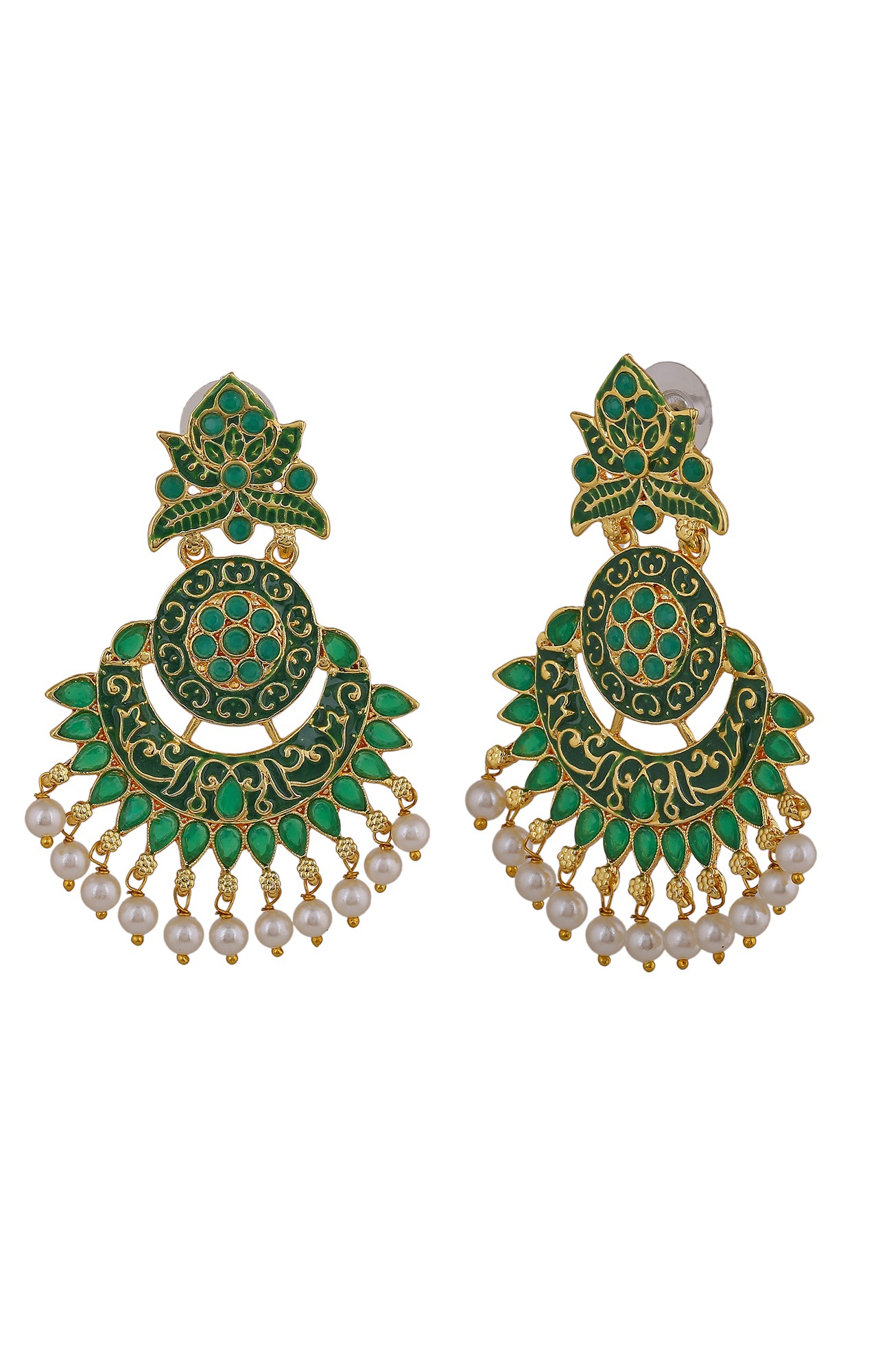 You will absolutely love this gorgeous leaf designer Meenakari earring which can glam up any look easily. Opting for such gorgeous meenakari jewelry designs will help you slay that perfect look without much effort. Be it sarees, shararas, or lehengas, pairing these earrings will grab you all attention for the right reasons.