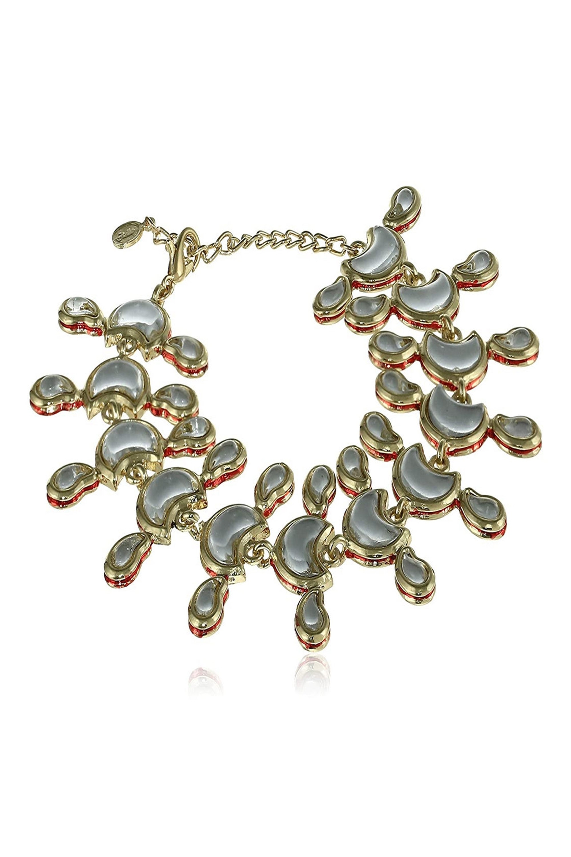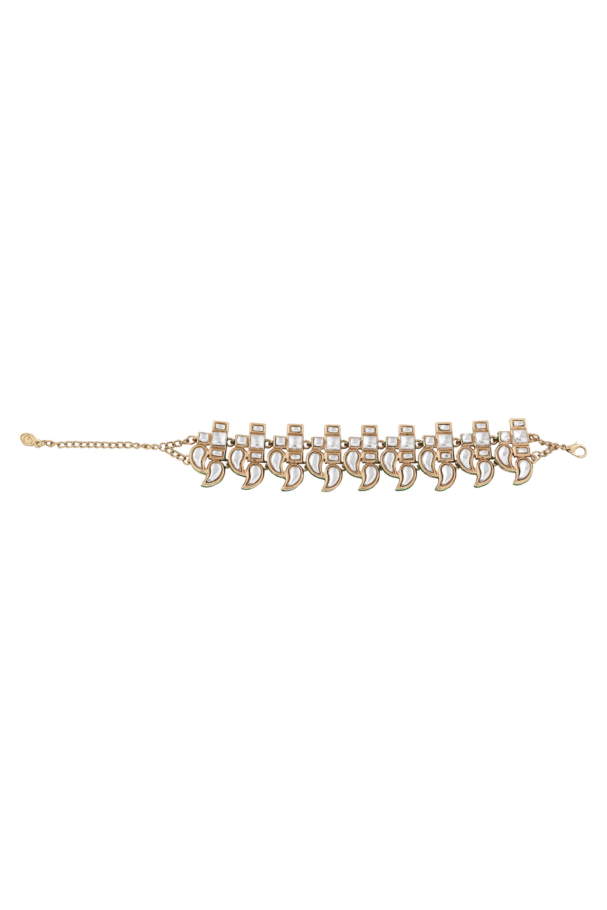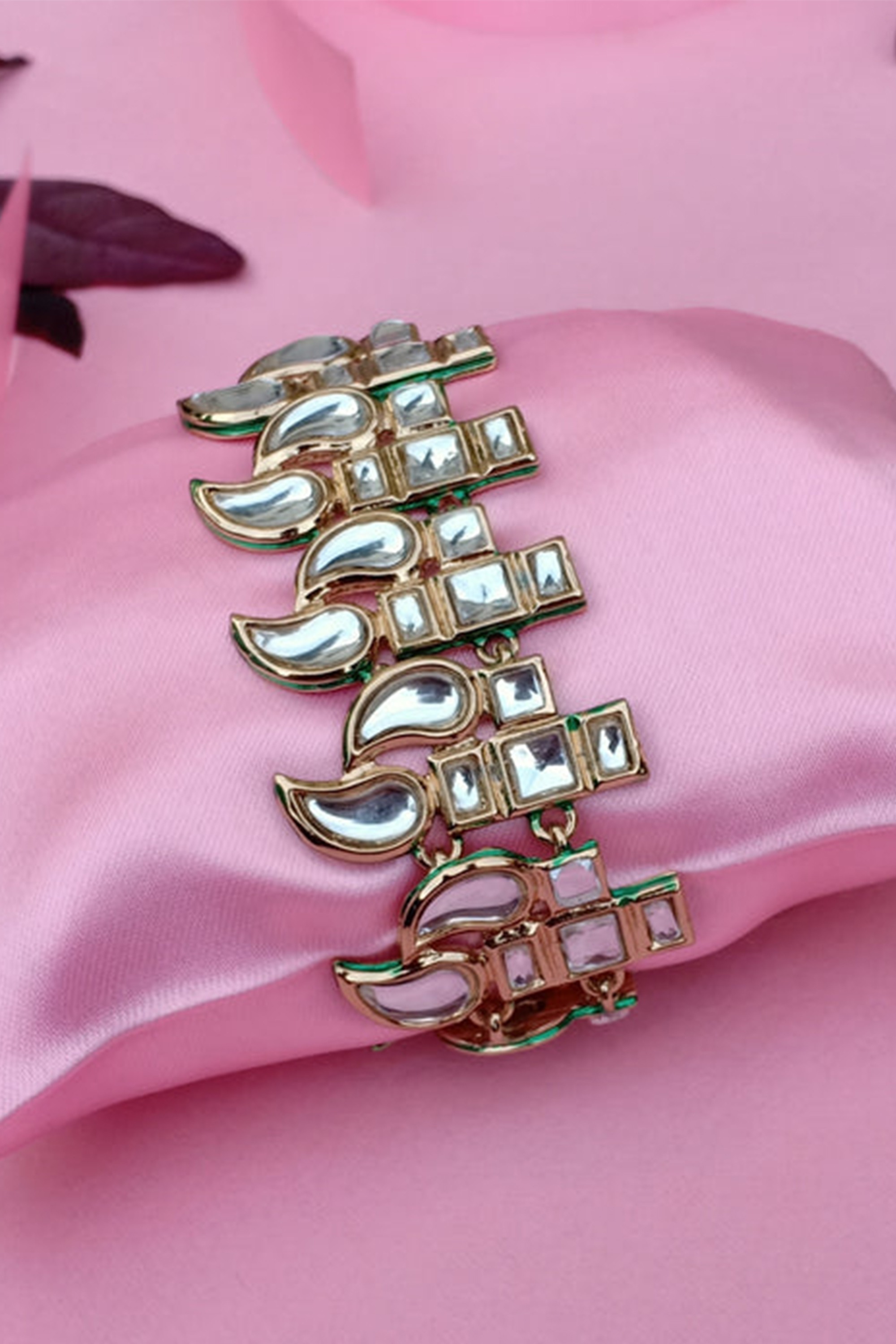 Add elegance to your attire with this gold-plated beautiful Kundan bracelet. Made from high-quality material, it will have you shining out of the crowd and have your heads turning. Featuring an intricate design, this bracelet can be worn to create a fusion or a unique traditional look.