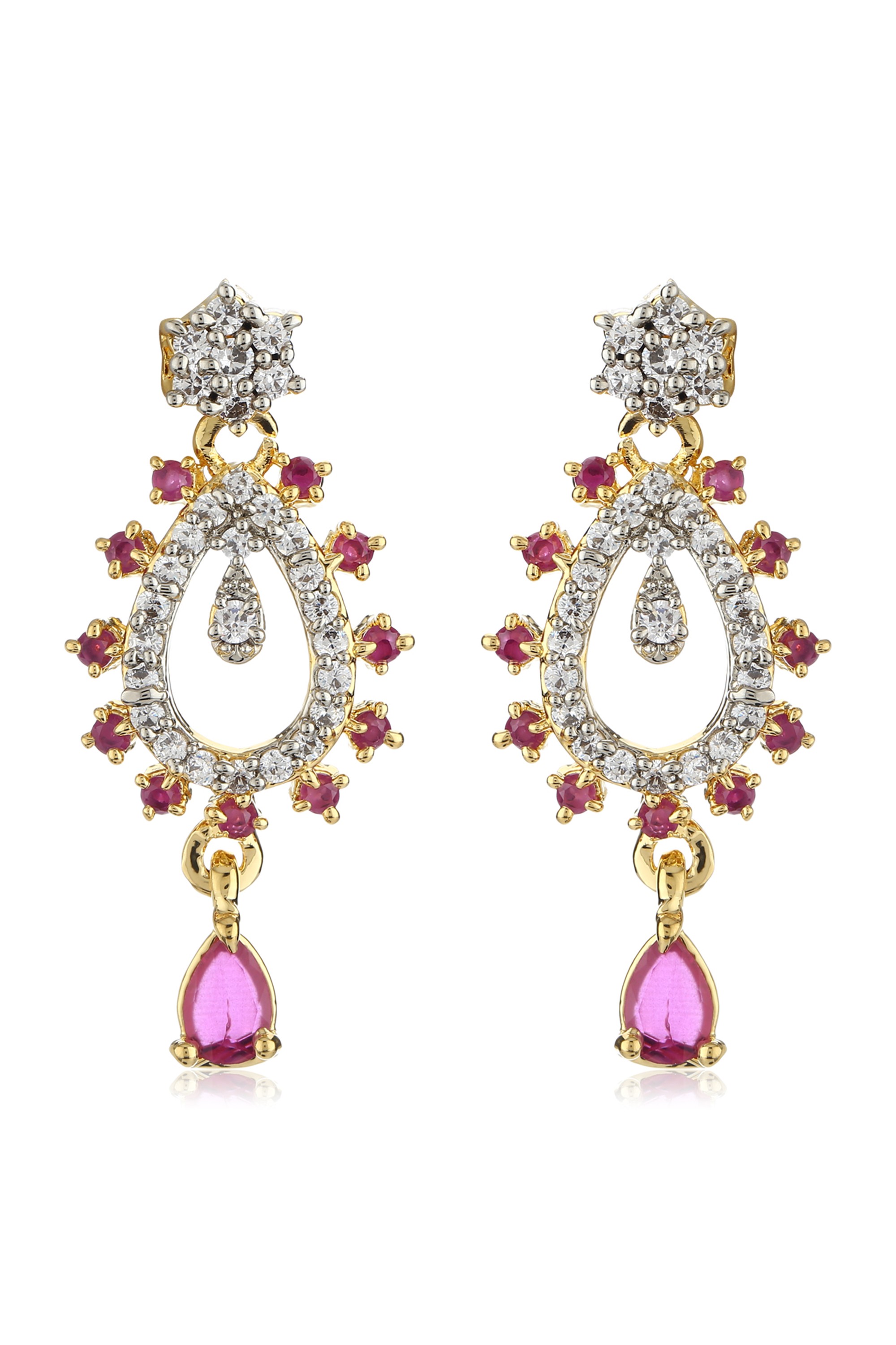 These sparkling drop earrings with pink and white cubic zirconia stone are a perfect match for Events Occasion. Wear it with your ethnic outfit when you're going to the occasion.