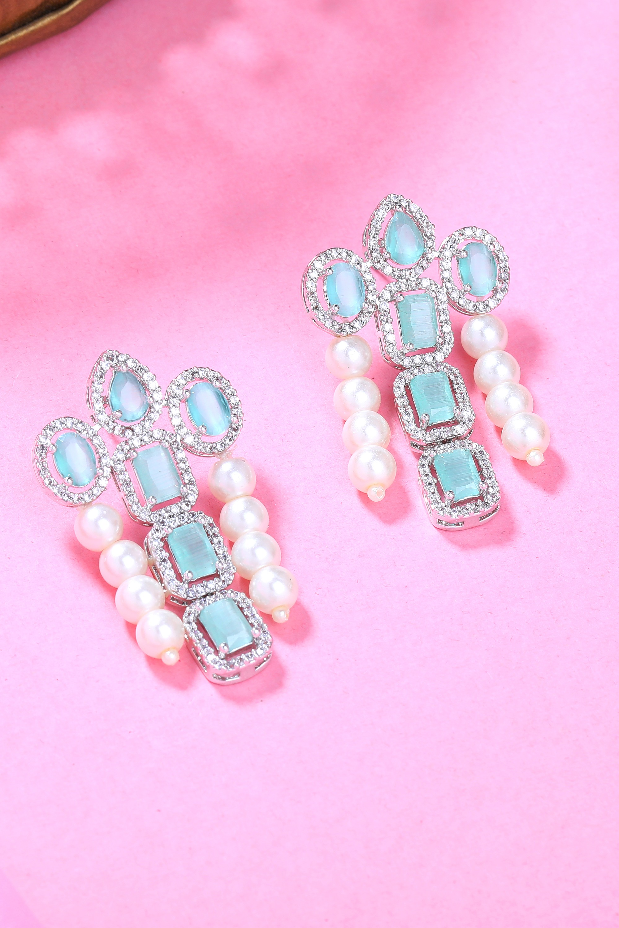 Complete your look with this sparkling earring with cubic zirconia stones & Pearls. This marvelous piece of beauty will surely accentuate your look in a moment. Style it up on your special day and make it even more memorable.