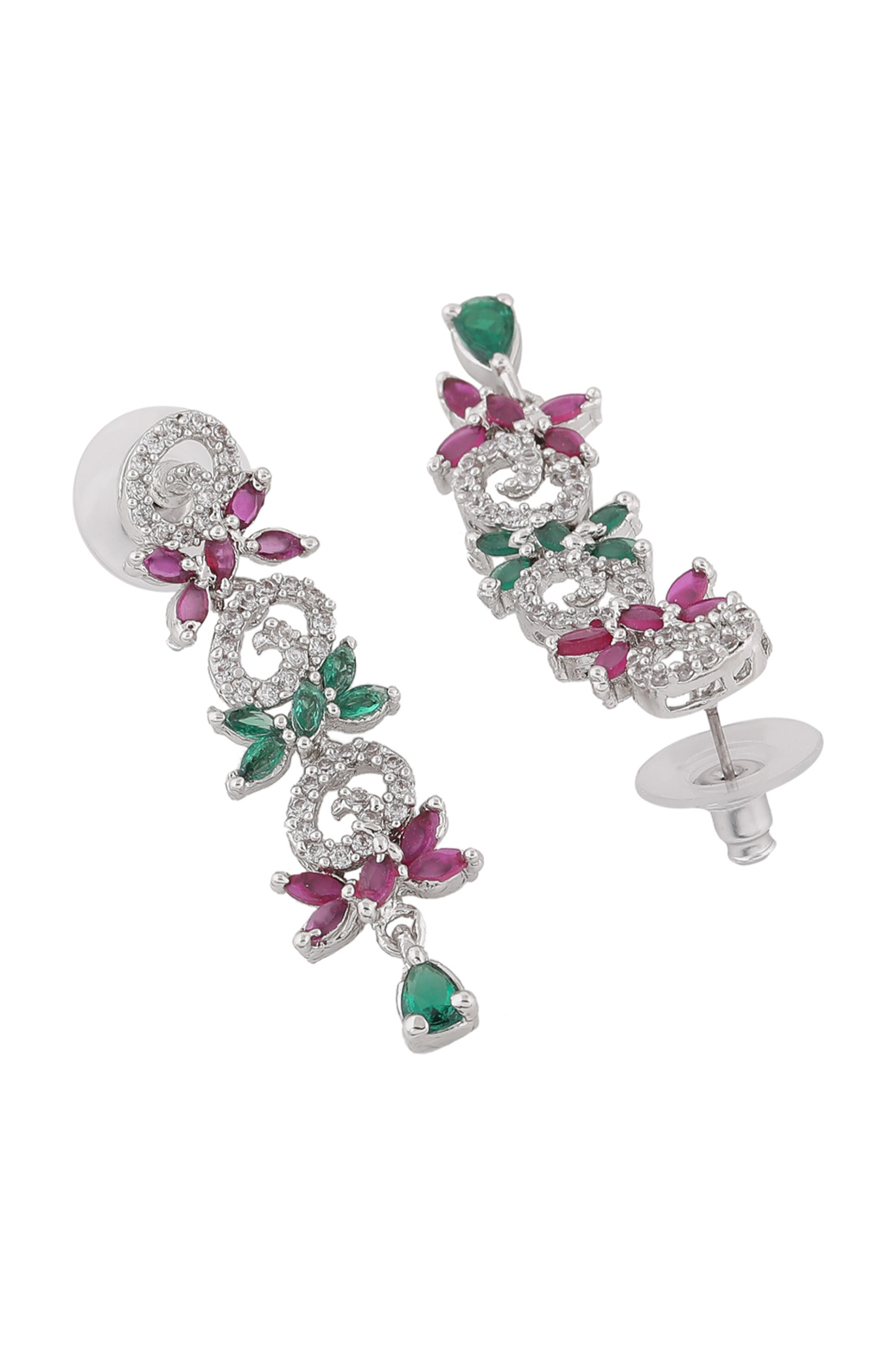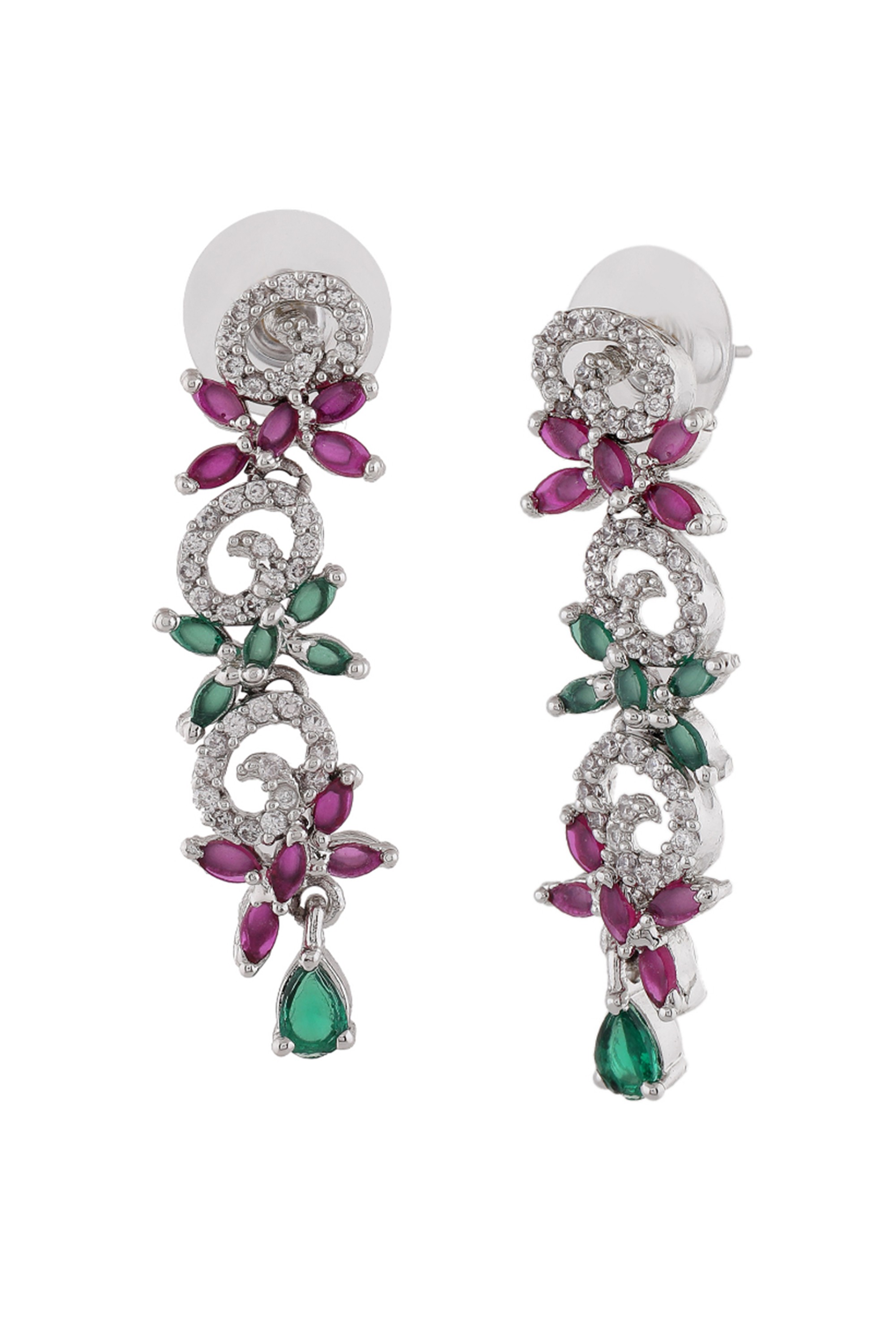 Estele Rhodium Plated CZ Dazzling Twirl Designer Drop Earrings for Women – Stylish, Elegant, and Captivating Jewelry for Every Occasion