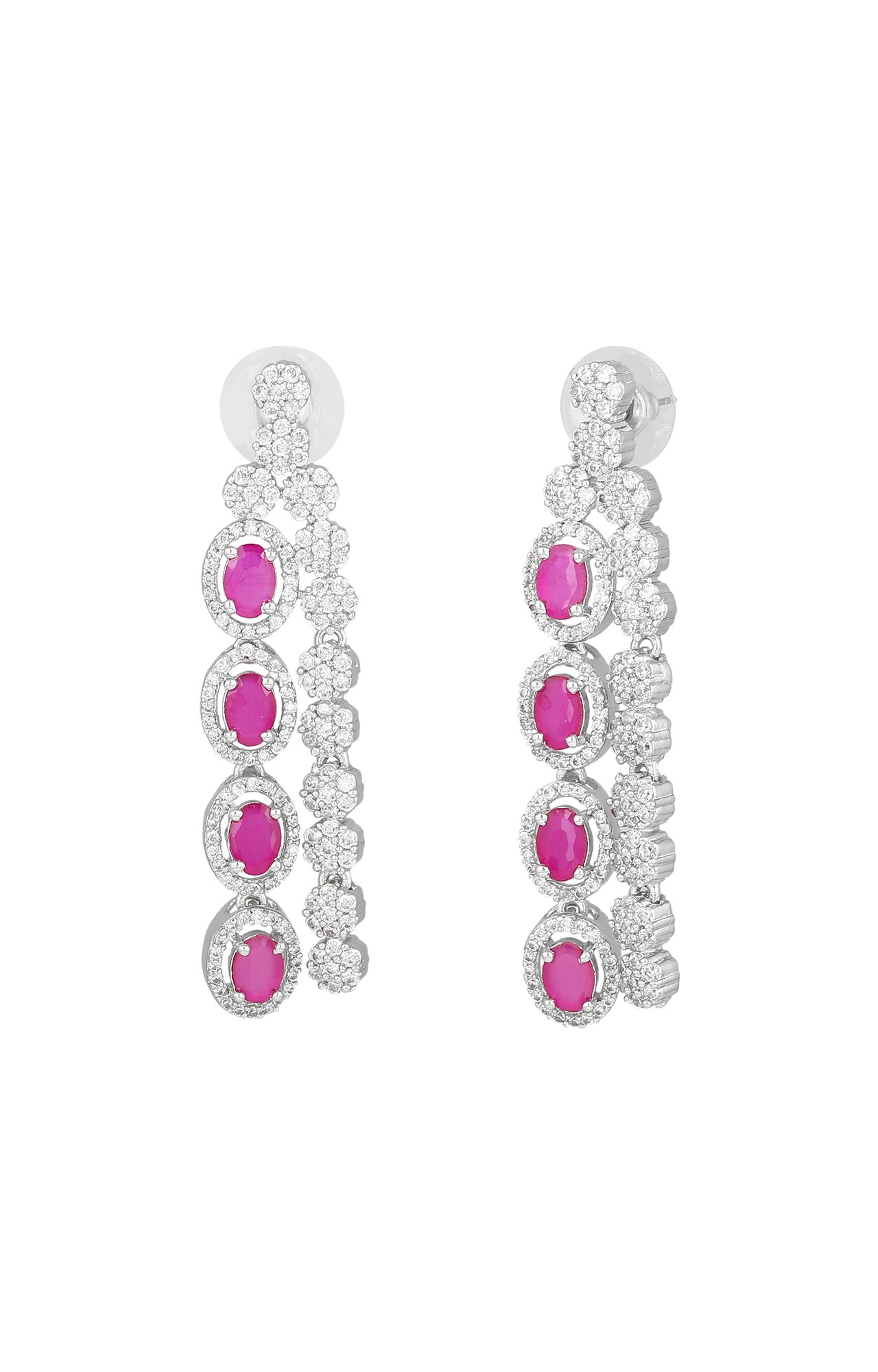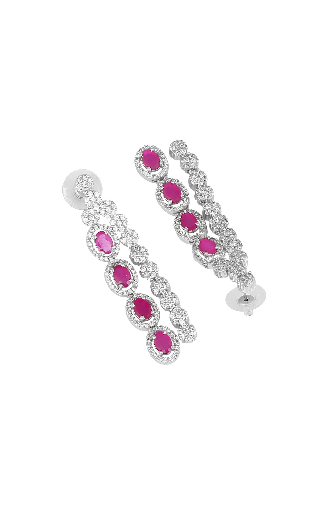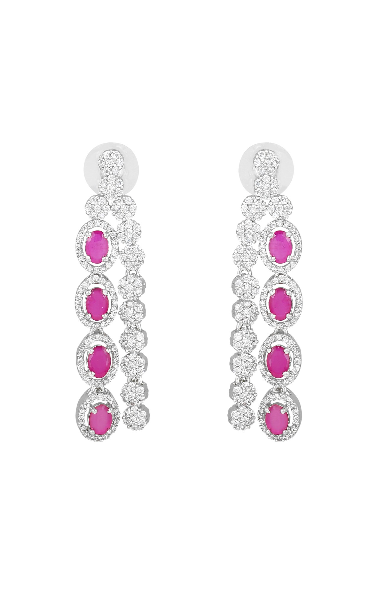 Estele Rhodium Plated CZ Fascinating Earrings with Ruby & White Stones for Girls and Women