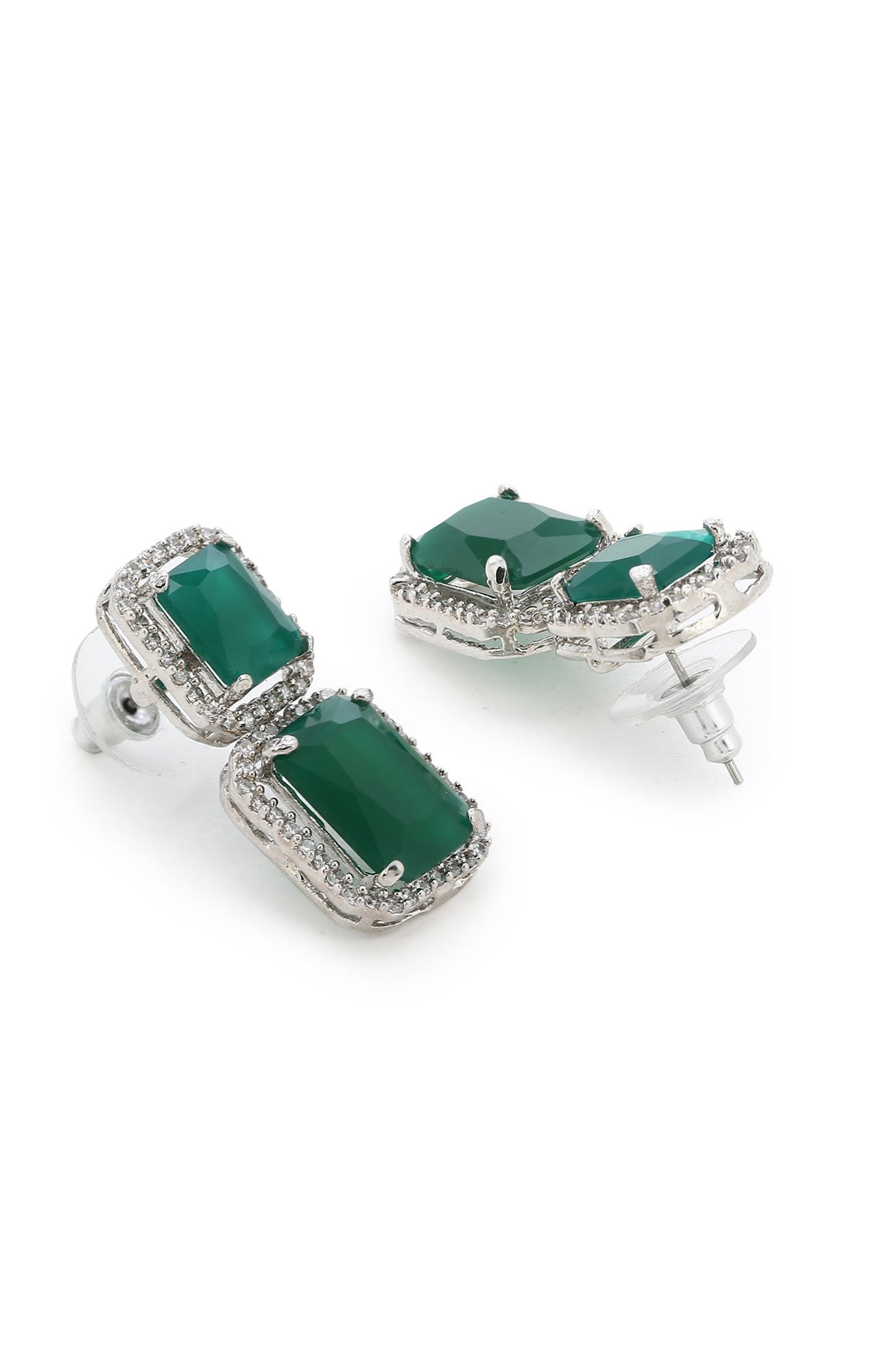 Estele Rhodium Plated CZ Radiant Designer Drop Earrings with Emerald Crystals for Women