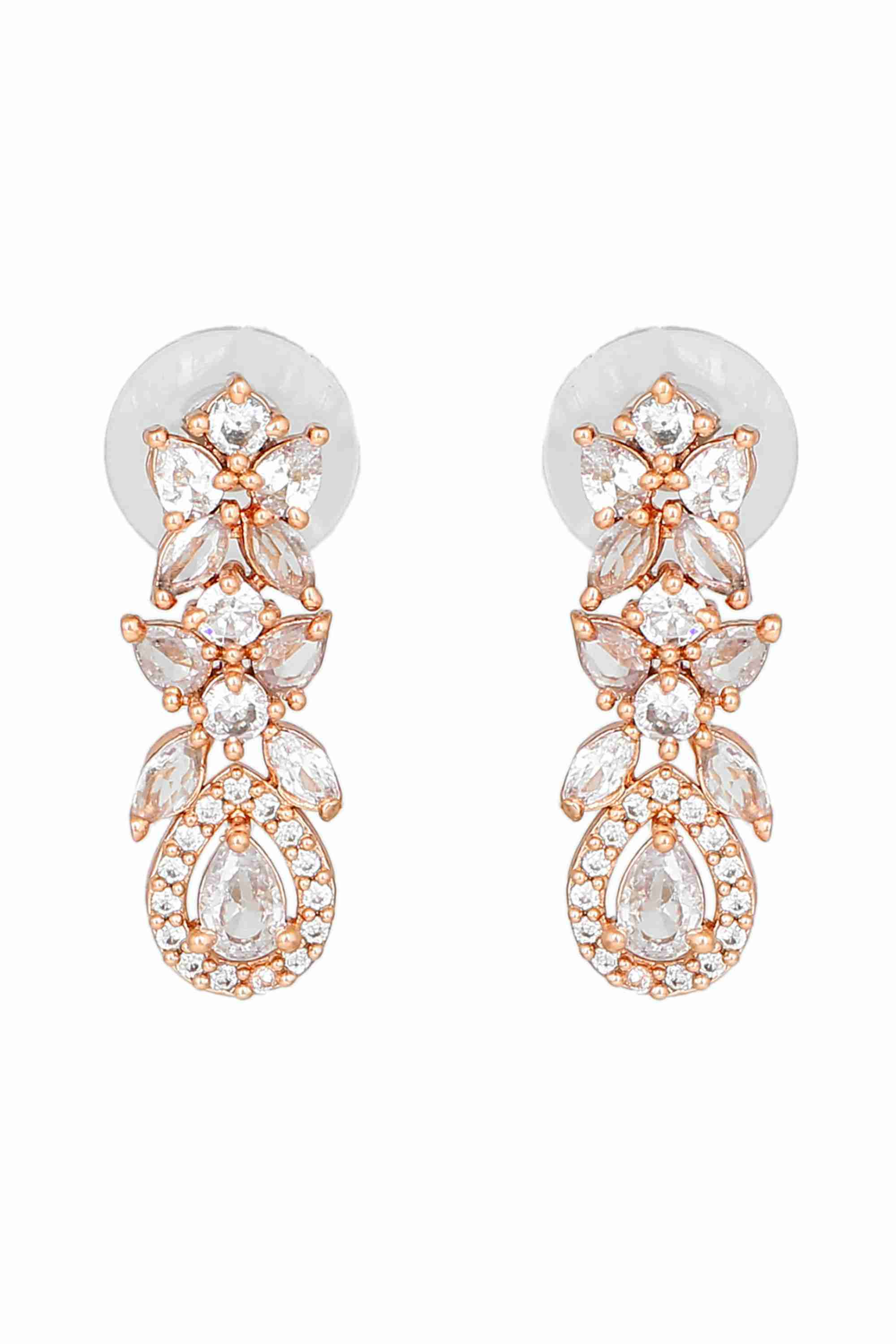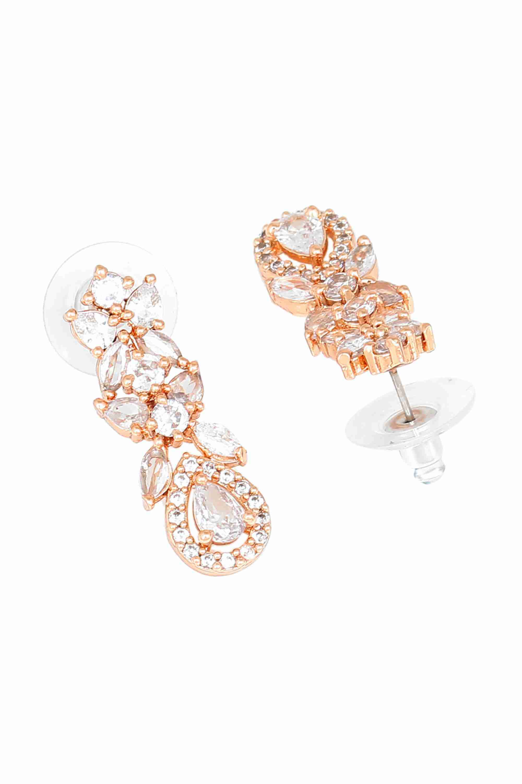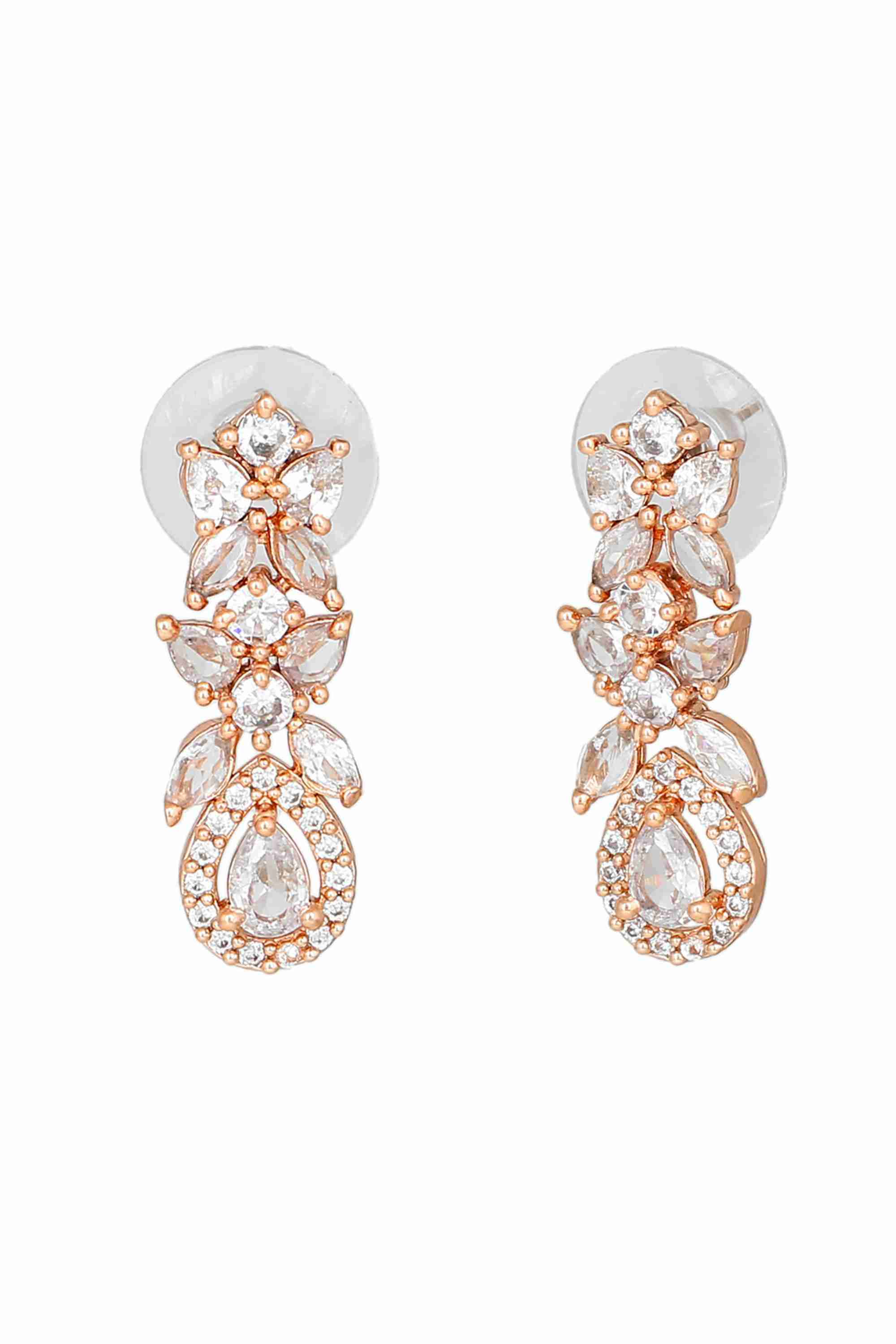 Add glamour to your look with these Rose gold-plated sparkling earrings with cubic zirconia stones. Team it with traditional or western for the next party to look beautiful.