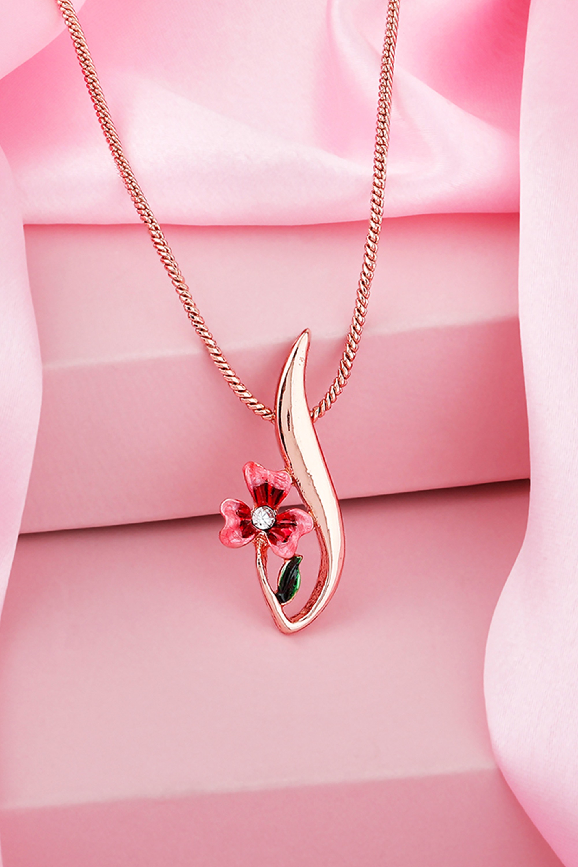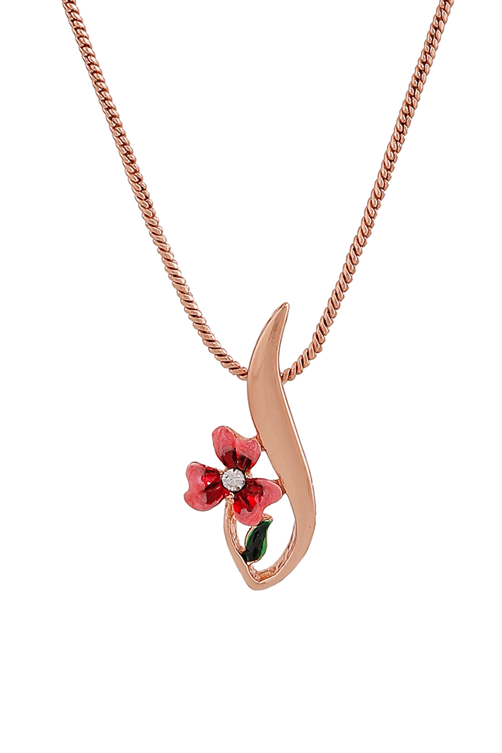 This sparkling flower designer pendant will be perfect for your everyday looks. This pendant features a beautiful minimal design and looks stunning. Team with a classy casual dress, a pair of matching bellies, and earrings to complete the style look.