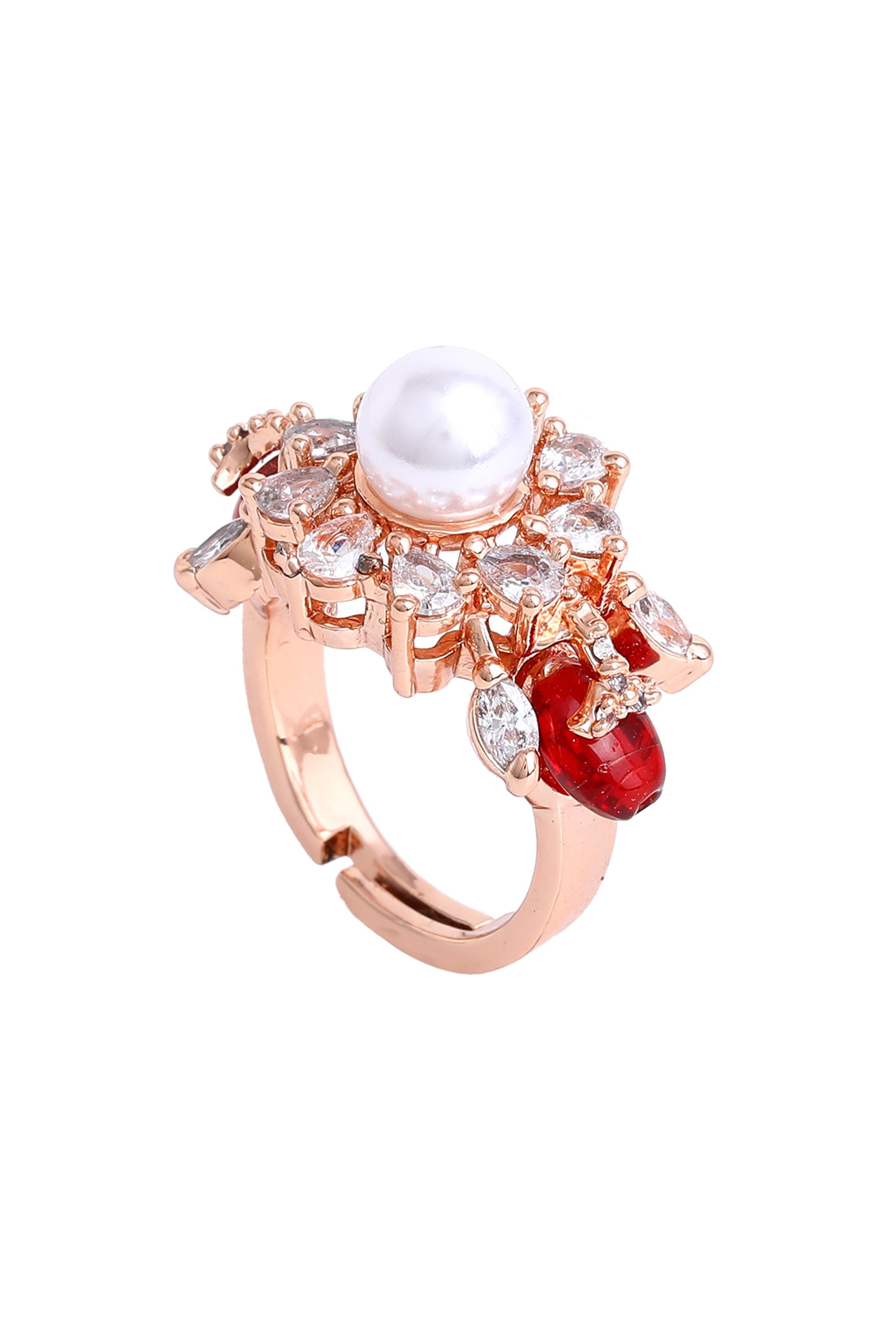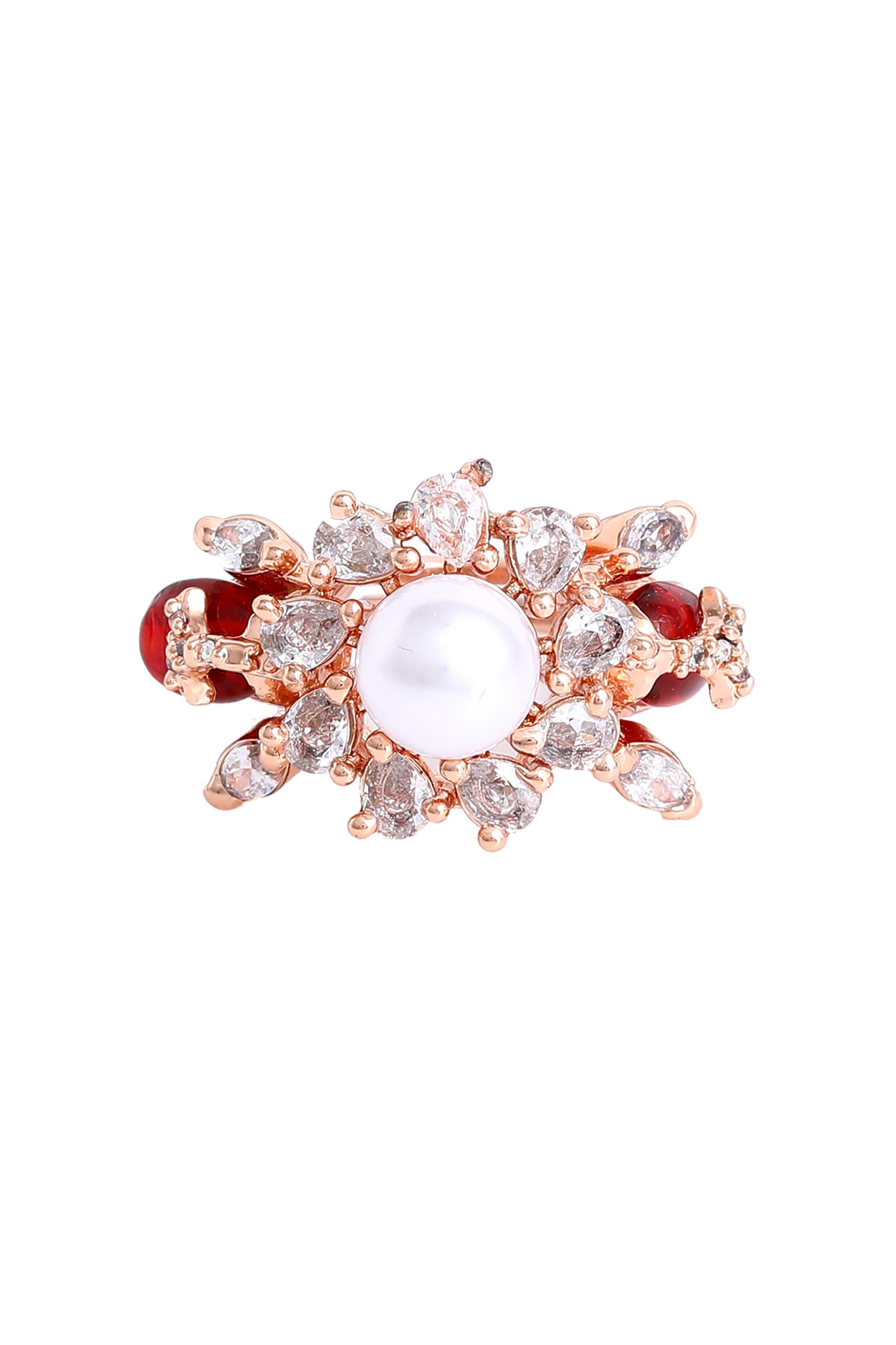 This stunning finger ring features a dazzling arrangement of cubic zirconia (CZ) stones, beautifully complemented by a lustrous pearl and delicate bead accents. The intricate design adds a touch of sophistication, making it perfect for both everyday wear and special occasions. Crafted from high-quality materials, this ring is a timeless piece that enhances any jewelry collection. Treat yourself or a loved one to this exquisite accessory that captures the essence of elegance and charm.