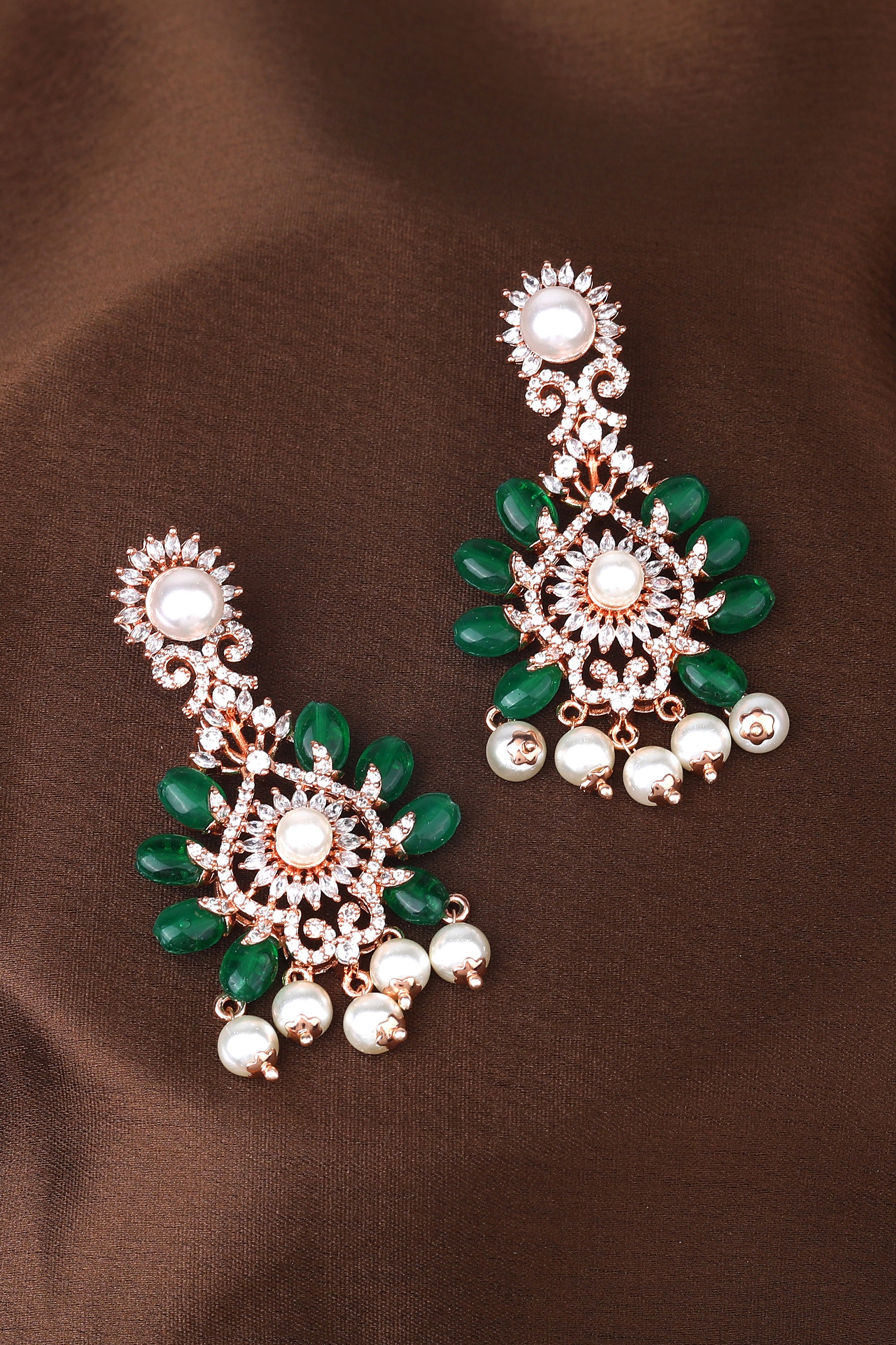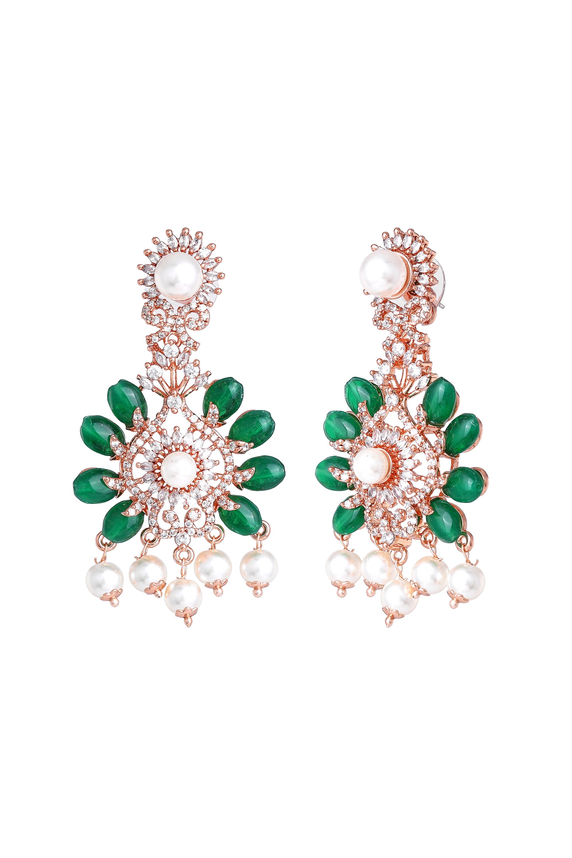 Estele Rosegold Plated Luxurious Green Beads Adorned Dangler Earrings for Women|Vintage-Inspired Jewelry for a Classic Touch