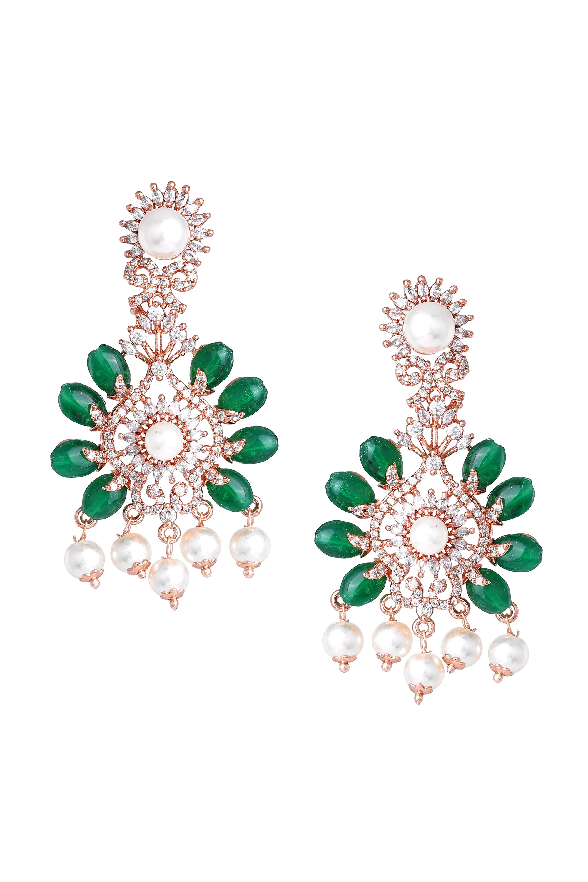 Home/Dangle & Drop Earrings/Estele/estele rosegold plated luxurious green beads adorned dangler earrings for women|vintage-inspired jewelry for a classic touch