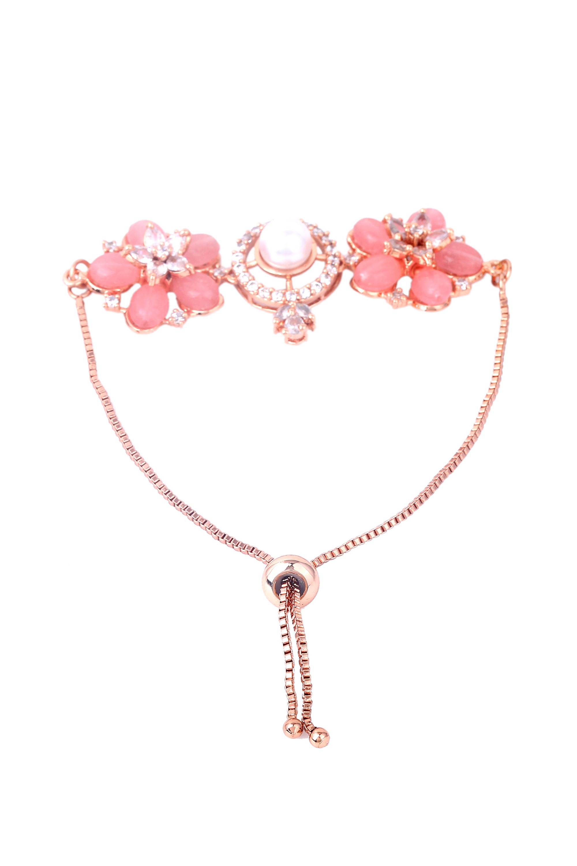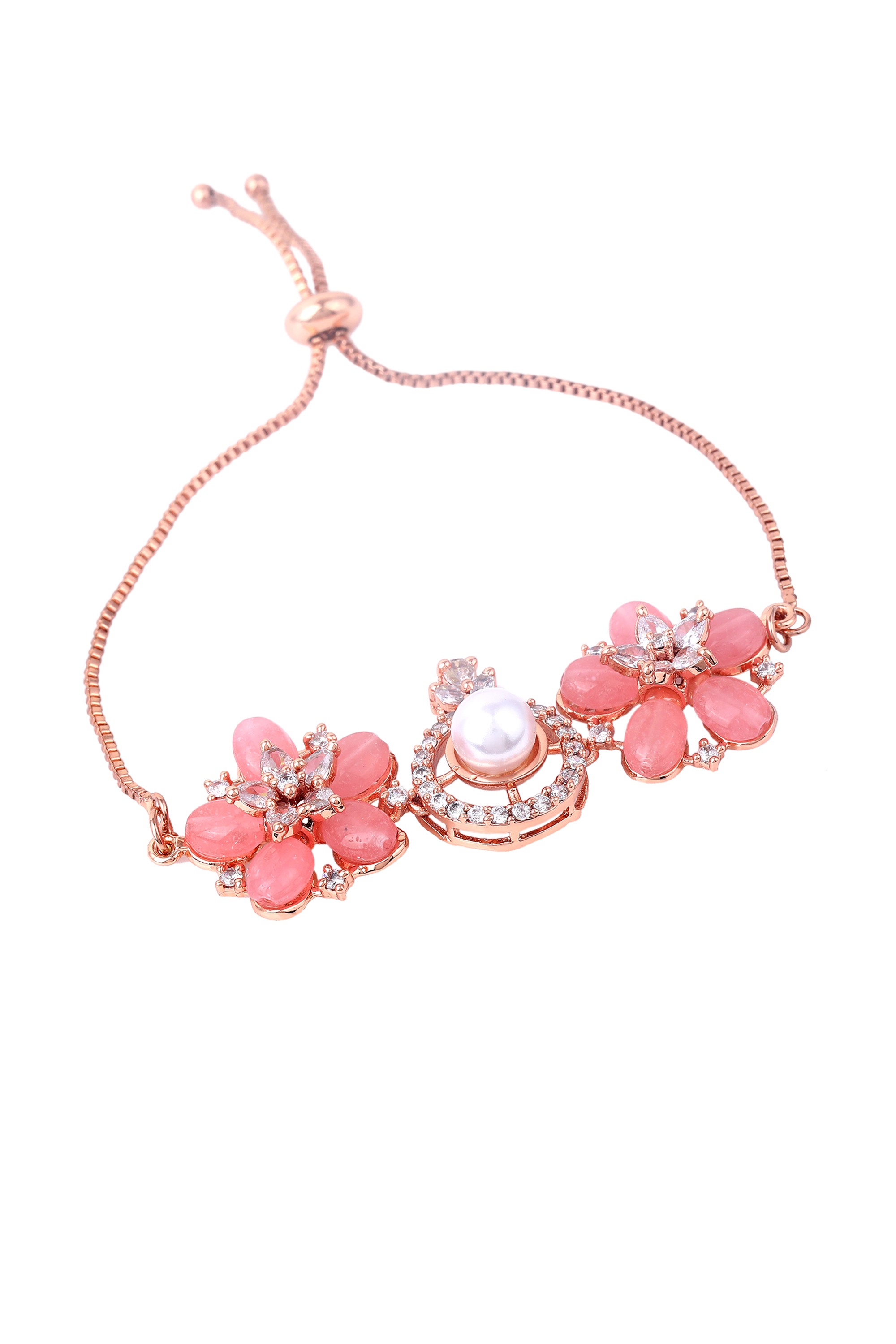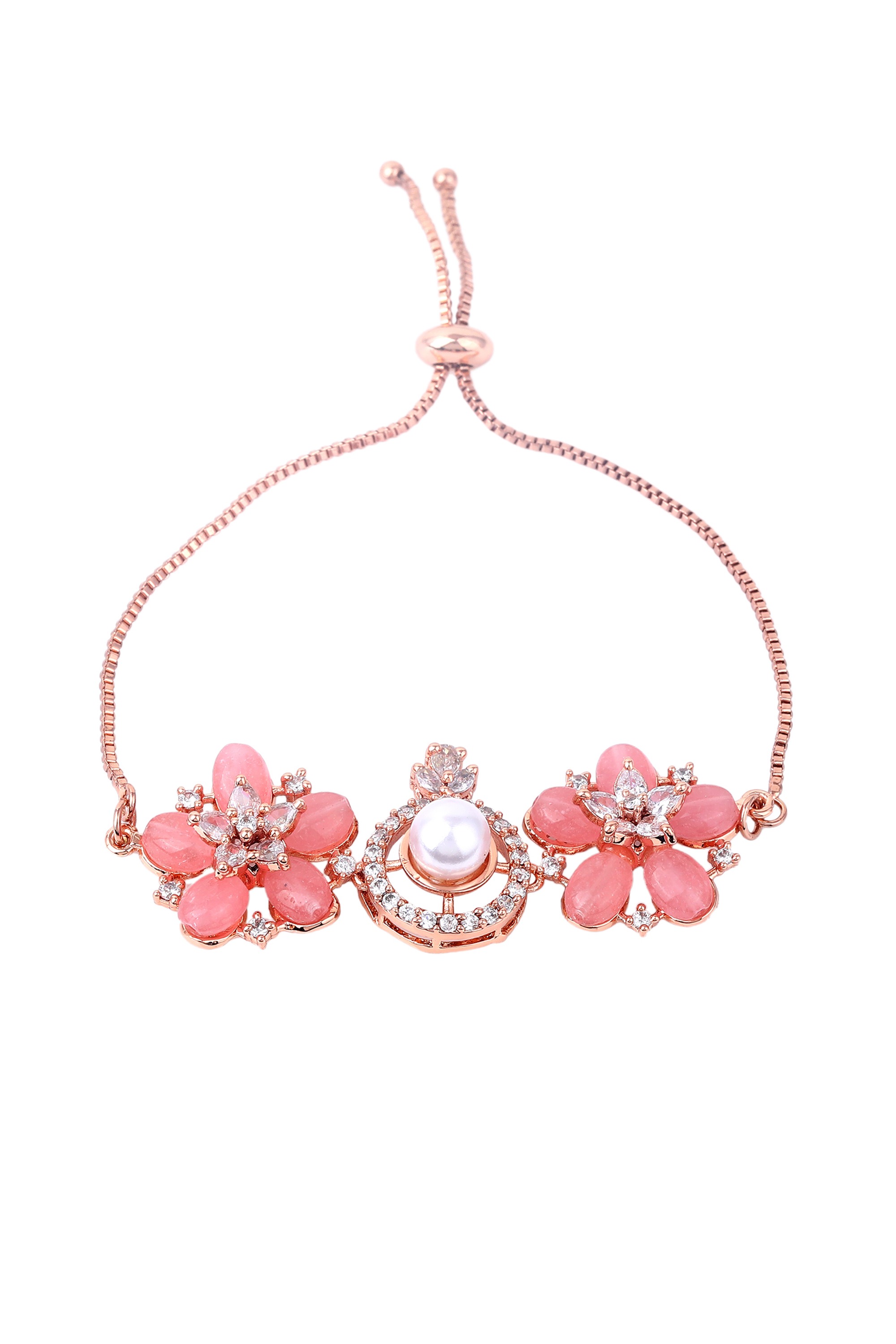 Estele Rosegold Plated Modern Minimlistic Floral Beaded Adjustable Varya Bracelet with Mint Pink Beads for Women|A Stylish Accessory for Modern Women
