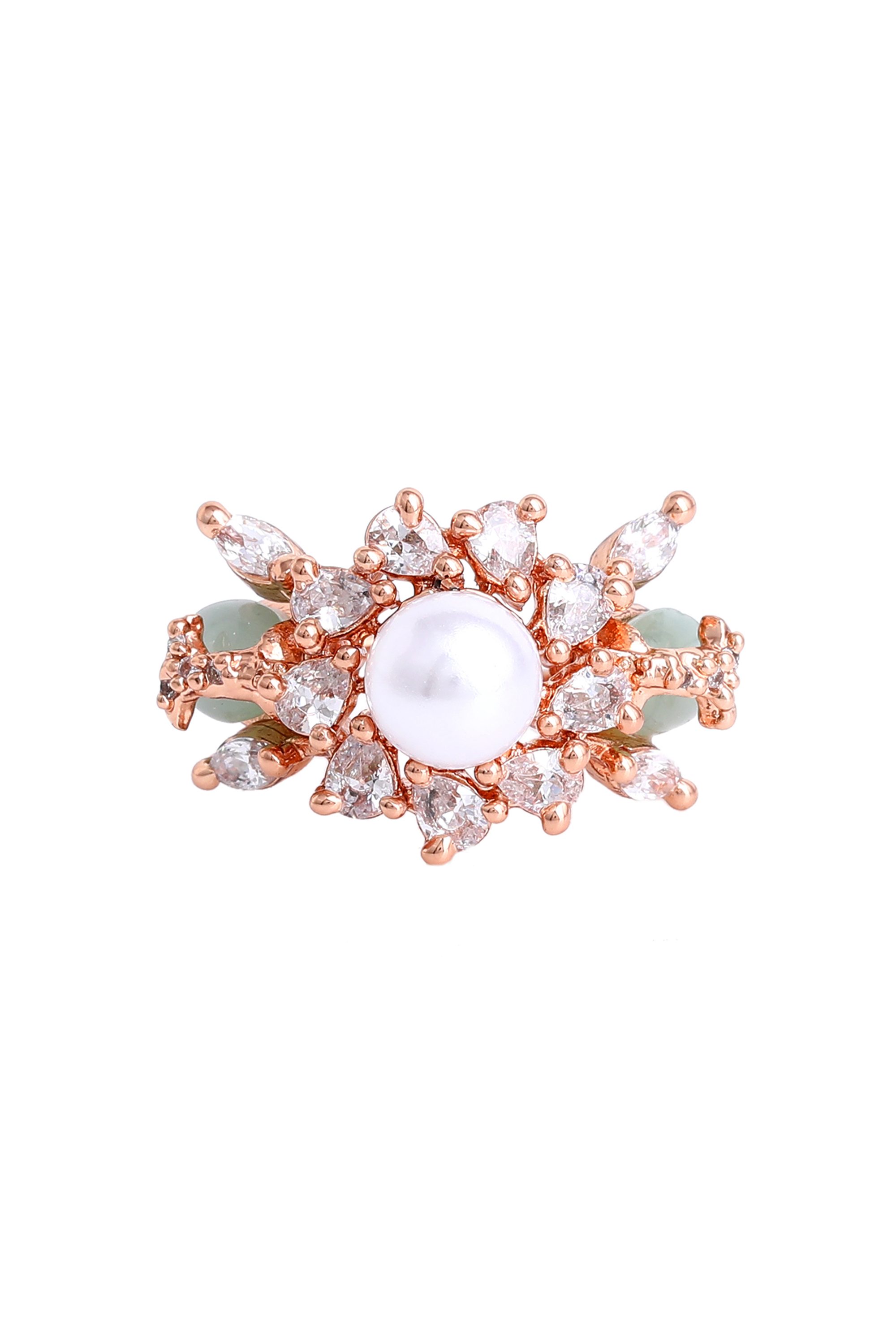 This stunning finger ring features a dazzling arrangement of cubic zirconia (CZ) stones, beautifully complemented by a lustrous pearl and delicate bead accents. The intricate design adds a touch of sophistication, making it perfect for both everyday wear and special occasions. Crafted from high-quality materials, this ring is a timeless piece that enhances any jewelry collection. Treat yourself or a loved one to this exquisite accessory that captures the essence of elegance and charm.