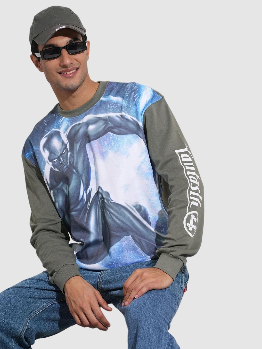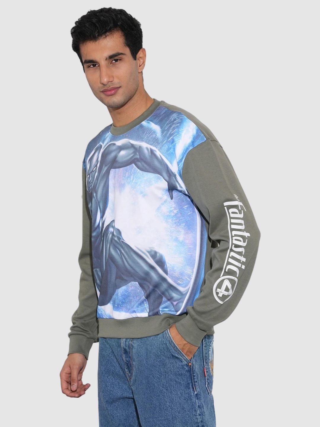 Home/Sweatshirts/Being Human/fantastic four silver surfer printed drop-shoulder sweatshirt by being human