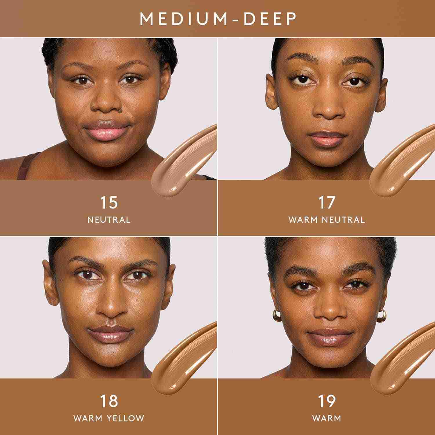 Say goodbye to shine with the FENTY BEAUTY Eaze Drop Blurring Skin Tint - 17 (32 ml). This lightweight, blurring skin tint glides on effortlessly to even out skin tone with a natural, barely-there finish. Infused with a hydrating complex, the FENTY BEAUTY skin tint leaves your skin looking fresh, soft, and naturally radiant. Also, this buildable tint allows you to customize your coverage for any look, from sheer to medium.