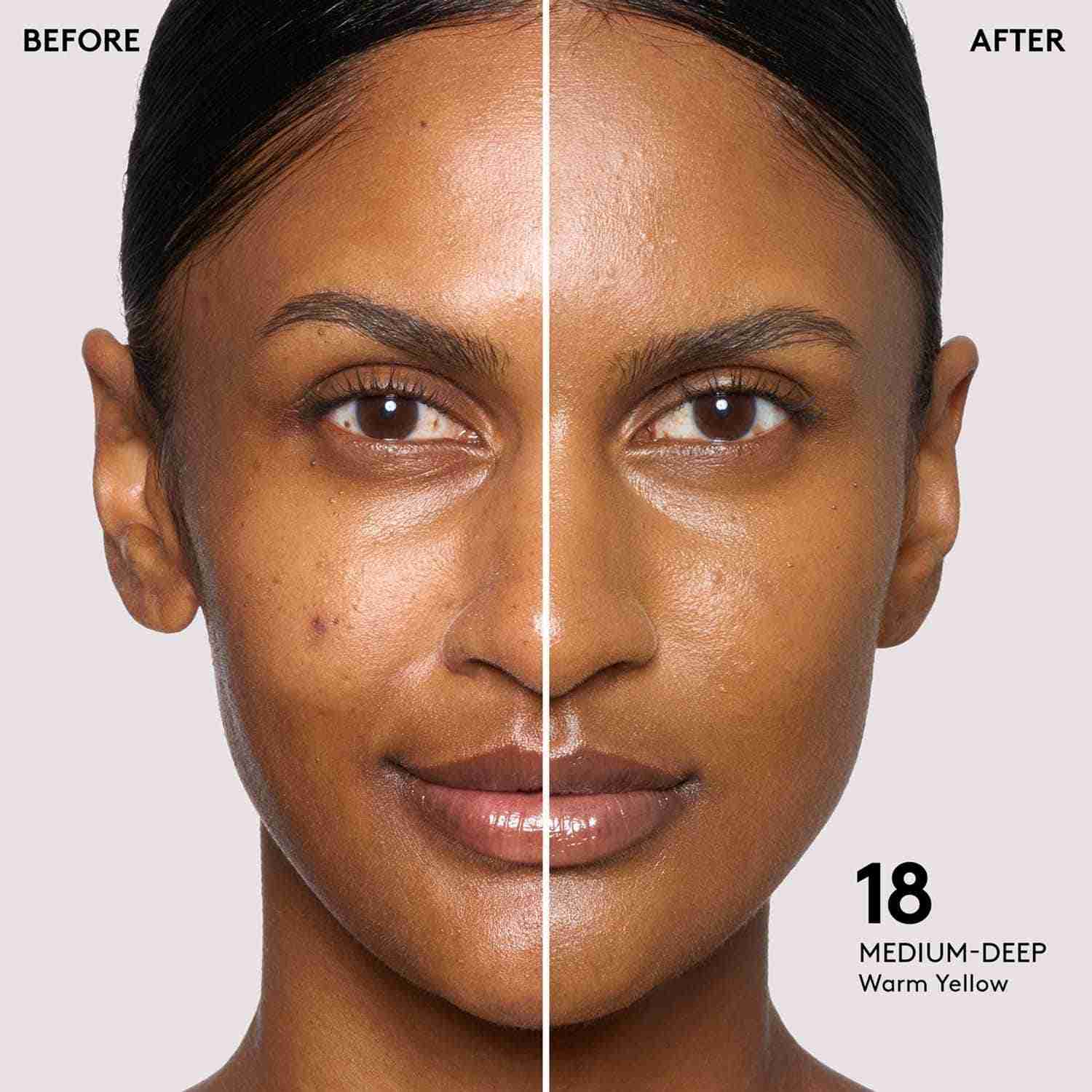 Look fresh, not filtered with the FENTY BEAUTY Eaze Drop Blurring Skin Tint - 18 (32 ml). This lightweight, blurring skin tint glides on effortlessly to even out skin tone with a natural, barely-there finish. Infused with a hydrating complex, the FENTY BEAUTY skin tint leaves your skin looking fresh, soft, and naturally radiant. Also, this buildable tint allows you to customize your coverage for any look, from sheer to medium.