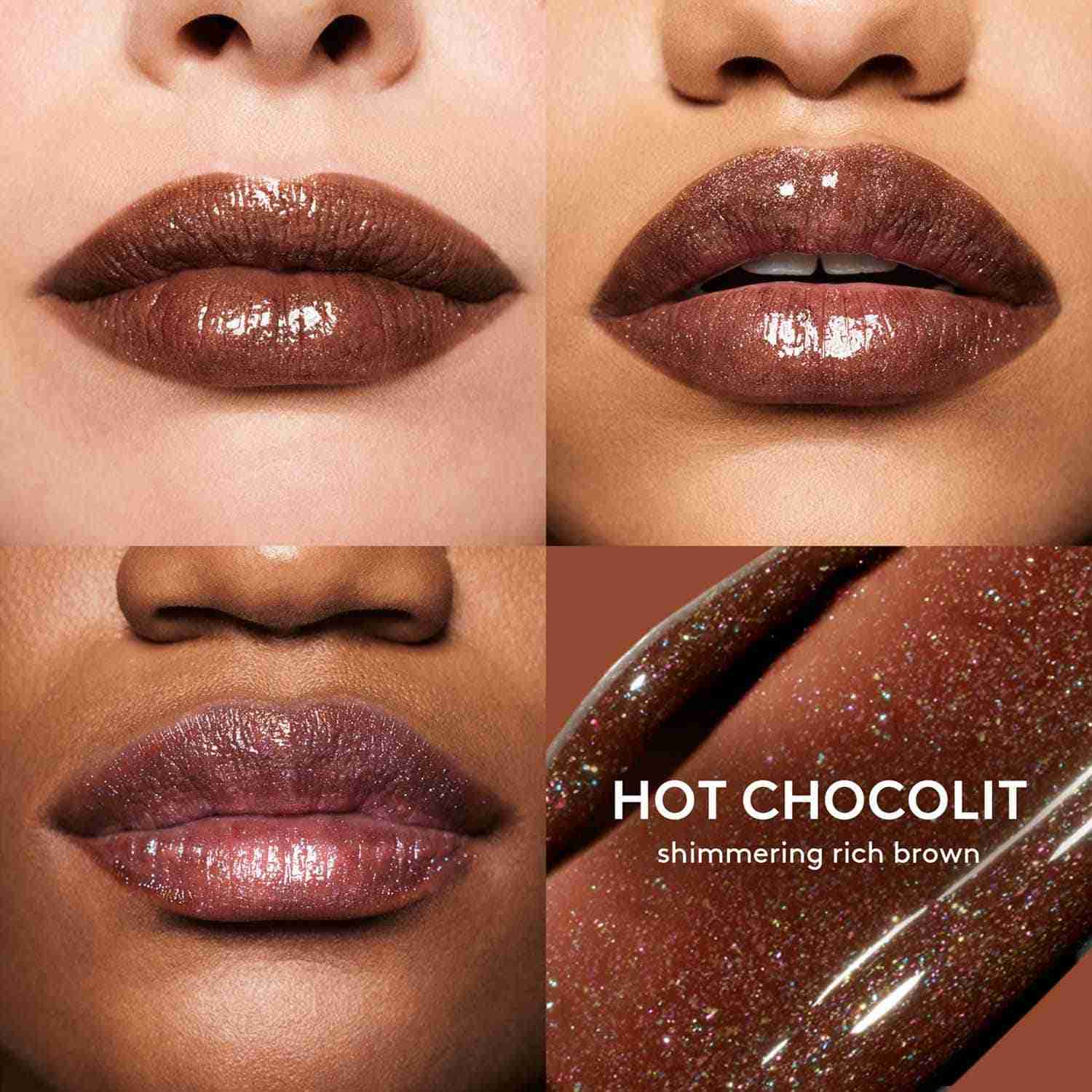 Shine bright with pigment-rich color and cushiony comfort with the FENTY BEAUTY Gloss Bomb Stix Shimmer - Shimmering Hot Chocolit (3.6 g). This moisture-rich gloss stick glides on smoothly, delivering medium pigment with a luscious, glossy finish. Infused with vitamin E, shea butter, and squalane, the FENTY BEAUTY lip color stick keeps lips soft, nourished, and visibly plump. Also, this non-sticky lipstick hydrates for up to 8 hours, locking in comfort and color all day.