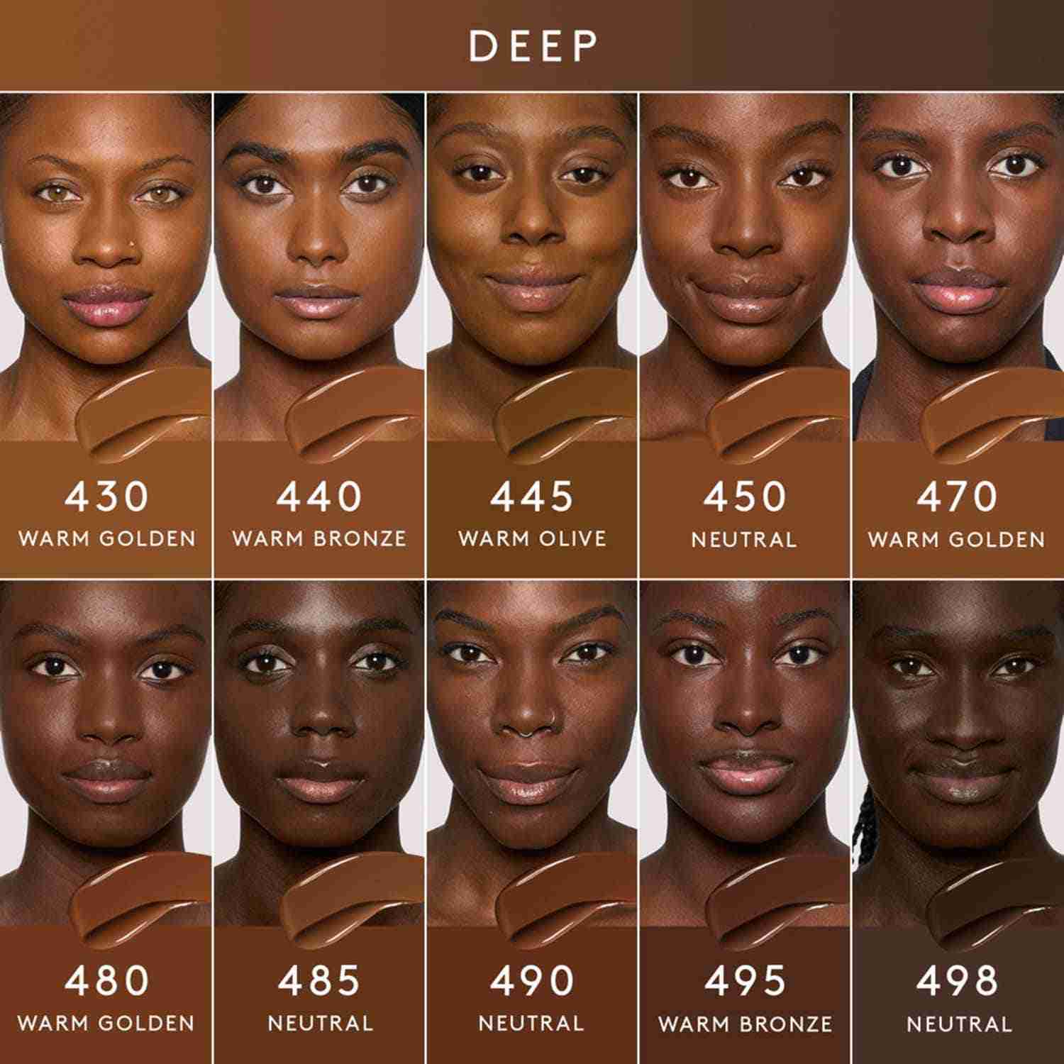 100, 110, 120, 125, 130, 140, 160, 170, 175, 190, 200, 210, 220, 225, 230, 235, 240, 250, 260, 265, 280, 290, 295: Aqua/Water/Eau, Dimethicone, Butylene Glycol Dicaprylate/Dicaprate, Diphenylsiloxy Phenyl Trimethicone, Glycerin, Synthetic Fluorphlogopite, Cetyl Peg/Ppg-10/1 Dimethicone, Trisiloxane, Butylene Glycol, 1,2-Hexanediol, Trimethylsiloxysilicate, Disteardimonium Hectorite, Peg-10 Dimethicone, Polyphenylsilsesquioxane, Magnesium Sulfate, Dimethicone Crosspolymer, Lauroyl Lysine, Triethoxycaprylylsilane, Aluminum Hydroxide, Polyhydroxystearic Acid, Ethylhexyl Palmitate, Isopropyl Myristate, Isostearic Acid, Lecithin, Terminalia Ferdinandiana Fruit Extract, Trisodium Ethylenediamine Disuccinate, Polyglyceryl-3 Polyricinoleate, Cyperus Rotundus Root Extract, Titanium Dioxide (Ci 77891), Iron Oxides (Ci 77491, Ci 77492, Ci 77499).150: Aqua/Water/Eau, Dimethicone, Butylene Glycol Dicaprylate/Dicaprate, Synthetic Fluorphlogopite, Diphenylsiloxy Phenyl Trimethicone, Glycerin, Cetyl Peg/Ppg-10/1 Dimethicone, Trisiloxane, Butylene Glycol, 1,2-Hexanediol, Trimethylsiloxysilicate, Disteardimonium Hectorite, Peg-10 Dimethicone, Polyphenylsilsesquioxane, Magnesium Sulfate, Dimethicone Crosspolymer, Lauroyl Lysine, Triethoxycaprylylsilane, Aluminum Hydroxide, Polyhydroxystearic Acid, Ethylhexyl Palmitate, Isopropyl Myristate, Isostearic Acid, Lecithin, Terminalia Ferdinandiana Fruit Extract, Trisodium Ethylenediamine Disuccinate, Polyglyceryl-3 Polyricinoleate, Cyperus Rotundus Root Extract, Titanium Dioxide (Ci 77891), Iron Oxides (Ci 77491, Ci 77492, Ci 77499).185, 300: Aqua/Water/Eau, Dimethicone, Butylene Glycol Dicaprylate/Dicaprate, Diphenylsiloxy Phenyl Trimethicone, Synthetic Fluorphlogopite, Glycerin, Cetyl Peg/Ppg-10/1 Dimethicone, Trisiloxane, Butylene Glycol, 1,2-Hexanediol, Trimethylsiloxysilicate, Disteardimonium Hectorite, Peg-10 Dimethicone, Polyphenylsilsesquioxane, Magnesium Sulfate, Dimethicone Crosspolymer, Lauroyl Lysine, Triethoxycaprylylsilane, Aluminum Hydroxide, Polyhydroxystearic Acid, Ethylhexyl Palmitate, Isopropyl Myristate, Isostearic Acid, Lecithin, Terminalia Ferdinandiana Fruit Extract, Trisodium Ethylenediamine Disuccinate, Polyglyceryl-3 Polyricinoleate, Cyperus Rotundus Root Extract, Titanium Dioxide (Ci 77891), Iron Oxides (Ci 77491, Ci 77492, Ci 77499).310, 330, 335, 345, 350, 360, 370, 385, 390, 400, 410: Aqua/Water/Eau, Dimethicone, Butylene Glycol Dicaprylate/Dicaprate, Diphenylsiloxy Phenyl Trimethicone, Glycerin, Synthetic Fluorphlogopite, Cetyl Peg/Ppg-10/1 Dimethicone, Trisiloxane, Butylene Glycol, 1,2-Hexanediol, Trimethylsiloxysilicate, Disteardimonium Hectorite, Peg-10 Dimethicone, Polyphenylsilsesquioxane, Magnesium Sulfate, Dimethicone Crosspolymer, Caprylyl Methicone, Lauroyl Lysine, Triethoxycaprylylsilane, Aluminum Hydroxide, Polyhydroxystearic Acid, Ethylhexyl Palmitate, Isopropyl Myristate, Isostearic Acid, Lecithin, Terminalia Ferdinandiana Fruit Extract, Trisodium Ethylenediamine Disuccinate, Polyglyceryl-3 Polyricinoleate, Cyperus Rotundus Root Extract, Titanium Dioxide (Ci 77891), Iron Oxides (Ci 77491, Ci 77492, Ci 77499).315: Aqua/Water/Eau, Dimethicone, Butylene Glycol Dicaprylate/Dicaprate, Diphenylsiloxy Phenyl Trimethicone, Glycerin, Cetyl Peg/Ppg-10/1 Dimethicone, Synthetic Fluorphlogopite, Trisiloxane, Butylene Glycol, 1,2-Hexanediol, Trimethylsiloxysilicate, Disteardimonium Hectorite, Peg-10 Dimethicone, Polyphenylsilsesquioxane, Magnesium Sulfate, Dimethicone Crosspolymer, Caprylyl Methicone, Lauroyl Lysine, Triethoxycaprylylsilane, Aluminum Hydroxide, Polyhydroxystearic Acid, Ethylhexyl Palmitate, Isopropyl Myristate, Isostearic Acid, Lecithin, Terminalia Ferdinandiana Fruit Extract, Trisodium Ethylenediamine Disuccinate, Polyglyceryl-3 Polyricinoleate, Cyperus Rotundus Root Extract, Titanium Dioxide (Ci 77891), Iron Oxides (Ci 77491, Ci 77492, Ci 77499).420: Aqua/Water/Eau, Dimethicone, Butylene Glycol Dicaprylate/Dicaprate, Diphenylsiloxy Phenyl Trimethicone, Glycerin, Cetyl Peg/Ppg-10/1 Dimethicone, Trisiloxane, Butylene Glycol, 1,2-Hexanediol, Trimethylsiloxysilicate, Caprylyl Methicone, Disteardimonium Hectorite, Peg-10 Dimethicone, Synthetic Fluorphlogopite, Polyphenylsilsesquioxane, Magnesium Sulfate, Dimethicone Crosspolymer, Lauroyl Lysine, Triethoxycaprylylsilane, Polyhydroxystearic Acid, Ethylhexyl Palmitate, Isopropyl Myristate, Isostearic Acid, Lecithin, Terminalia Ferdinandiana Fruit Extract, Aluminum Hydroxide, Trisodium Ethylenediamine Disuccinate, Polyglyceryl-3 Polyricinoleate, Cyperus Rotundus Root Extract, Titanium Dioxide (Ci 77891), Iron Oxides (Ci 77491, Ci 77492, Ci 77499).430: Aqua/Water/Eau, Dimethicone, Butylene Glycol Dicaprylate/Dicaprate, Diphenylsiloxy Phenyl Trimethicone, Glycerin, Cetyl Peg/Ppg-10/1 Dimethicone, Trisiloxane, Butylene Glycol, 1,2-Hexanediol, Synthetic Fluorphlogopite, Trimethylsiloxysilicate, Caprylyl Methicone, Disteardimonium Hectorite, Peg-10 Dimethicone, Polyphenylsilsesquioxane, Magnesium Sulfate, Dimethicone Crosspolymer, Lauroyl Lysine, Triethoxycaprylylsilane, Polyhydroxystearic Acid, Ethylhexyl Palmitate, Isopropyl Myristate, Isostearic Acid, Lecithin, Terminalia Ferdinandiana Fruit Extract, Trisodium Ethylenediamine Disuccinate, Polyglyceryl-3 Polyricinoleate, Cyperus Rotundus Root Extract, Iron Oxides (Ci 77491, Ci 77492, Ci 77499).425, 440, 450, 485, 490, 495: Aqua/Water/Eau, Dimethicone, Butylene Glycol Dicaprylate/Dicaprate, Diphenylsiloxy Phenyl Trimethicone, Glycerin, Cetyl Peg/Ppg-10/1 Dimethicone, Trisiloxane, Butylene Glycol, Synthetic Fluorphlogopite, 1,2-Hexanediol, Trimethylsiloxysilicate, Caprylyl Methicone, Disteardimonium Hectorite, Peg-10 Dimethicone, Polyphenylsilsesquioxane, Magnesium Sulfate, Dimethicone Crosspolymer, Lauroyl Lysine, Triethoxycaprylylsilane, Polyhydroxystearic Acid, Ethylhexyl Palmitate, Isopropyl Myristate, Isostearic Acid, Lecithin, Terminalia Ferdinandiana Fruit Extract, Trisodium Ethylenediamine Disuccinate, Polyglyceryl-3 Pol