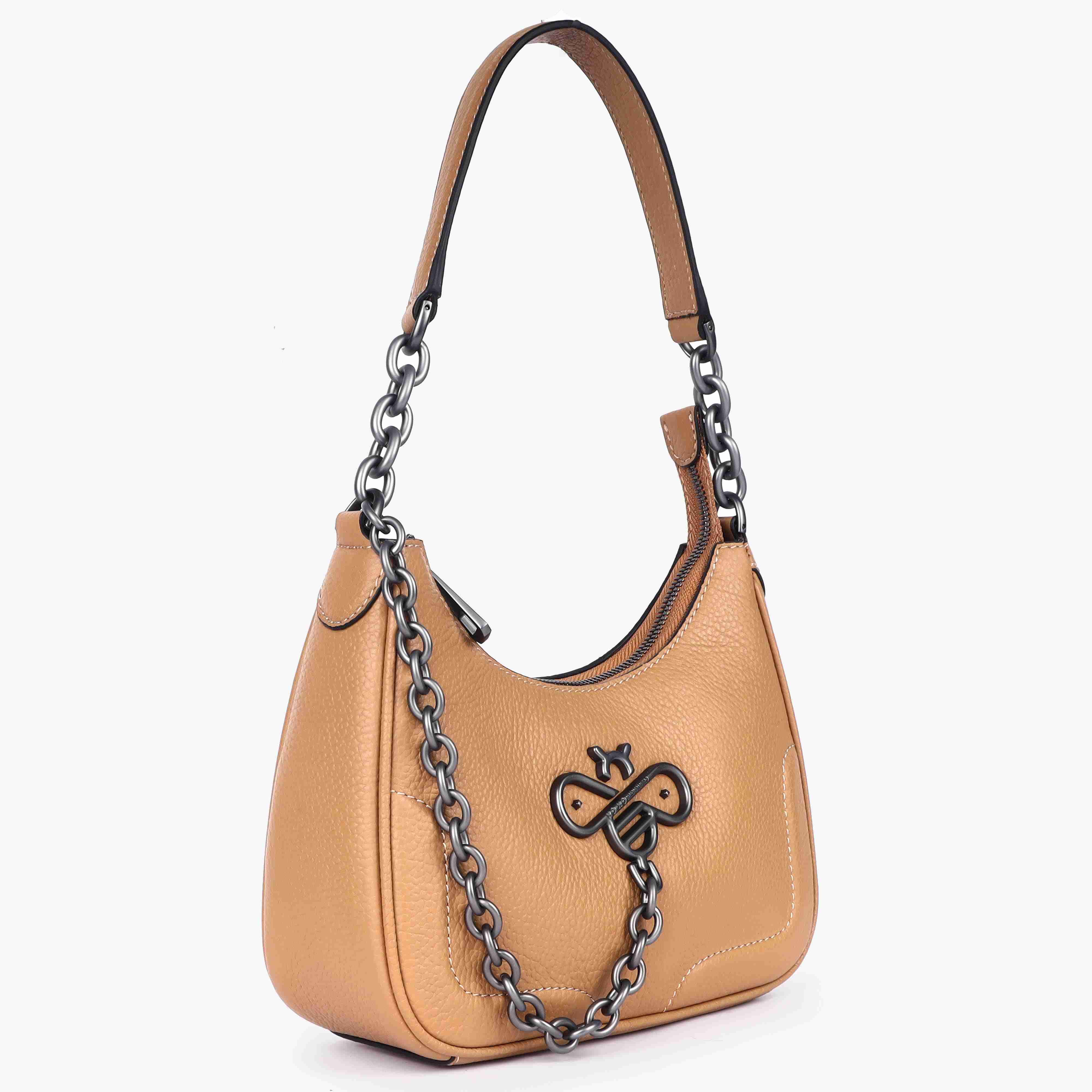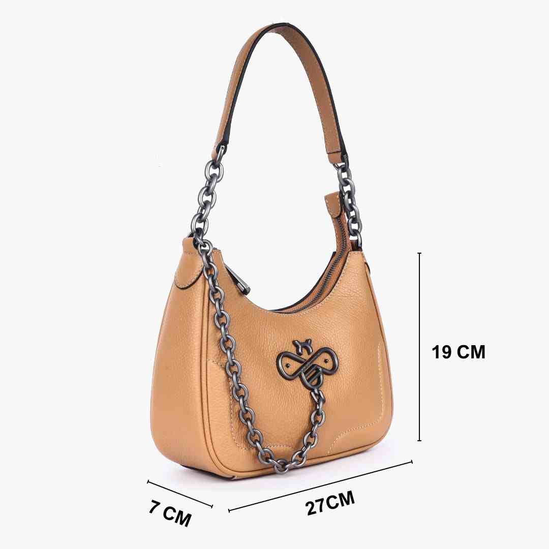 Elevate your style with Firebird by KOXOXO, a luxurious collection of handcrafted leather handbags in exquisite Cow Saten Leather. The striking metal branding with a chain adds glamour and sophistication to each piece, while the enchanting firefly logo mark, inspired by bioluminescence, imparts a refined design aesthetic with intricate detailing and graceful lines.