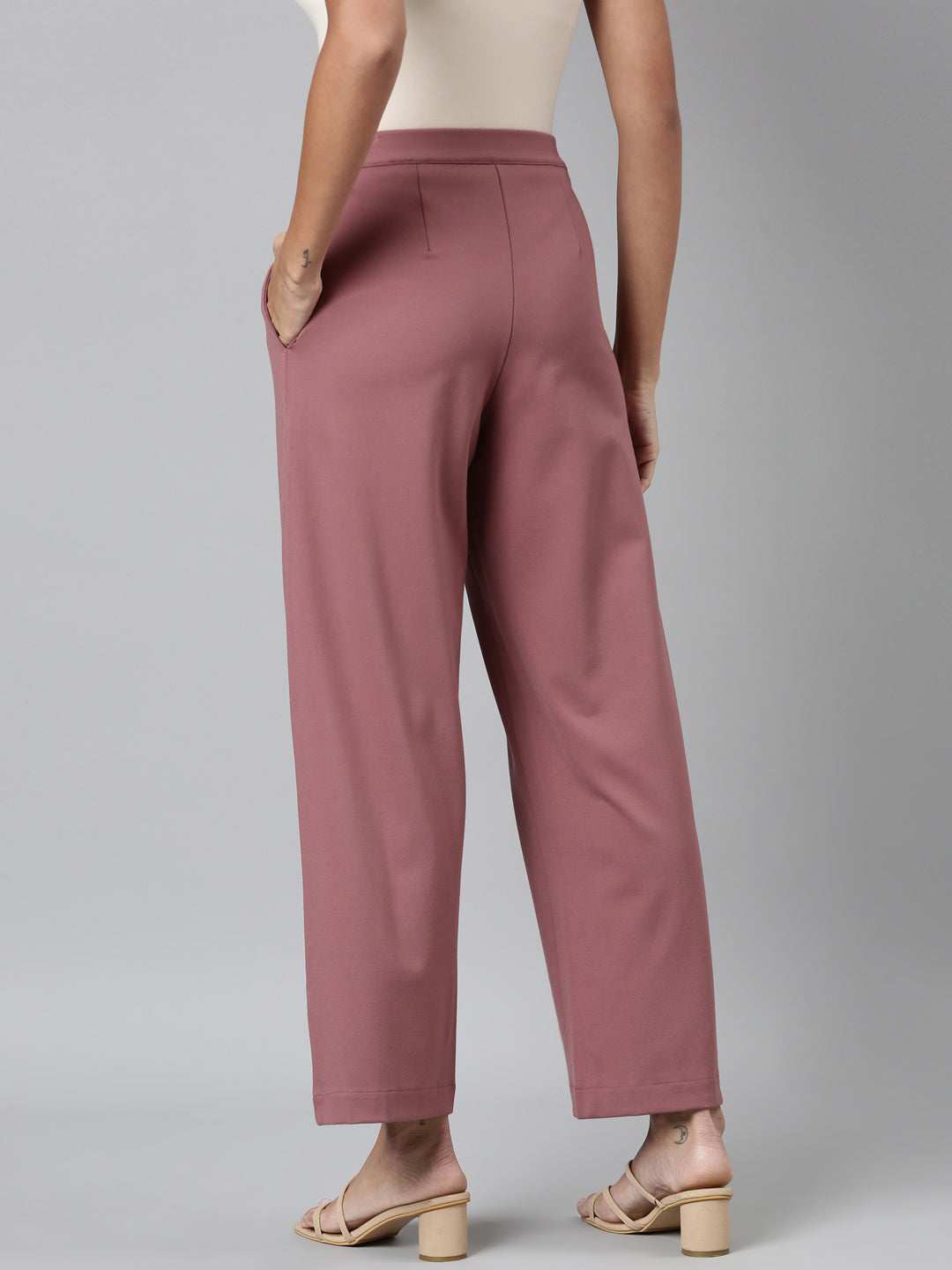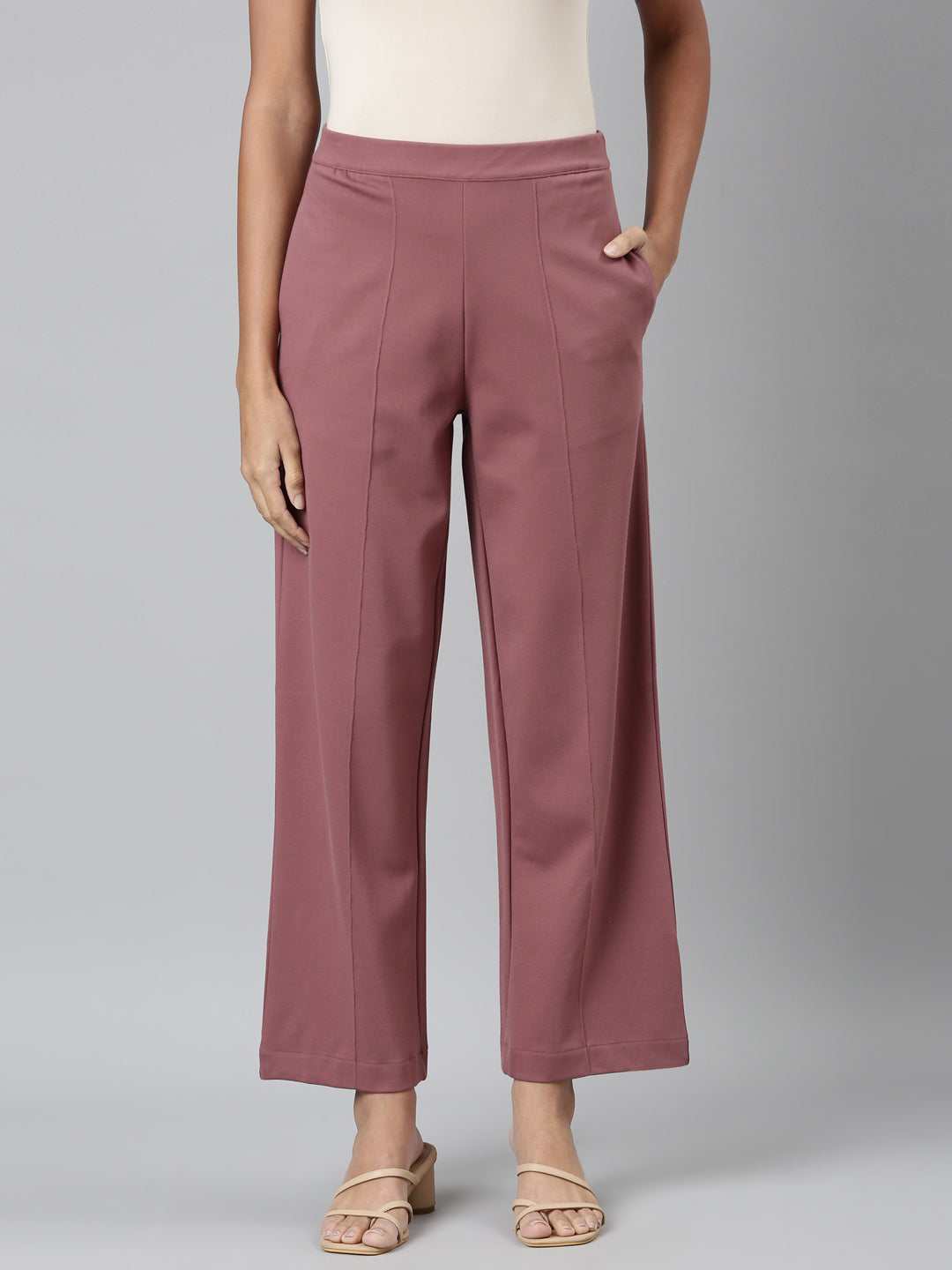 Go Colors Women's Solid Light Brown Ponte Wide Leg Pants
