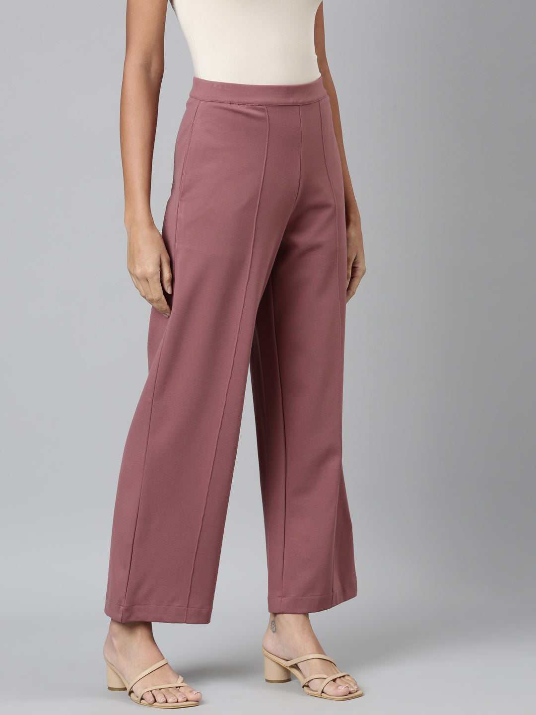 Stay Active And Stylish With Go Colors Women'S Solid Light Brown Ponte Wide Leg Pants Made From Soft 62% Rayon, 32 % Nylon, 6% Spandex Fabric. Features A Relaxed Fit Fit, Full Length Design, And A Elasticated Waistband For Comfort. Ideal For Women With Its Solid Look And High Rise Waist.