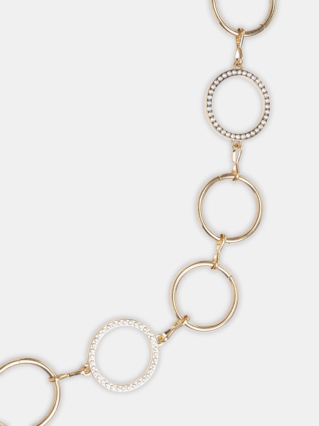 Gold Linked Circle Chain Belt with Rhinestone Embellishments