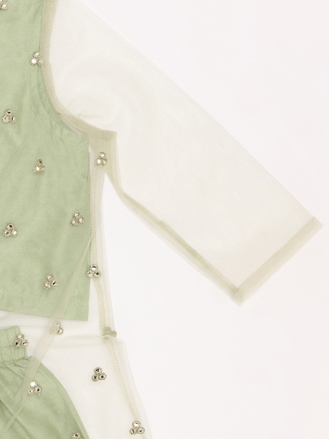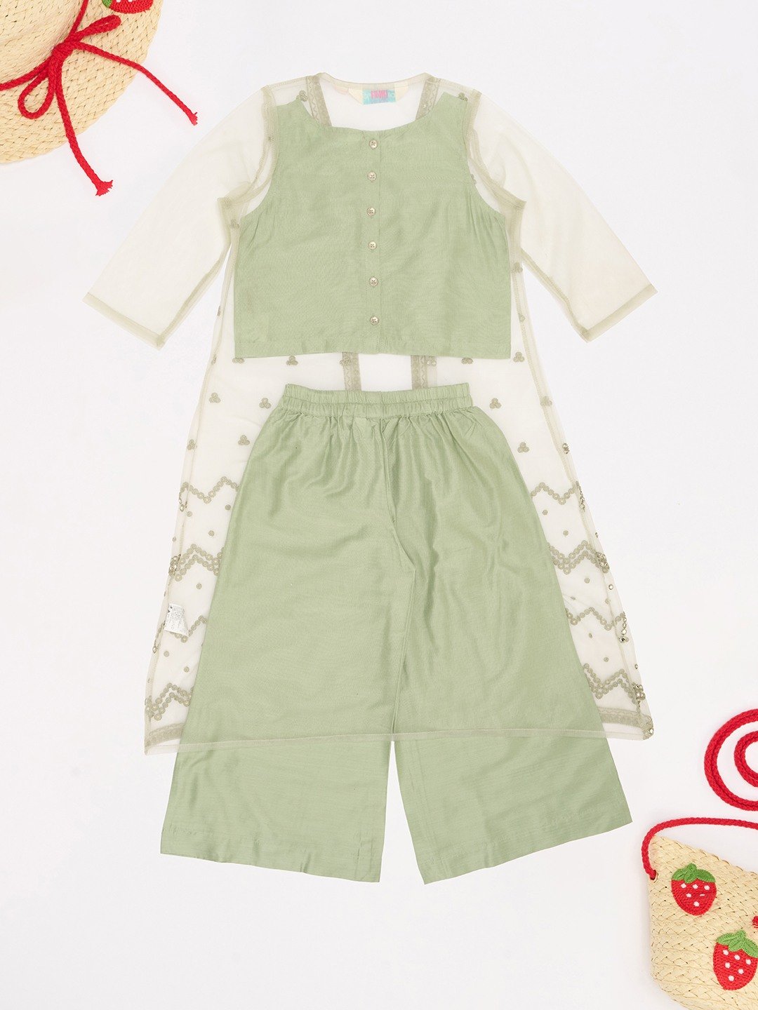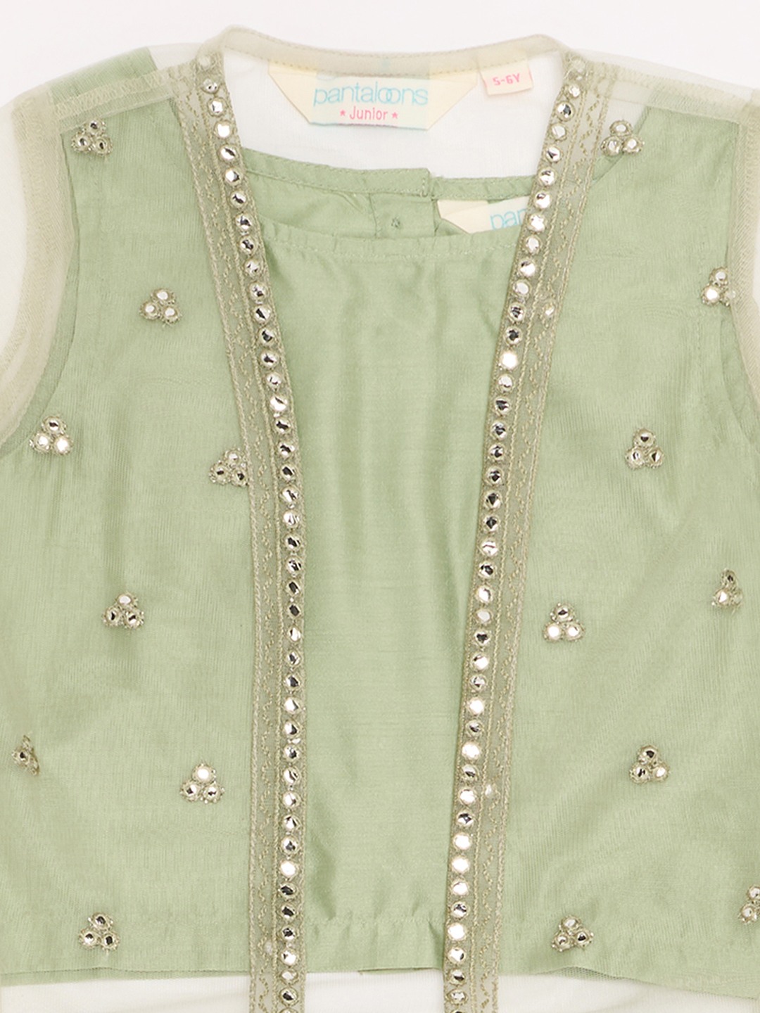 Home/Kurta Sets/Akkriti By Pantaloons/green embroidered nylon round neck girls regular fit co-ord-set