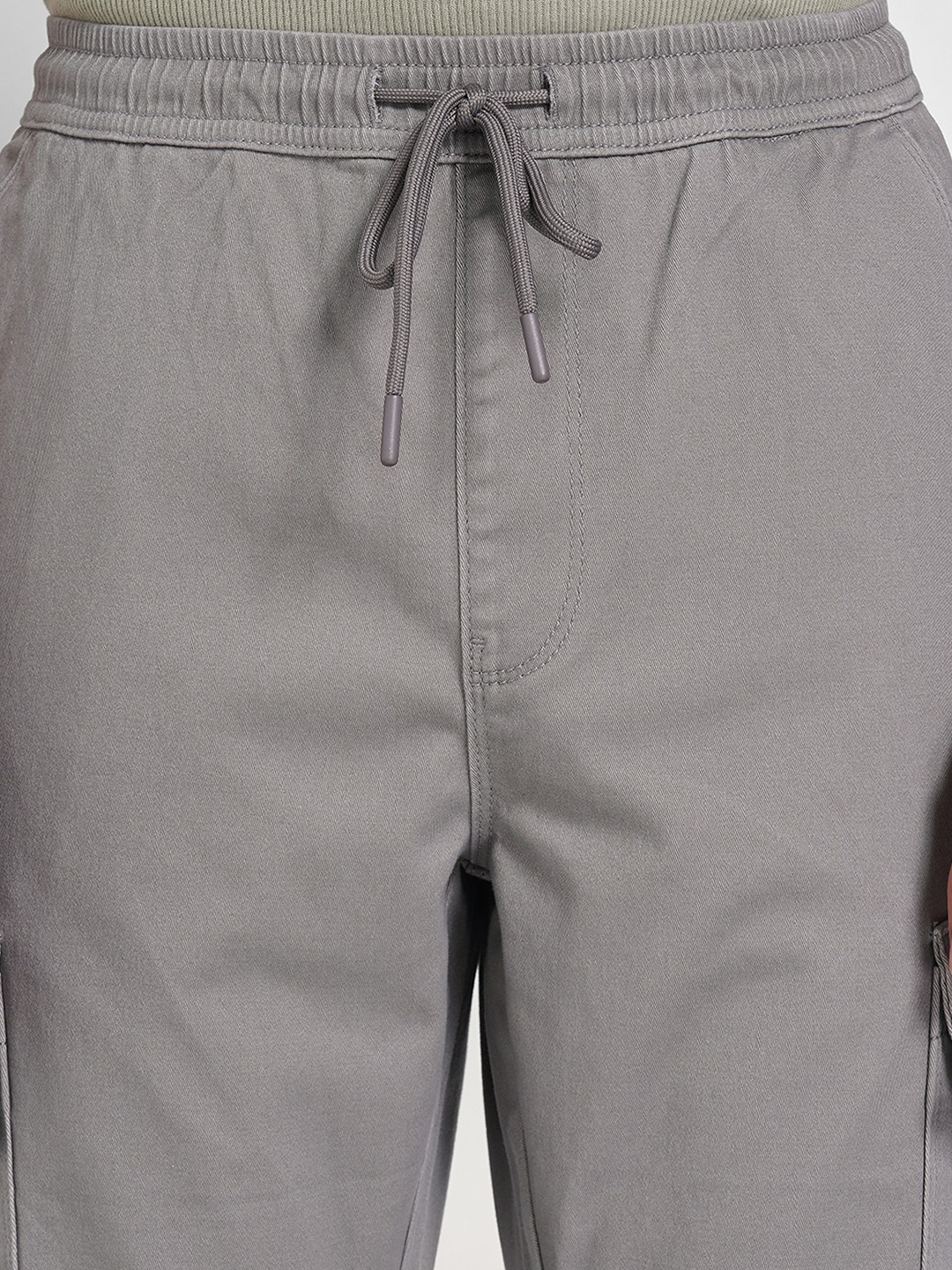 Grey Solid Cargo Drawstring Pants
