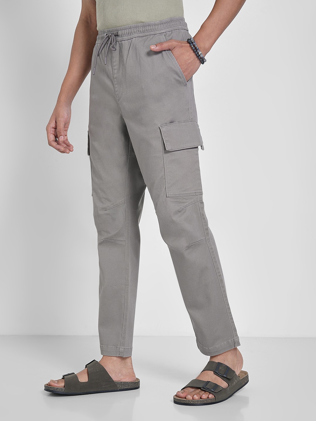Home/Trousers/7 Alt by Pantaloons/grey solid cargo drawstring pants