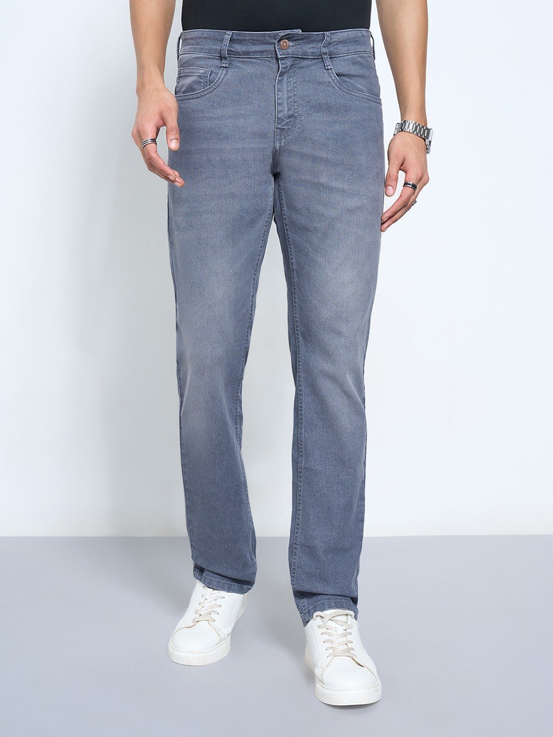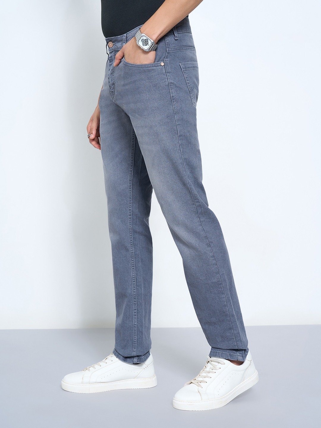 A modern essential defined by its clean silhouette and versatile washed tone. Cut in a slim fit with classic five-pocket styling, button closure, and subtle whiskering for a lived-in appeal. The stretch denim fabric ensures all-day comfort and flexibility.