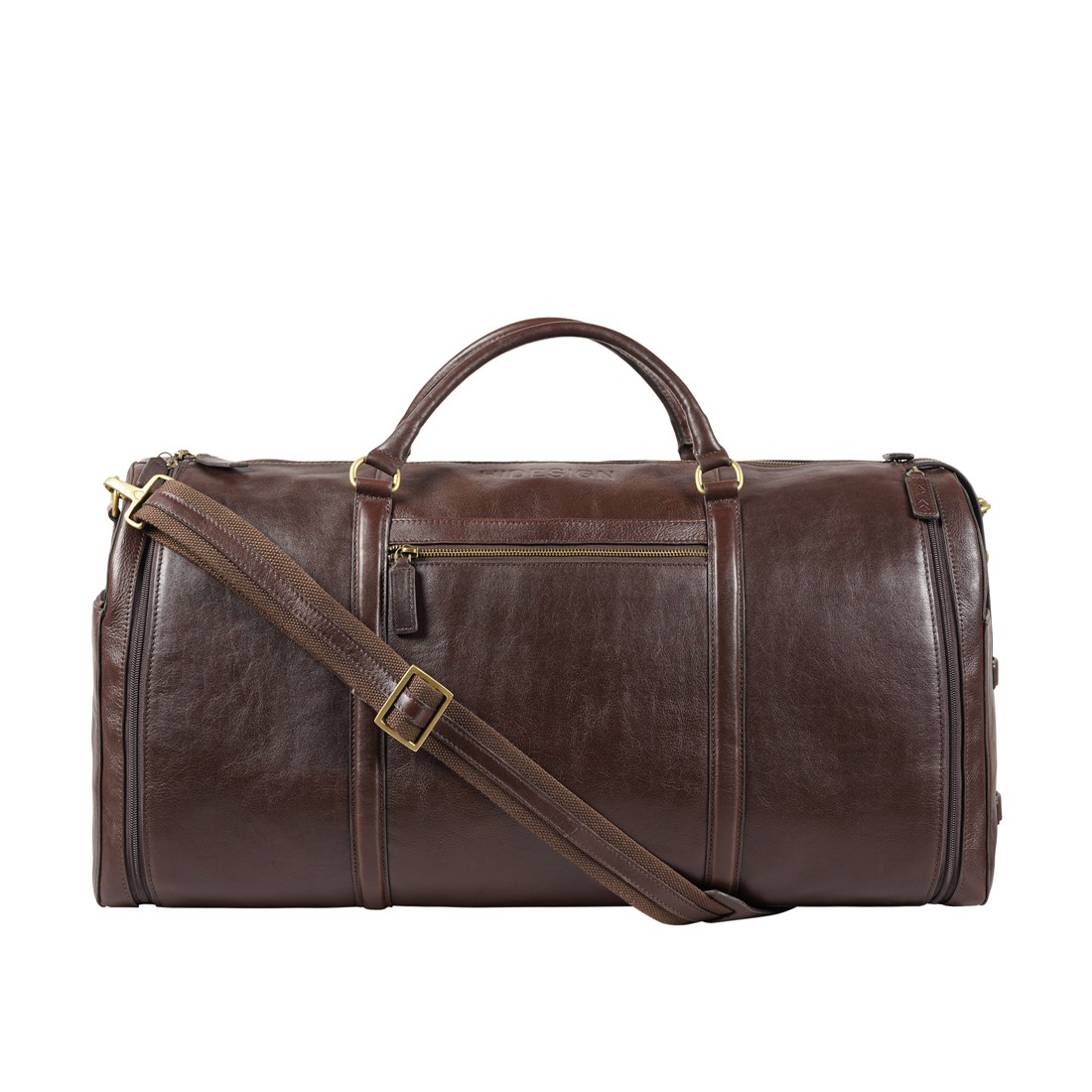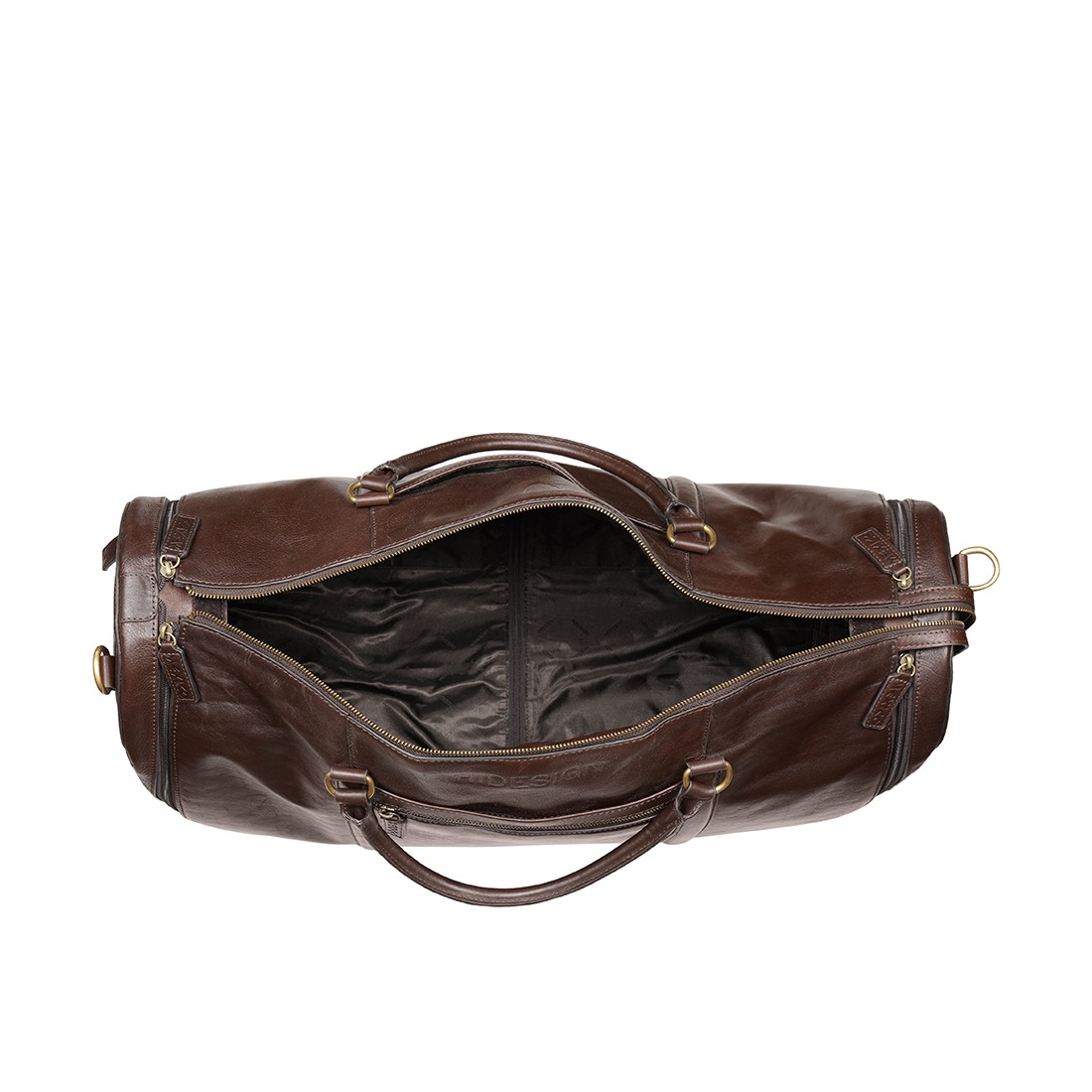 A duffel made for journeys as fearless as Mexico's heart.Imagine getting ready for a weekend escape, you lay out your clothes, your shoes, and that one jacket that makes you feel unstoppable. The Pisco 03 Big Duffel is built for moments like these. Crafted in sturdy Gaucho leather, it opens flat like a garment case with a dedicated zip compartment and brass hanger to keep your coats crisp and ready. As a standard duffel, it features a spacious main compartment along with multiple smaller zip pockets to organise your essentials with ease. With its detachable strap, strong handles, and timeless design, this duffel isn't just luggage; it's your most reliable travel companion.