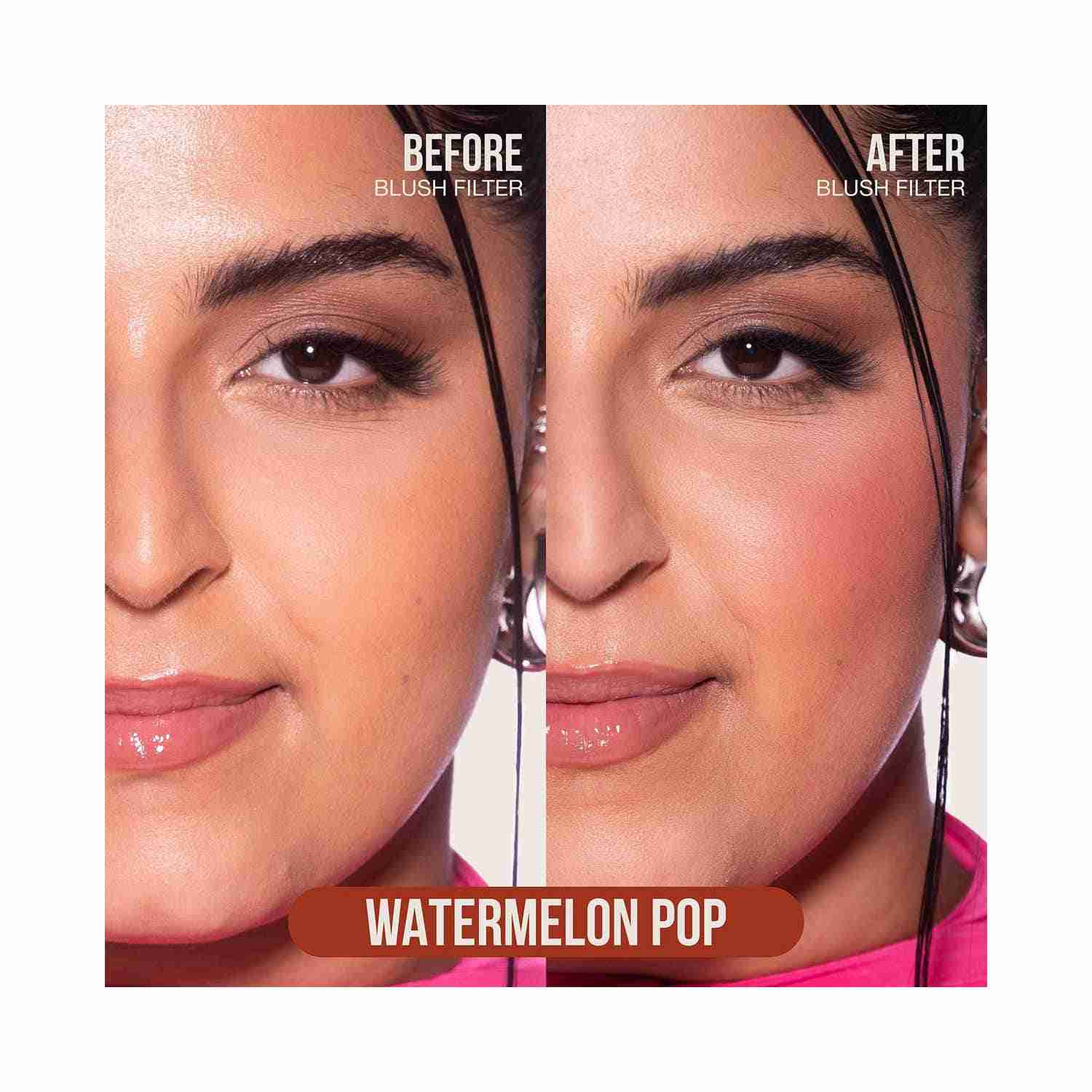 Illuminate your skin with the Huda Beauty Blush Filter Liquid Blush - Watermelon Pop (4.5 ml). This creamy blush has a pigmented formula to give you an exceptional color payoff with just a hint of the product. The Huba Beauty blush has a blendable pigment formula with finely milled micro-pearls that give you a seamless, airbrushed finish. Plus, this perfumed blush has a candy-flavored scent that makes you smell irresistible.