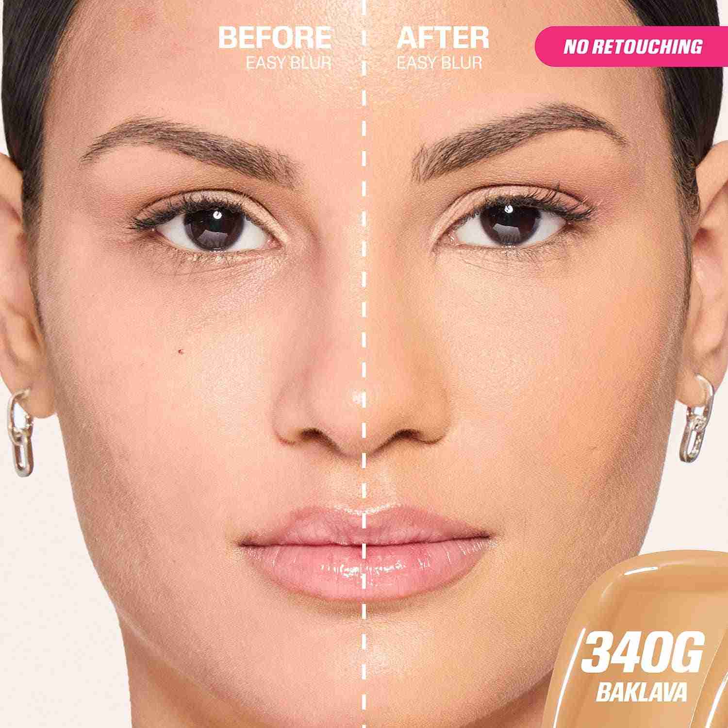 Prepare to be amazed by the seamless coverage with the Huda Beauty Easy Blur Natural Airbrush Foundation - Baklava 340G (30 ml). This liquid foundation blurs pores and imperfections while offering firm skin. It is a long-lasting foundation that stays put for long hours without caking. The Huda Beauty liquid foundation is also a lightweight foundation that blends easily on the skin.