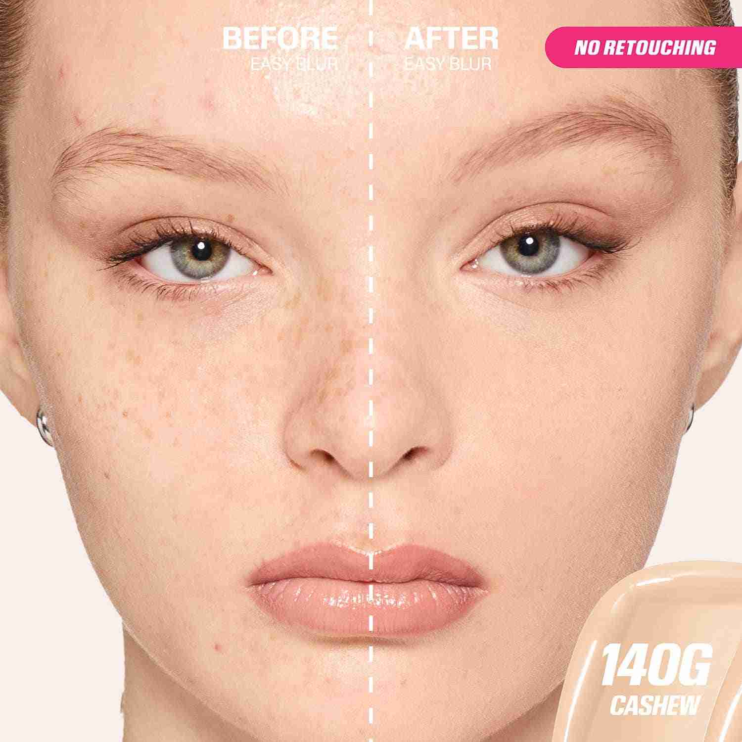 Feel confident about looking flawless with the Huda Beauty Easy Blur Natural Airbrush Foundation - Cashew 140G (30 ml). This liquid foundation blurs pores and imperfections while offering firm skin. It is a long-lasting foundation that stays put for long hours without caking. The Huda Beauty liquid foundation is also a lightweight foundation that blends easily on the skin.