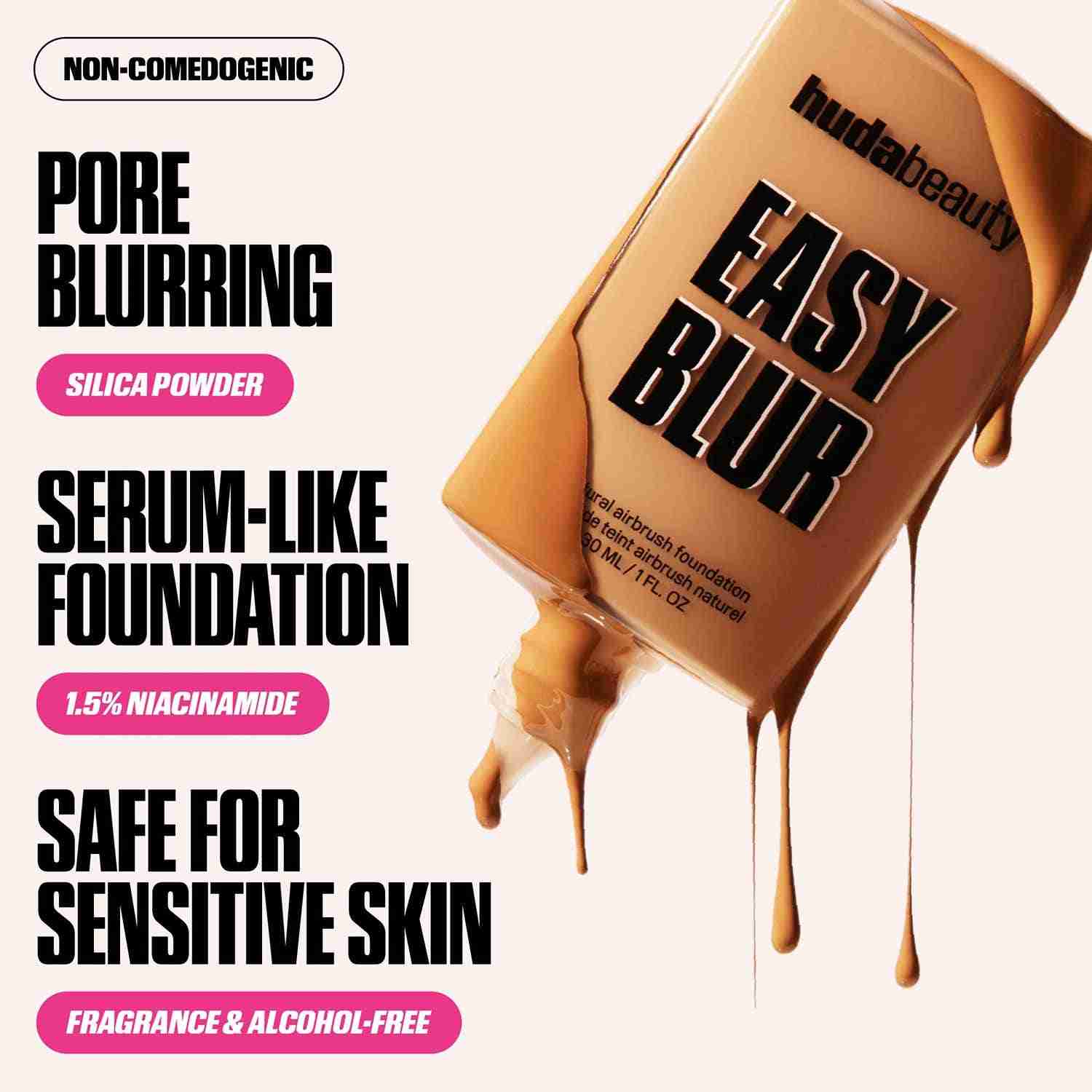 Flaunt fresh and spotless skin with the Huda Beauty Easy Blur Natural Airbrush Foundation - Chai 210B (30 ml). This liquid foundation blurs pores and imperfections while offering firm skin. It is a long-lasting foundation that stays put for long hours without caking. The Huda Beauty liquid foundation is also a lightweight foundation that blends easily on the skin.