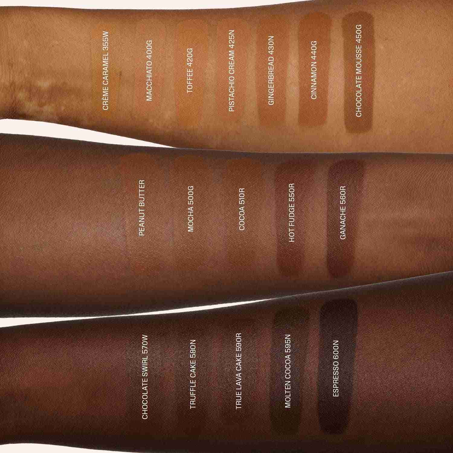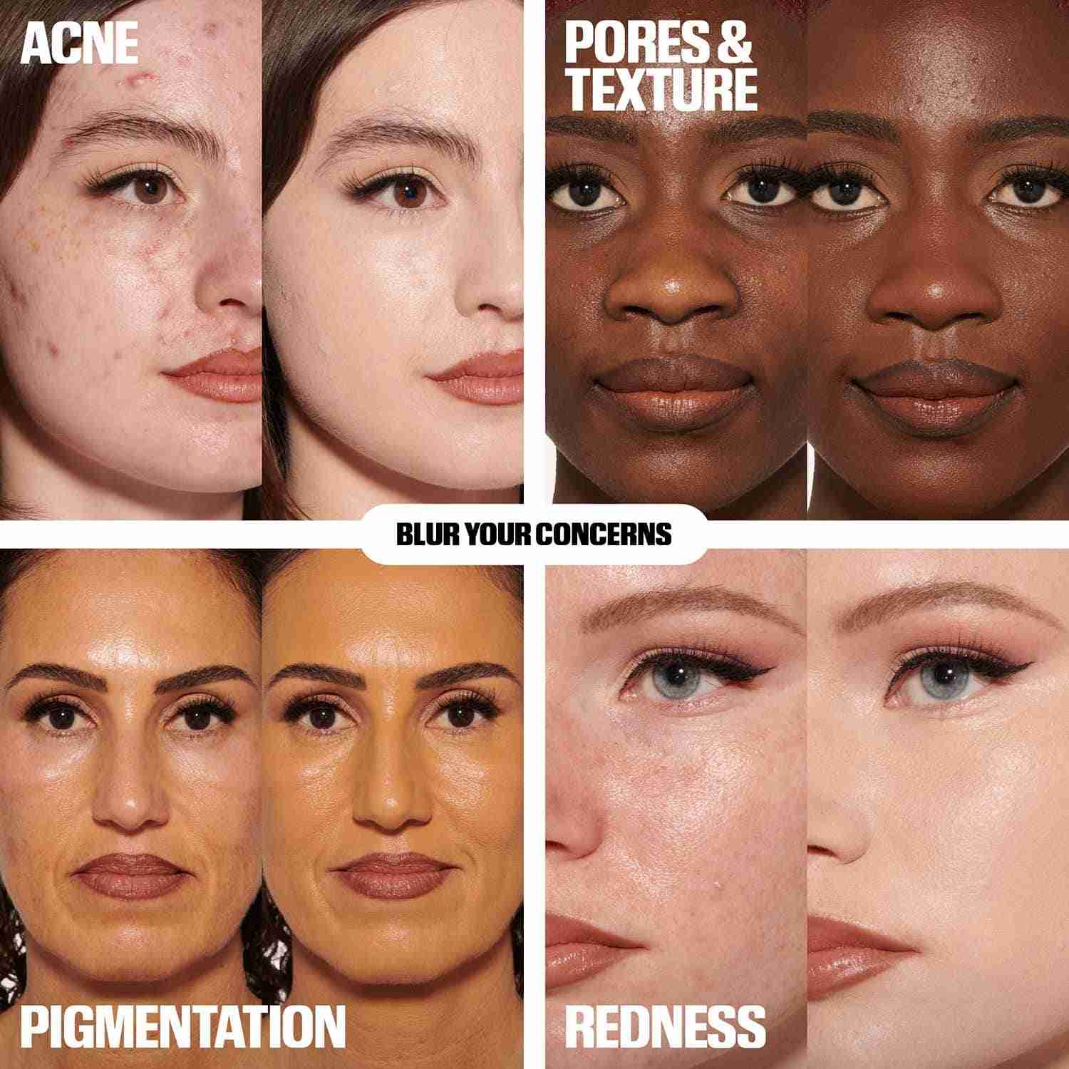 Go from bare to beautifully blended with the Huda Beauty Easy Blur Natural Airbrush Foundation - Molten Cocoa 595N (30 ml). This blurring foundation melts into the skin for a soft-focus, airbrushed finish that looks natural in any light. With a feather-light texture, the Huda Beauty liquid foundation blends effortlessly, offering customizable medium to buildable coverage. Infused with 1.5% niacinamide, this refining foundation smooths while it perfects.