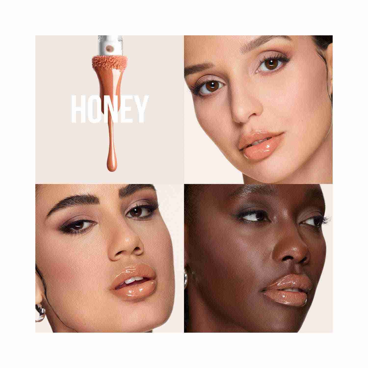 Draw attention to your smile with the Huda Beauty Faux Filler Extra Shine Lip Gloss - Honey (3.9 ml). Enriched with vitamin E, this plumping lip gloss hydrates the lips and smooths fine lines. As a non-sticky lip gloss, it offers a multi-dimensional glass-like finish thanks to its cushiony formula. Plus, this Huda Beauty lip gloss can be applied with precision using the included doe-foot applicator.