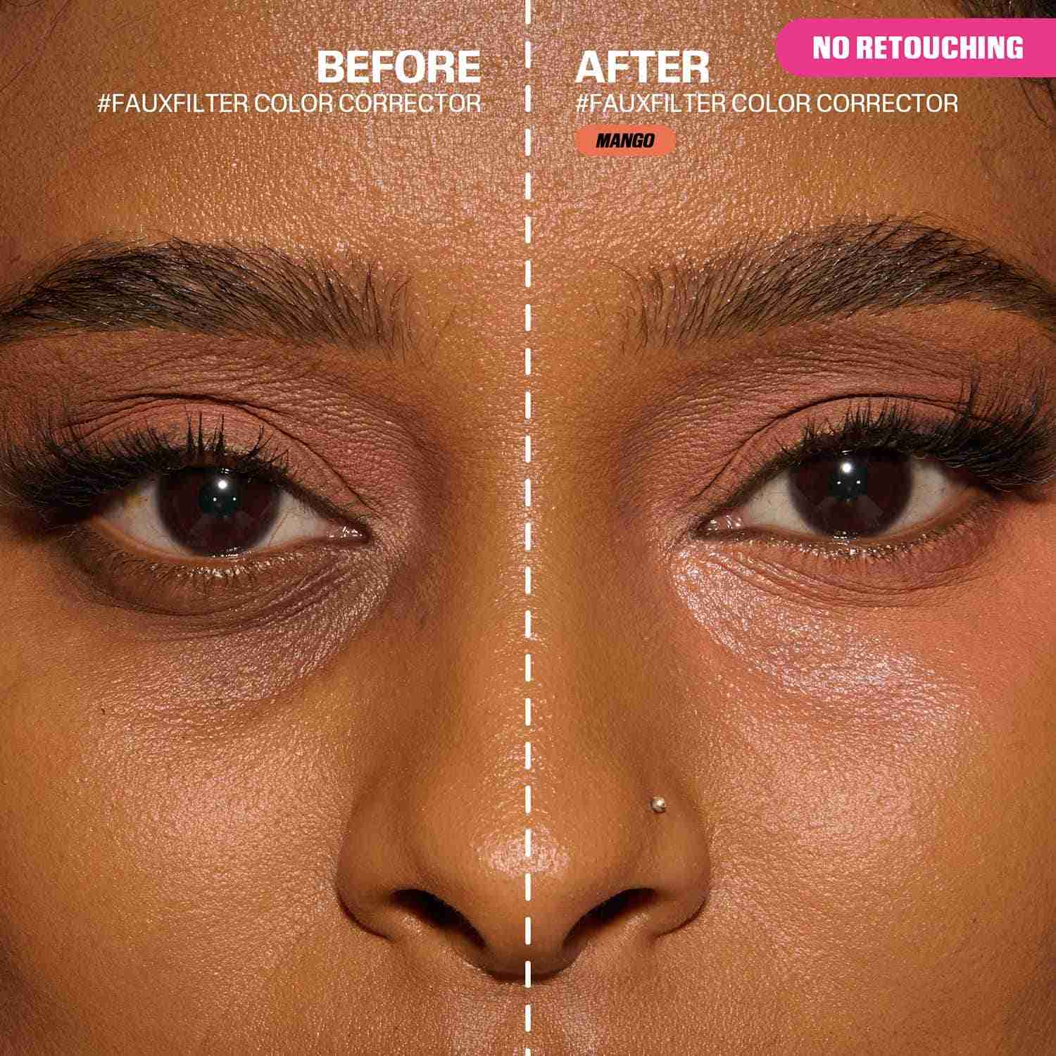 Say hello to flawless skin with the Huda Beauty Faux Filter Corrector Mini - Mango (2 ml). This creamy color corrector has a sheer formula, designed to blend while targeting discoloration and uneven skin tone. Infused with a brightening blend of vitamin C and niacinamide to soften pigmentation, along with cocoa seed butter and sweet almond oil to moisturize and nourish, the Huda Beauty corrector nourishes and cares for the skin. Crease, sweat, and transferproof formula of this long-lasting corrector ensures lasting wear without flashback, creating the perfect base for makeup.