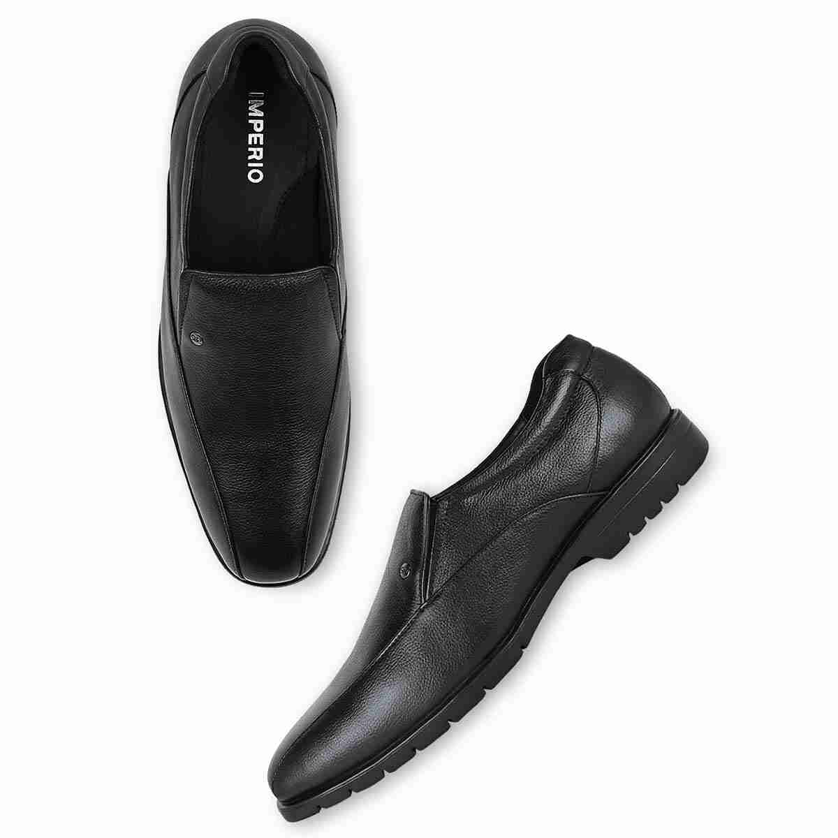 Step into sophistication and timeless elegance with our Imperio by Regal Shoes premium collection of formal slip-on leather shoes designed exclusively for men. Imperio Shoes formal slip-on men's shoes are crafted from high-quality, genuine leather, ensuring durability and a luxurious feel. The leather not only adds a touch of refinement but also molds to your feet for a personalized fit over time. These formal slip-on shoes feature cushioned insoles that provide support, allowing you to stay on your feet with ease.
